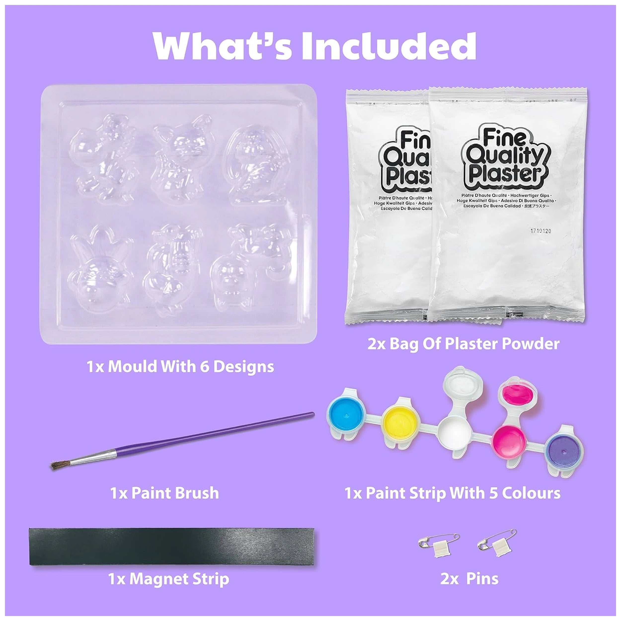 4M - Gieß- und Mal-Mermaid-Magnete - Basteln Präsentieren Sie das 4M Gieß- und Mal-Mermaid-Set, eine wunderbare Bastelaktivität, die darauf abzielt, die Kreativität von Kindern ab fünf Jahren zu inspirieren. Dieses ansprechende Set ermöglicht es jungen Künstlern, sechs einzigartige Meerjungfrauen-Magnete zu gestalten, von denen jeder ein anderes Design aufweist, das die Fantasie anregt und kreatives Handeln fördert. Mit diesem Set können Kinder ihre künstlerischen Talente erkunden, während sie ihre Feinmotorik entwickeln und ihre Fähigkeit zur Konzentration auf Aufgaben verbessern. Das 4M Gieß- und Mal-Mermaid-Set enthält eine einzige Form, die sechs verschiedene Meerjungfrauen-Designs bietet, was es den Kindern erleichtert, ihre eigenen bunten Meisterwerke zu schaffen. Jedes Design ist so gestaltet, dass es Spaß macht und ansprechend ist, sodass die Kinder den Prozess des Malens und Personalisierens ihrer Kreationen genießen. Das Set enthält alles, was man zum Starten benötigt, einschließlich Farben, einem Pinsel und einem Magnetrücken für jedes fertige Stück, was es zu einer umfassenden Lösung für angehende Künstler macht. Während die Kinder mit dem Gieß- und Mal-Mermaid-Set arbeiten, haben sie nicht nur Spaß, sondern lernen auch wertvolle Fähigkeiten wie Geduld und Aufmerksamkeit für Details. Der Prozess des Mischens von Farben und Auftragens von Farbe ermöglicht Experimente und fördert ein Gefühl der Zufriedenheit, wenn sie sehen, wie ihre Ideen zum Leben erweckt werden. Diese Aktivität ist perfekt für Spielverabredungen, Geburtstagsfeiern oder ruhige Nachmittage zu Hause und bietet stundenlange Unterhaltung und kreativen Ausdruck. Das Produkt ist in verschiedenen Farben erhältlich, was jedem Set ein Element der Überraschung und Aufregung verleiht. Bitte beachten Sie, dass Farben und Drucke von den abgebildeten variieren können, sodass jedes Kind ein einzigartiges Erlebnis hat. Diese Variabilität ermutigt die Kinder, ihre Kreativität zu entfalten und jeden Meerjungfrauen-Magneten wirklich zu ihrem eigenen zu machen, was ihren persönlichen Stil und ihre Vorlieben widerspiegelt. Sicherheit hat beim 4M Gieß- und Mal-Mermaid-Set oberste Priorität, da es für Kinder ab fünf Jahren konzipiert ist. Die verwendeten Materialien sind ungiftig und sicher für junge Künstler, sodass Eltern sich sicher fühlen können, wenn ihre Kinder kreativ tätig sind. Dieses Set bietet nicht nur eine unterhaltsame Aktivität, sondern fördert auch sicheres und verantwortungsvolles Basteln. Verpassen Sie nicht die Gelegenheit, die Kreativität Ihres Kindes mit dem 4M Gieß- und Mal-Mermaid-Set zu inspirieren. Bestellen Sie noch heute und beobachten Sie, wie Ihr kleiner Künstler einfache Materialien in wunderschöne, personalisierte Magnete verwandelt, die er stolz präsentieren oder Familie und Freunden schenken kann. Fördern Sie ihre Fantasie und Kreativität – starten Sie jetzt mit diesem bezaubernden Bastelset!
