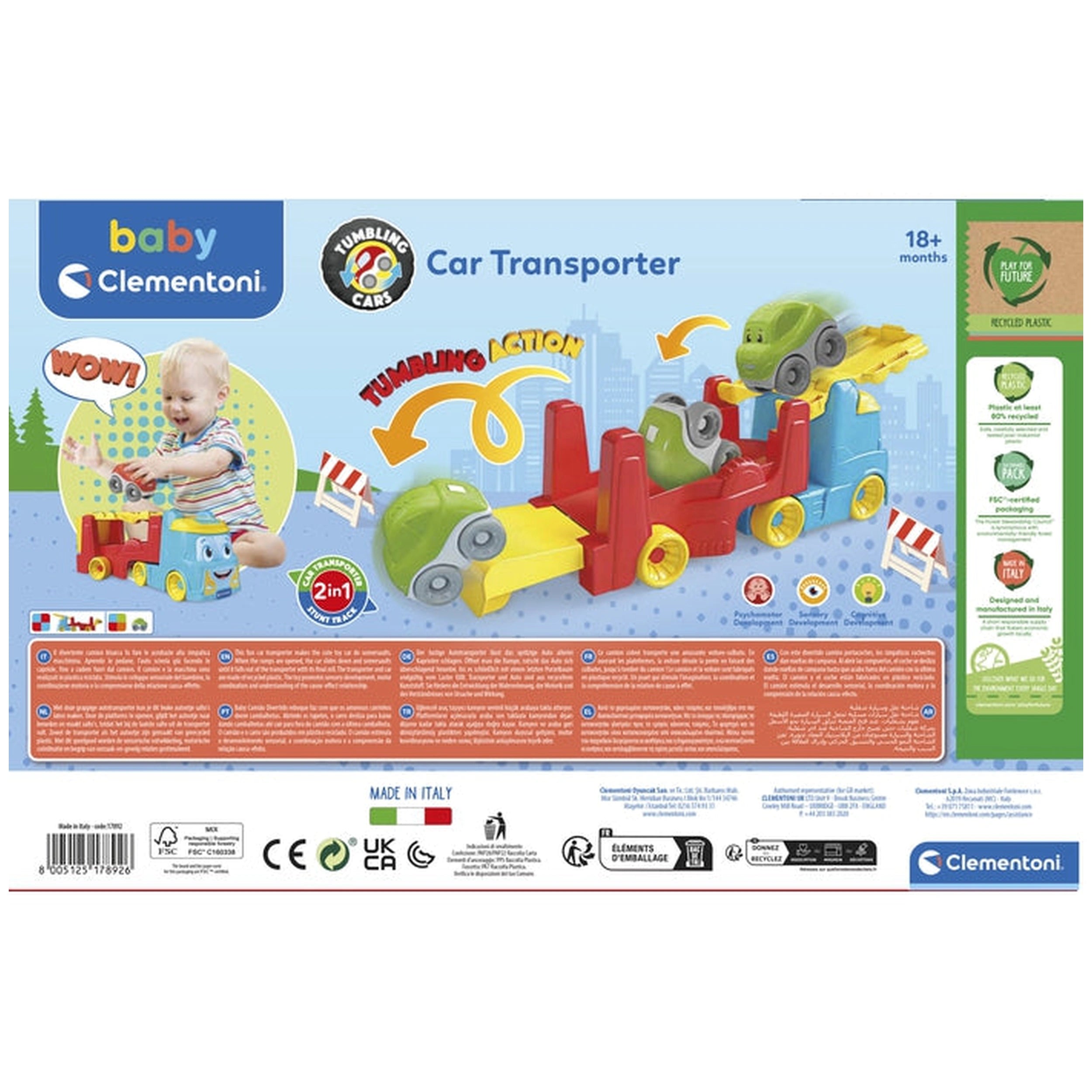 In conclusion, the Baby Clementoni - 2 In 1 Tumbling Cars Transporter is an exceptional toy that combines fun, learning, and sustainability. Its engaging design, developmental benefits, and eco-friendly materials make it a standout choice for parents seeking quality toys for their children. Don’t miss out on the opportunity to enrich your child’s playtime experience—order the Baby Clementoni Tumbling Cars Transporter today and watch their imagination soar!