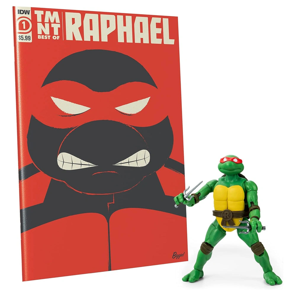 This set includes the BST AXN Raphael action figure, which is crafted with an impressive 31 points of articulation, allowing for dynamic posing and play. The figure is presented in a comic-inspired colorway, reflecting Raphael's original comic book appearance. Accompanying the figure is an exclusive IDW compilation comic book titled "Best of Raphael," which features a curated selection of stories from four different comics, making it an essential addition for TMNT enthusiasts.
