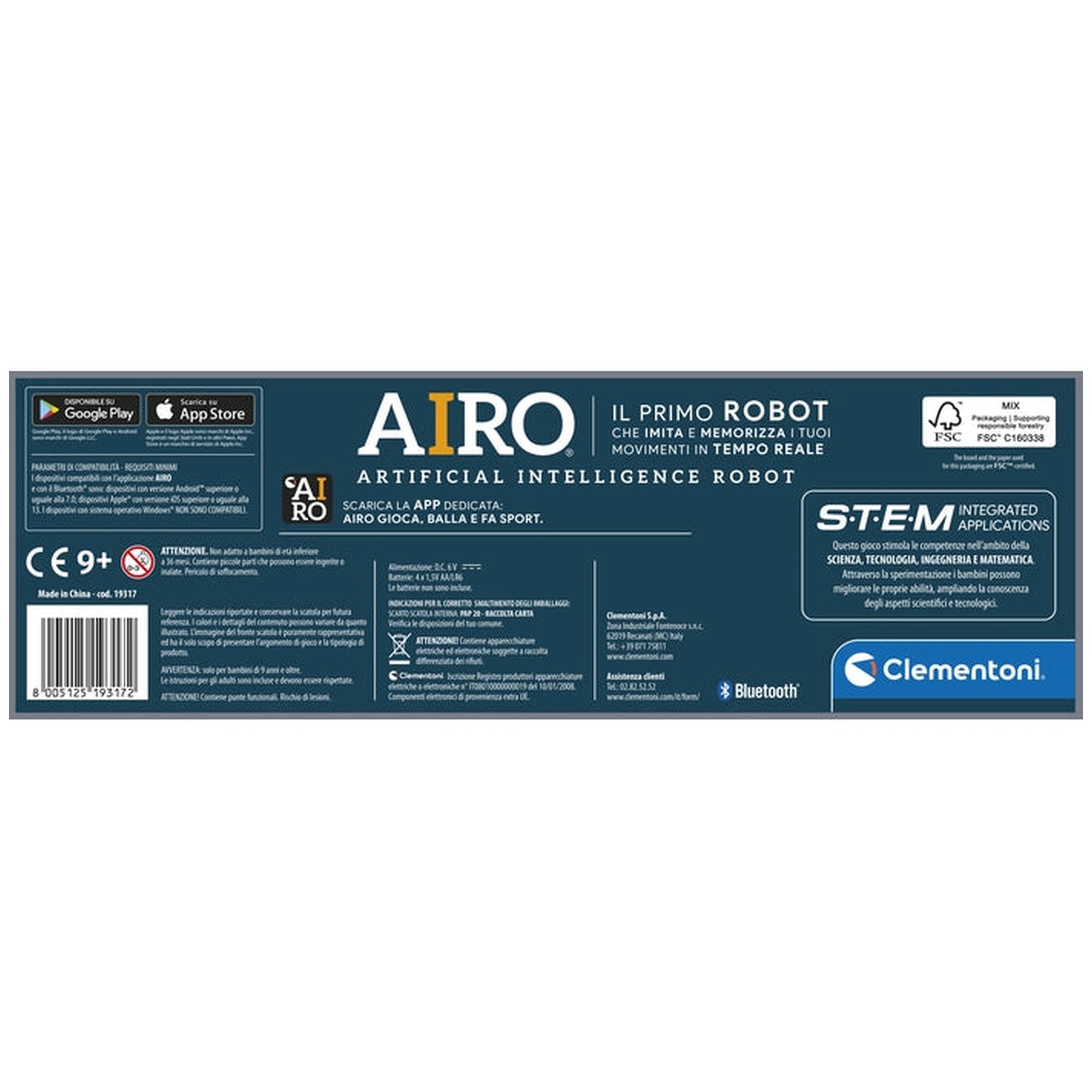 Clementoni - AIRO-STEM-Robotic-Toys Wir präsentieren die Clementoni - Scienza & Gioco AIRO STEM - Robotic Toys, einen innovativen Roboterbegleiter, der entwickelt wurde, um Kinder ab 9 Jahren zu begeistern und zu bilden. Dieser hochmoderne Roboter ist mit fortschrittlicher künstlicher Intelligenz ausgestattet, die es ihm ermöglicht, Gesten und Sprachbefehle zu erkennen, was die Interaktionen intuitiv und unterhaltsam macht. Mit AIRO können Kinder die faszinierende Welt der Robotik erkunden und dabei essentielle STEM-Fähigkeiten in einer spielerischen Umgebung entwickeln. Der AIRO-Roboter zeichnet sich durch seine einzigartige Anpassungsfähigkeit aus. Kinder können AIRO trainieren, um eine Vielzahl von Gesten zu erkennen, was ein personalisiertes Erlebnis ermöglicht, das Kreativität und Problemlösungsfähigkeiten fördert. Diese Funktion macht die Spielzeit nicht nur angenehm, sondern ermutigt Kinder auch, kritisch darüber nachzudenken, wie sie mit Technologie interagieren. Das Design des Roboters ist ein Zeugnis italienischer Ingenieurskunst, da es in Italien konzipiert, entworfen und entwickelt wurde, was hohe Qualitätsstandards und innovative Funktionen gewährleistet. Ausgestattet mit sechs leistungsstarken Motoren kann AIRO eine Vielzahl von Bewegungen ausführen, von einfachen Gesten bis hin zu komplexen Aktionen, was ihn zu einem äußerst vielseitigen Roboter-Spielzeug macht. Diese Funktionalität ermöglicht es Kindern, sich an verschiedenen Aktivitäten zu beteiligen und ein Verständnis für Robotik und Programmierkonzepte auf praktische Weise zu entwickeln. Die Bluetooth-Konnektivität des Roboters verbessert das Erlebnis zusätzlich, da Benutzer mit einer speziellen App interagieren können, die mehrere Spielmodi und Herausforderungen bietet. Der Clementoni AIRO STEM-Roboter ist nicht nur ein Spielzeug; er ist ein Bildungswerkzeug, das die Lücke zwischen Spiel und Lernen schließt. Durch die Integration von Elementen aus Wissenschaft, Technologie, Ingenieurwesen und Mathematik bietet AIRO ein umfassendes Lernerlebnis, das Kinder auf zukünftige technologische Entwicklungen vorbereitet. Die fesselnden Aktivitäten und interaktiven Funktionen sorgen dafür, dass Kinder begeistert bleiben, während sie kritische Fähigkeiten entwickeln. Mit den Abmessungen von 36 x 32 x 12 cm und einem Gewicht von 1190 Gramm ist AIRO für eine einfache Handhabung und Portabilität konzipiert. Bitte beachten Sie jedoch, dass der Roboter vier AA/LR06-Batterien benötigt, die nicht im Lieferumfang enthalten sind. Dieses durchdachte Design ermöglicht nahtloses Spielen und stellt sicher, dass Kinder ohne Verzögerung in ihre Roboterabenteuer eintauchen können. Zusammenfassend ist die Clementoni - Scienza & Gioco AIRO STEM - Robotic Toys eine außergewöhnliche Wahl für Eltern, die das Interesse ihrer Kinder an Technologie und Robotik wecken möchten. Mit seinen innovativen Funktionen, anpassbaren Interaktionen und fesselndem Gameplay verspricht AIRO Stunden voller lehrreicher Unterhaltung. Verpassen Sie nicht die Gelegenheit, das Lernerlebnis Ihres Kindes zu bereichern – bestellen Sie den AIRO-Roboter noch heute und sehen Sie, wie ihre Fantasie fliegt!