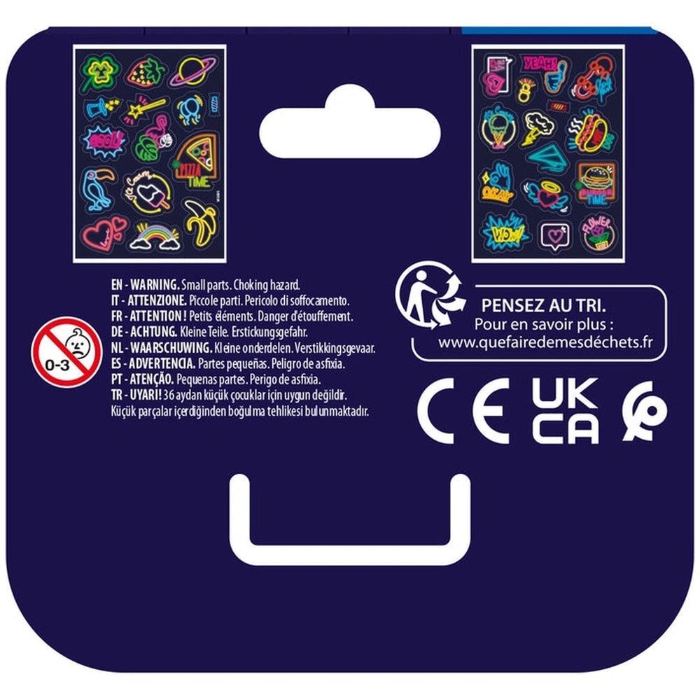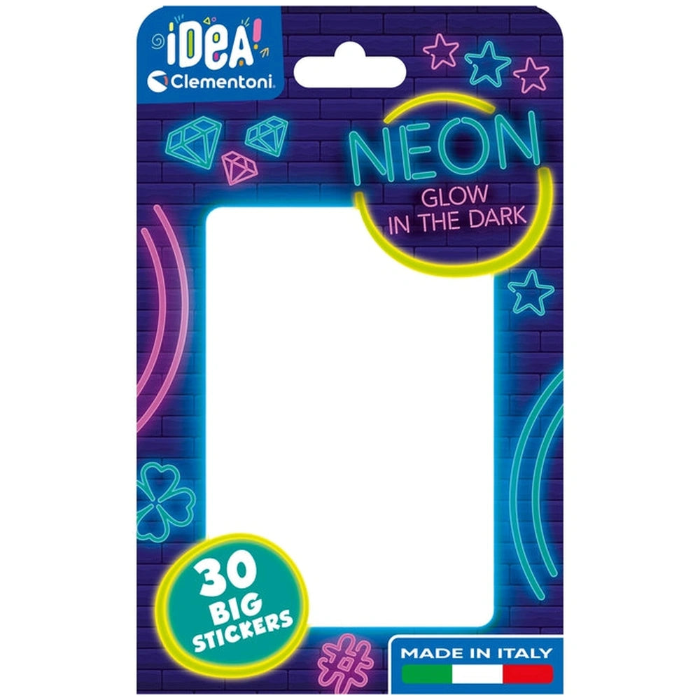 Introducing the Clementoni Idea - 30 Big Neon Stickers, a vibrant and engaging product designed to spark creativity and imagination in children aged six and above. These unique stickers are not just ordinary decorations; they come with an exciting surprise feature that makes them glow in the dark, adding an enchanting twist to any creative project. With a variety of designs to choose from, children can personalize their belongings, transforming everyday items into colorful expressions of their personality.