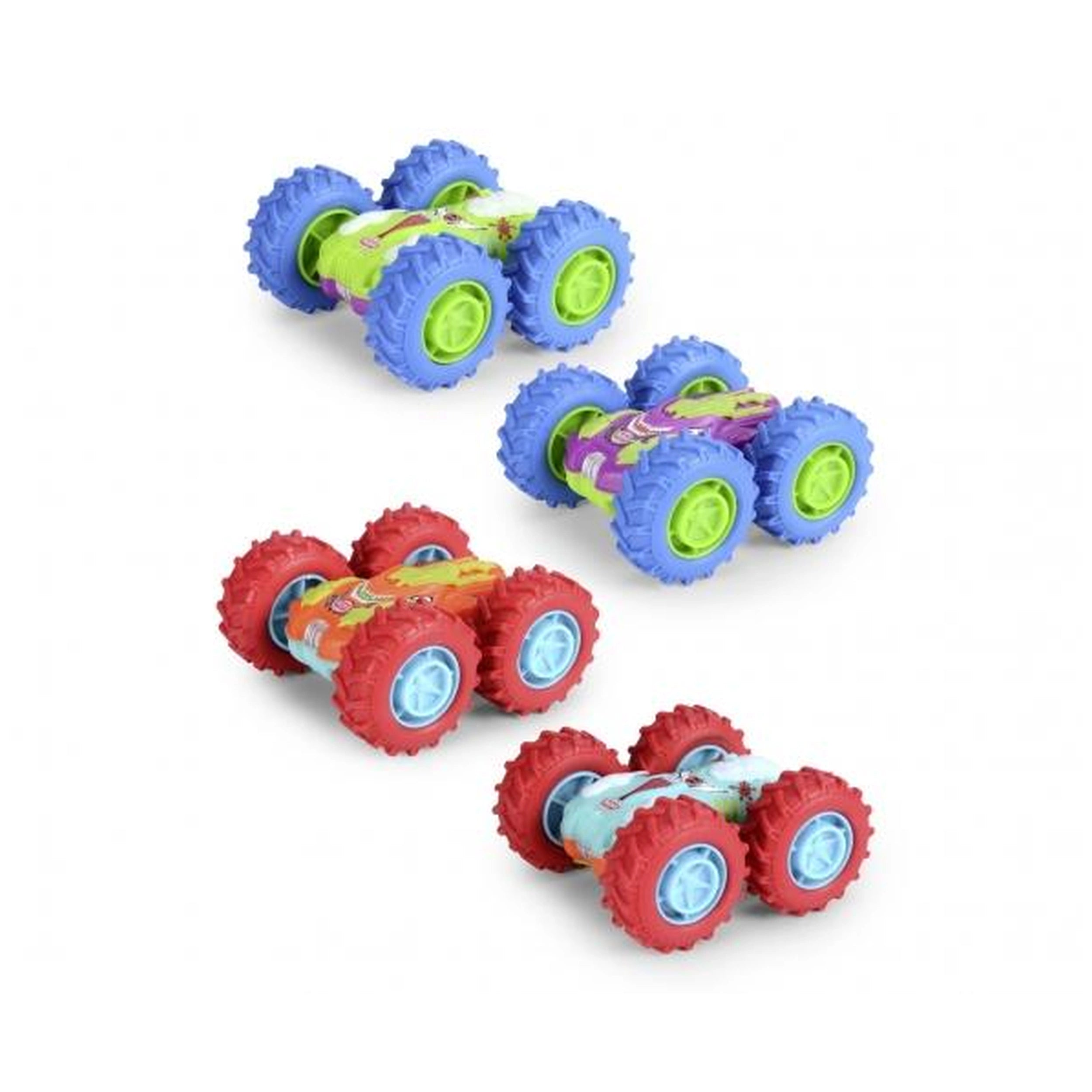 Each order includes one of four assorted models, ensuring a delightful surprise for every child. The random selection means that your little one could receive any of the four colorful variants, each equipped with large rubber monster truck tires that provide excellent traction and durability. This feature makes the Monster Flippy perfect for both indoor and outdoor play, allowing children to take their adventures wherever they go.