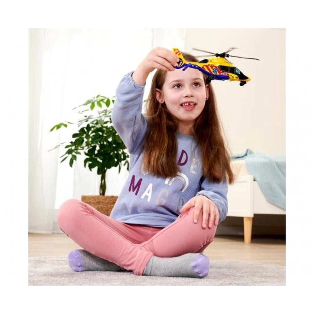 Introducing the Dickie - SOS Helicopter Airbus H160 with Lights and Sounds Play Vehicles, a captivating toy designed to inspire imaginative rescue missions in young children. This vibrant yellow helicopter, measuring 23 cm, is not just a toy; it’s a gateway to adventure, encouraging kids to engage in rescue-themed pretend play. Perfect for children aged three and above, this helicopter is equipped with features that promote creativity, motor skills, and an understanding of emergency scenarios.