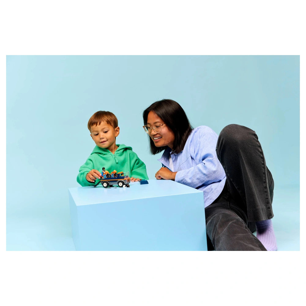 LEGO - City Motorradtransporter - Konstruktionsspielzeug Präsentieren Sie den LEGO® City Motorradtransporter (60491), ein aufregendes Konstruktionsspielzeug, das die Fantasie von Kindern ab 4 Jahren anregt. Dieses fesselnde Spielset verfügt über einen Pritschenwagen mit robusten Gummireifen, zwei sportlichen Motorradspielzeugen und zwei Rennfahrer-Minifiguren mit Helmen. Mit diesem Set können Kinder in eine Welt voller Abenteuer eintauchen, Motorräder mit der praktischen Rampe laden und entladen und ihre eigenen epischen Rennszenarien kreieren. Der LEGO® City Motorradtransporter ist nicht nur ein Spielzeug; er ist ein Tor zu kreativem Geschichtenerzählen und Rollenspielen. Kinder können eine Minifigur in der Kabine des Pritschenwagens platzieren, was ihr Spielerlebnis bereichert, während sie aufregende Abenteuer auf der Straße erleben. Das Set enthält wichtige Zubehörteile wie einen Schraubenschlüssel, einen Becher und ein Smartphone, die noch mehr fantasievolle Szenarien ermöglichen. Diese Liebe zum Detail sorgt dafür, dass jede Spielsitzung einzigartig und voller Spaß ist. Dieses Spielset wurde mit jungen Baumeistern im Hinterkopf entworfen und enthält ein LEGO Starter Brick-Element, das es Kindern erleichtert, loszulegen. Der einfache bildliche Leitfaden und die innovative LEGO Builder-App bieten 3D-Anleitungen, die den Kindern helfen, ihre Modelle aus allen Blickwinkeln zu visualisieren. Dieser digitale Begleiter ist perfekt, um unabhängige Baukompetenzen zu fördern und das Selbstvertrauen junger Kreatoren zu stärken. Mit 88 Teilen ist der LEGO® City Motorradtransporter ein ideales Geschenk für Geburtstage oder besondere Anlässe. Er ermutigt Kinder, ihre Kreativität zu erkunden, während sie ihre Feinmotorik und Problemlösungsfähigkeiten entwickeln. Dieses Set ist perfekt für Jungen und Mädchen, die eine Leidenschaft für Rennspielzeuge und Modelllastwagen haben, und ist eine vielseitige Ergänzung für jede Spielzeugsammlung. Darüber hinaus kann dieses Spielset mit anderen Sets aus der LEGO® City-Reihe kombiniert werden, was unbegrenzte Erweiterungsmöglichkeiten und noch mehr aufregende Rennaktionen ermöglicht. Kinder können ihre eigene Stadtlandschaft mit Fahrzeugen und Abenteuern gestalten, was ihr Spielerlebnis bereichert. Die Möglichkeiten sind endlos, wenn sie dieses Set in ihre bestehende LEGO®-Sammlung integrieren. Verpassen Sie nicht die Gelegenheit, die Kreativität und Fantasie Ihres Kindes zu inspirieren. Der LEGO® City Motorradtransporter (60491) wartet darauf, Teil des nächsten Abenteuers Ihres Kindes zu werden. Bestellen Sie jetzt und beobachten Sie, wie sie unzählige aufregende Reisen voller Spaß und Lernen antreten!