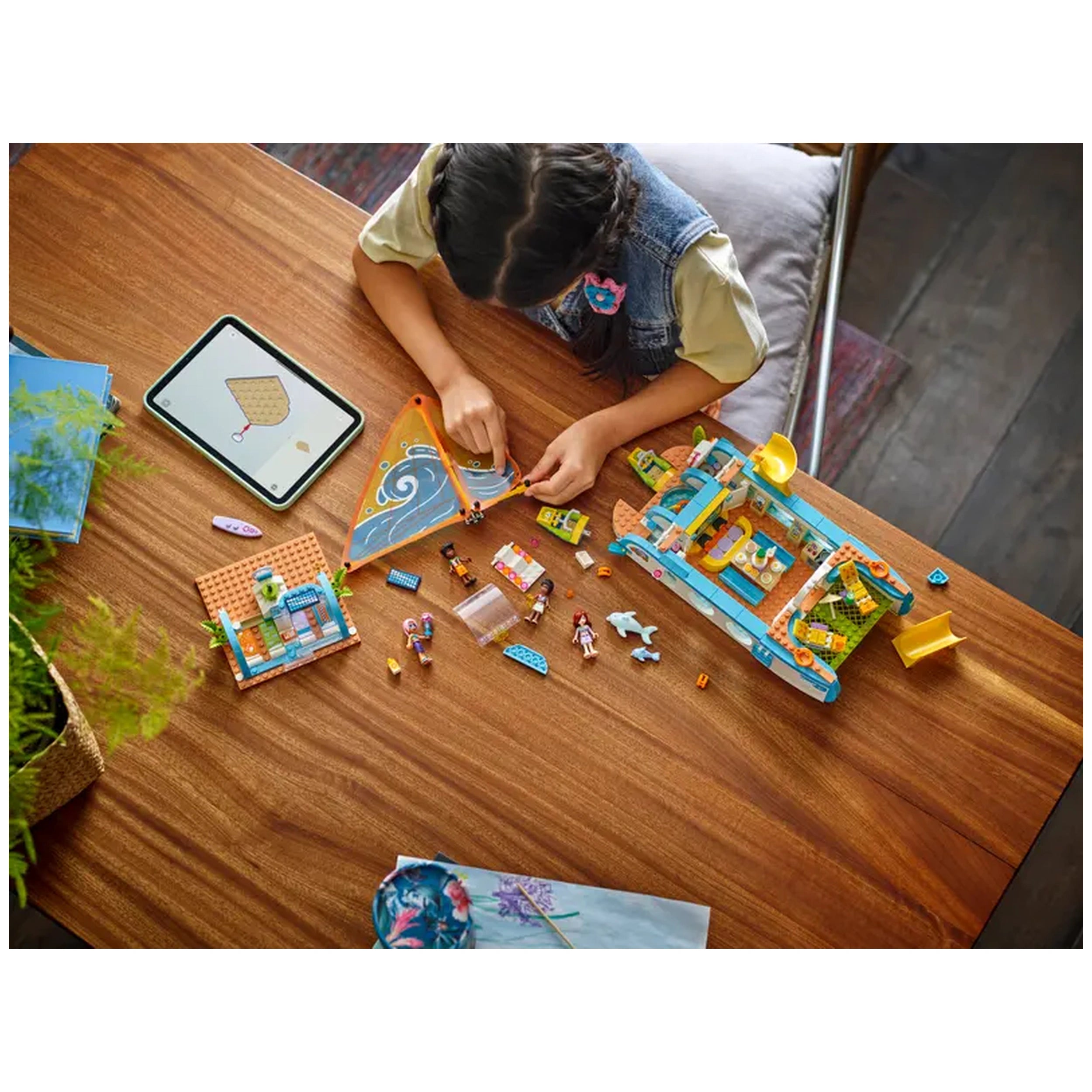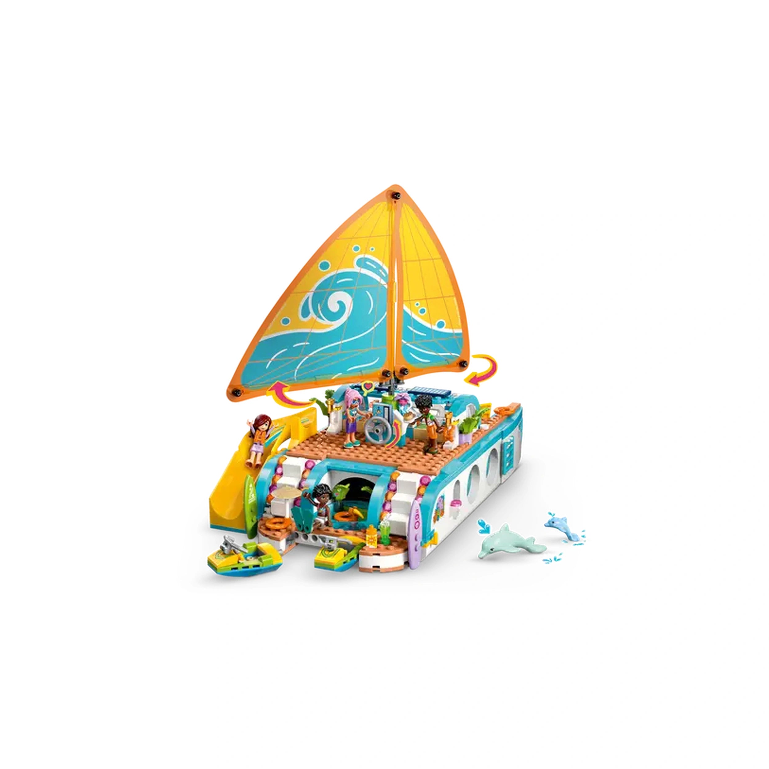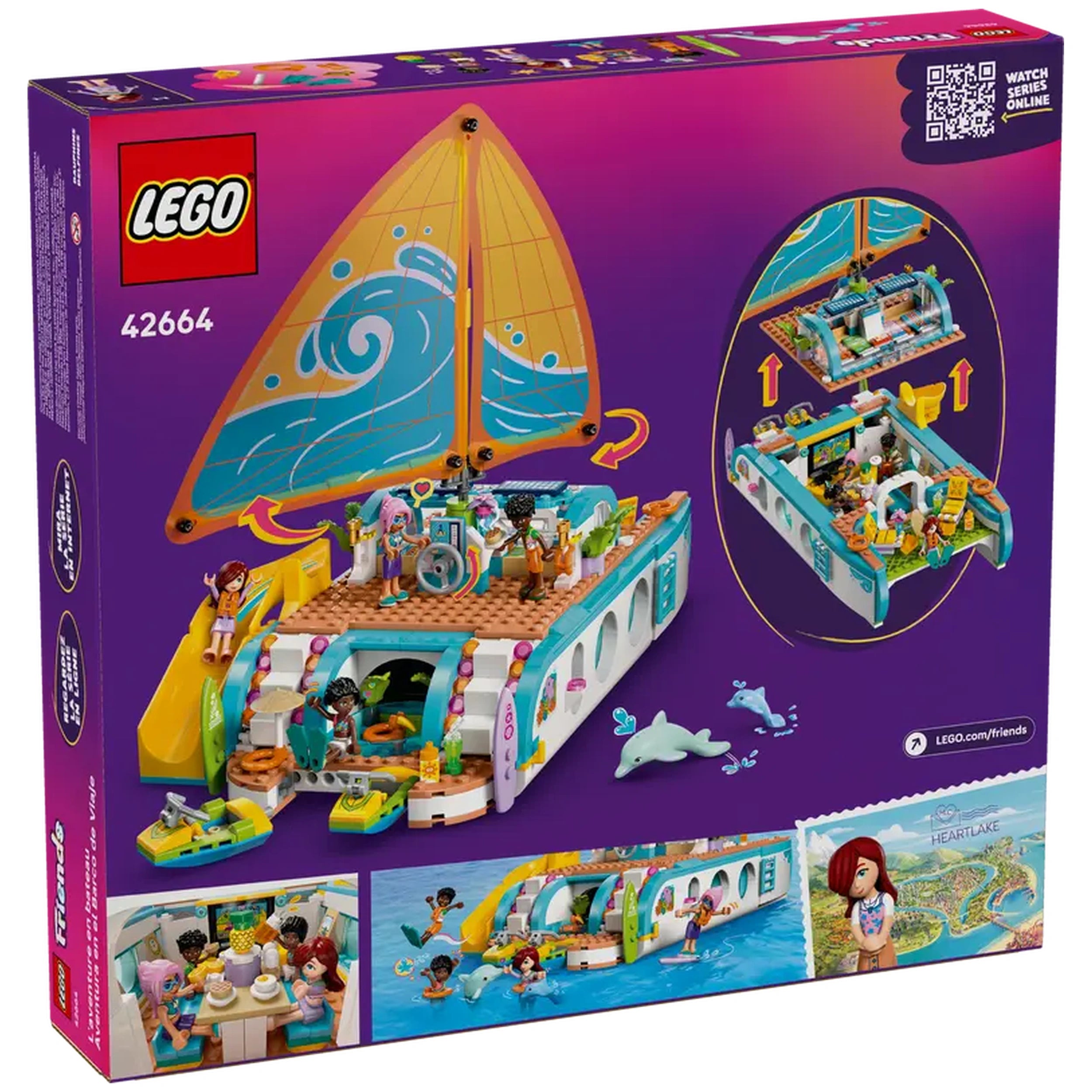 LEGO - Reiseboot-Abenteuer - Konstruktionsspielzeug Präsentieren Sie das LEGO® Friends Reiseboot-Abenteuer Konstruktionsset (42664), ein fesselndes Baukästchen, das die Fantasie von Kindern ab 8 Jahren anregen soll. Dieses bezaubernde Set ist perfekt für junge Abenteurer, die davon träumen, über die Meere zu segeln und aufregende Reisen zu unternehmen. Mit seinen lebhaften Farben und detaillierten Elementen lädt das Reiseboot-Abenteuer Kinder ein, in eine Welt der Kreativität und des Geschichtenerzählens einzutauchen, was es zu einem idealen Geschenk für Geburtstage, Feiertage oder besondere Anlässe macht. Das Reiseboot-Abenteuer Set enthält vier LEGO Friends Minidolls—Paisley, Zac, Celine und Sky—sowie zwei niedliche Delfinfiguren. Jeder Charakter bringt seine einzigartige Persönlichkeit zum Leben und ermutigt die Kinder, ihre eigenen Geschichten zu kreieren, während sie die offenen Gewässer erkunden. Das Boot selbst ist ein Designwunder, ausgestattet mit realistischen Funktionen wie einem funktionierenden Segel, das sich bewegt, wenn das Rad gedreht wird, und so ein immersives Spielerlebnis bietet, das echte Segelabenteuer nachahmt. Im Inneren des Bootes entdecken die Kinder eine Fülle von Aktivitäten und Bereichen zum Erkunden. Die detaillierte Küchenzeile und der Essbereich sind perfekt für Rollenspiele beim Kochen und Essen, während die Schlafräume mit vier Betten einen gemütlichen Rückzugsort nach einem Tag voller Spaß bieten. Die Ausstattung mit einem Whirlpool, einem Spielbereich und sogar einer Dusche und Toilette sorgt dafür, dass jeder Aspekt eines Urlaubs abgedeckt ist und endlose Erzählmöglichkeiten bietet. Neben dem Boot und den Minidolls enthält das Set eine Vielzahl von urlaubsbezogenen Accessoires. Kinder können aufregende Wasseraktivitäten mit zwei Wasserscootern, einem Surfbrett und Flossen genießen oder sich mit einem Schwimmring entspannen. Die im Set enthaltenen Ferngläser ermöglichen es jungen Entdeckern, Delfine in der Ferne zu erspähen und steigern den abenteuerlichen Geist der Spielzeit. Diese vielfältige Auswahl an Zubehör stellt sicher, dass die Kinder in fantasievolle Szenarien eintauchen können, egal ob sie eine Party auf dem Boot veranstalten oder auf Delfinbeobachtung gehen. Das LEGO® Friends Reiseboot-Abenteuer ist nicht nur ein Spielzeug; es ist ein Tor zu Kreativität und Freundschaft. Kinder können sich über die LEGO® Friends: The Next Chapter Online-Show mit den Charakteren verbinden, wo sie die lebendige Welt von Heartlake City weiter erkunden können. Dieses interaktive Element fügt eine weitere Ebene des Engagements hinzu und inspiriert die Kinder, ihre eigenen Geschichten und Abenteuer über das physische Set hinaus zu kreieren. Mit 685 Teilen ist dieses Konstruktionsset darauf ausgelegt, junge Baumeister herauszufordern und zu unterhalten. Die LEGO® Builder App bietet intuitive Anleitungen, die es den Kindern ermöglichen, Modelle in 3D zu vergrößern und zu drehen, während sie ihren Fortschritt verfolgen. Diese Funktion verbessert nicht nur das Bauerlebnis, sondern hilft auch, wesentliche Fähigkeiten wie Problemlösung und räumliches Vorstellungsvermögen zu entwickeln. Verpassen Sie nicht die Gelegenheit, die Fantasie Ihres Kindes mit dem LEGO® Friends Reiseboot-Abenteuer Konstruktionsset zu inspirieren. Ob sie bauen, spielen oder erkunden, dieses Set verspricht stundenlangen Spaß und Kreativität. Bestellen Sie jetzt und setzen Sie die Segel auf eine Reise voller Abenteuer und Freundschaft!