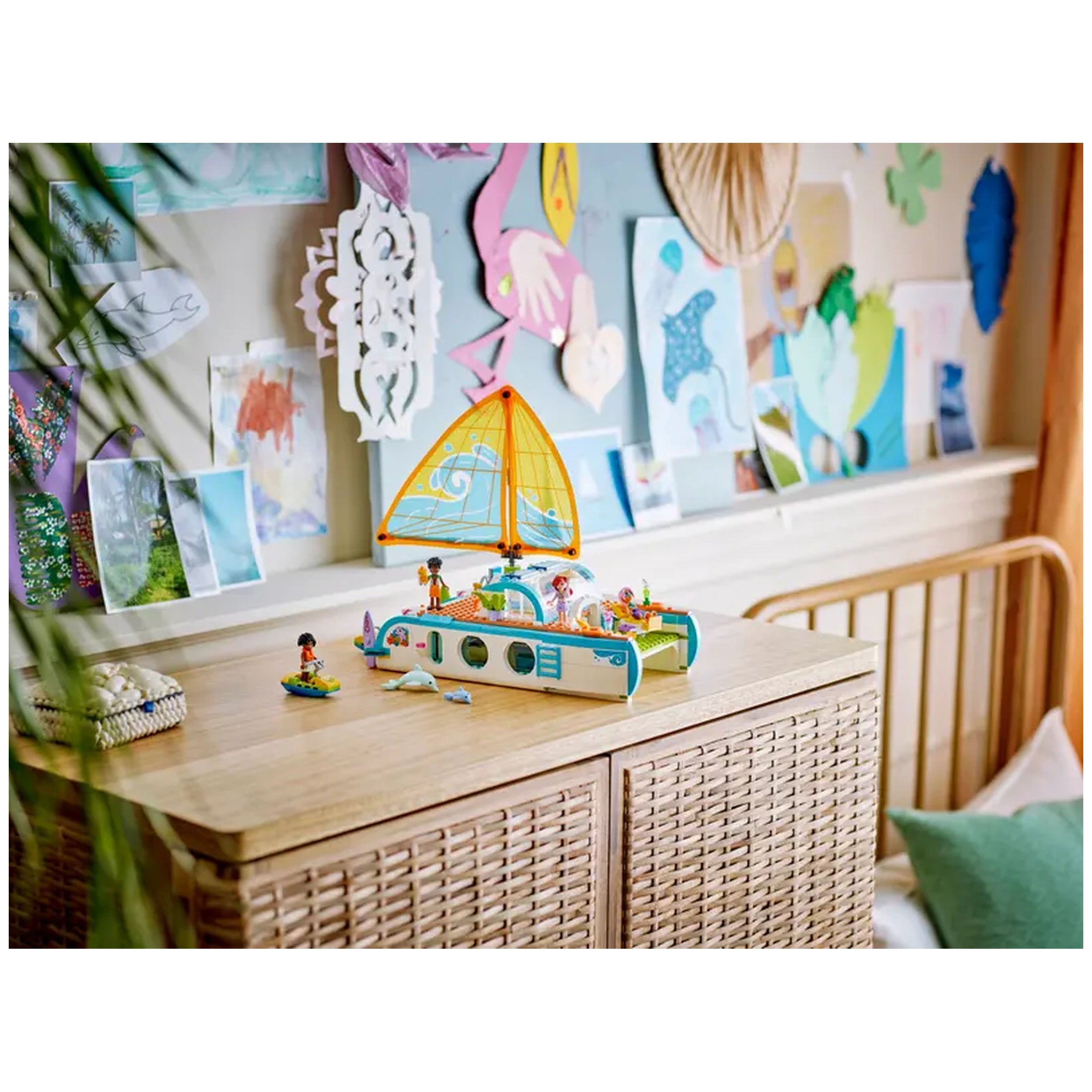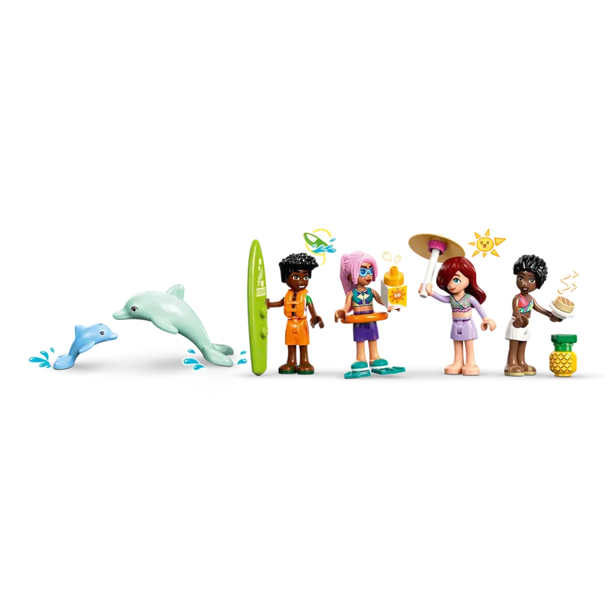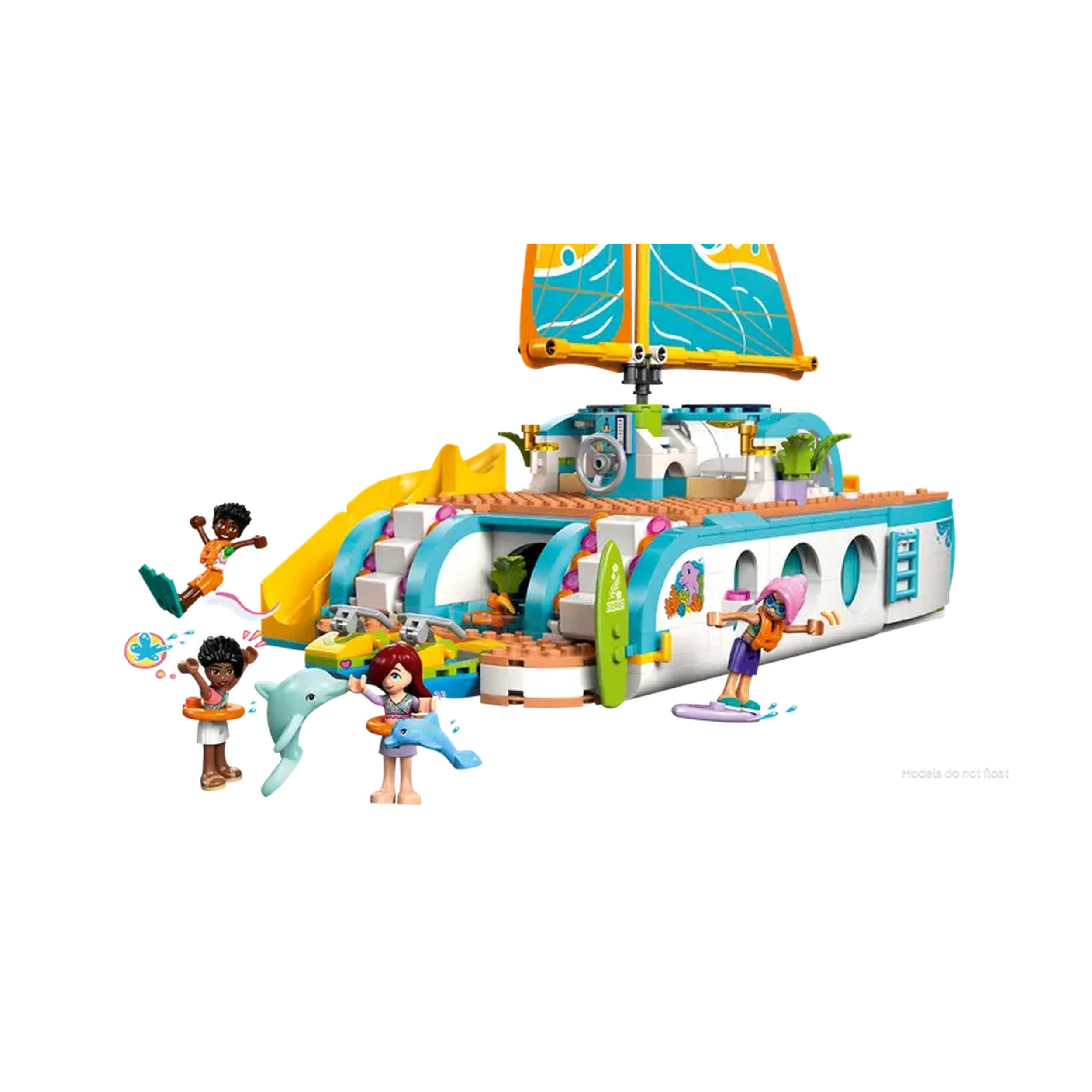 LEGO - Reiseboot-Abenteuer - Konstruktionsspielzeug Präsentieren Sie das LEGO® Friends Reiseboot-Abenteuer Konstruktionsset (42664), ein fesselndes Baukästchen, das die Fantasie von Kindern ab 8 Jahren anregen soll. Dieses bezaubernde Set ist perfekt für junge Abenteurer, die davon träumen, über die Meere zu segeln und aufregende Reisen zu unternehmen. Mit seinen lebhaften Farben und detaillierten Elementen lädt das Reiseboot-Abenteuer Kinder ein, in eine Welt der Kreativität und des Geschichtenerzählens einzutauchen, was es zu einem idealen Geschenk für Geburtstage, Feiertage oder besondere Anlässe macht. Das Reiseboot-Abenteuer Set enthält vier LEGO Friends Minidolls—Paisley, Zac, Celine und Sky—sowie zwei niedliche Delfinfiguren. Jeder Charakter bringt seine einzigartige Persönlichkeit zum Leben und ermutigt die Kinder, ihre eigenen Geschichten zu kreieren, während sie die offenen Gewässer erkunden. Das Boot selbst ist ein Designwunder, ausgestattet mit realistischen Funktionen wie einem funktionierenden Segel, das sich bewegt, wenn das Rad gedreht wird, und so ein immersives Spielerlebnis bietet, das echte Segelabenteuer nachahmt. Im Inneren des Bootes entdecken die Kinder eine Fülle von Aktivitäten und Bereichen zum Erkunden. Die detaillierte Küchenzeile und der Essbereich sind perfekt für Rollenspiele beim Kochen und Essen, während die Schlafräume mit vier Betten einen gemütlichen Rückzugsort nach einem Tag voller Spaß bieten. Die Ausstattung mit einem Whirlpool, einem Spielbereich und sogar einer Dusche und Toilette sorgt dafür, dass jeder Aspekt eines Urlaubs abgedeckt ist und endlose Erzählmöglichkeiten bietet. Neben dem Boot und den Minidolls enthält das Set eine Vielzahl von urlaubsbezogenen Accessoires. Kinder können aufregende Wasseraktivitäten mit zwei Wasserscootern, einem Surfbrett und Flossen genießen oder sich mit einem Schwimmring entspannen. Die im Set enthaltenen Ferngläser ermöglichen es jungen Entdeckern, Delfine in der Ferne zu erspähen und steigern den abenteuerlichen Geist der Spielzeit. Diese vielfältige Auswahl an Zubehör stellt sicher, dass die Kinder in fantasievolle Szenarien eintauchen können, egal ob sie eine Party auf dem Boot veranstalten oder auf Delfinbeobachtung gehen. Das LEGO® Friends Reiseboot-Abenteuer ist nicht nur ein Spielzeug; es ist ein Tor zu Kreativität und Freundschaft. Kinder können sich über die LEGO® Friends: The Next Chapter Online-Show mit den Charakteren verbinden, wo sie die lebendige Welt von Heartlake City weiter erkunden können. Dieses interaktive Element fügt eine weitere Ebene des Engagements hinzu und inspiriert die Kinder, ihre eigenen Geschichten und Abenteuer über das physische Set hinaus zu kreieren. Mit 685 Teilen ist dieses Konstruktionsset darauf ausgelegt, junge Baumeister herauszufordern und zu unterhalten. Die LEGO® Builder App bietet intuitive Anleitungen, die es den Kindern ermöglichen, Modelle in 3D zu vergrößern und zu drehen, während sie ihren Fortschritt verfolgen. Diese Funktion verbessert nicht nur das Bauerlebnis, sondern hilft auch, wesentliche Fähigkeiten wie Problemlösung und räumliches Vorstellungsvermögen zu entwickeln. Verpassen Sie nicht die Gelegenheit, die Fantasie Ihres Kindes mit dem LEGO® Friends Reiseboot-Abenteuer Konstruktionsset zu inspirieren. Ob sie bauen, spielen oder erkunden, dieses Set verspricht stundenlangen Spaß und Kreativität. Bestellen Sie jetzt und setzen Sie die Segel auf eine Reise voller Abenteuer und Freundschaft!