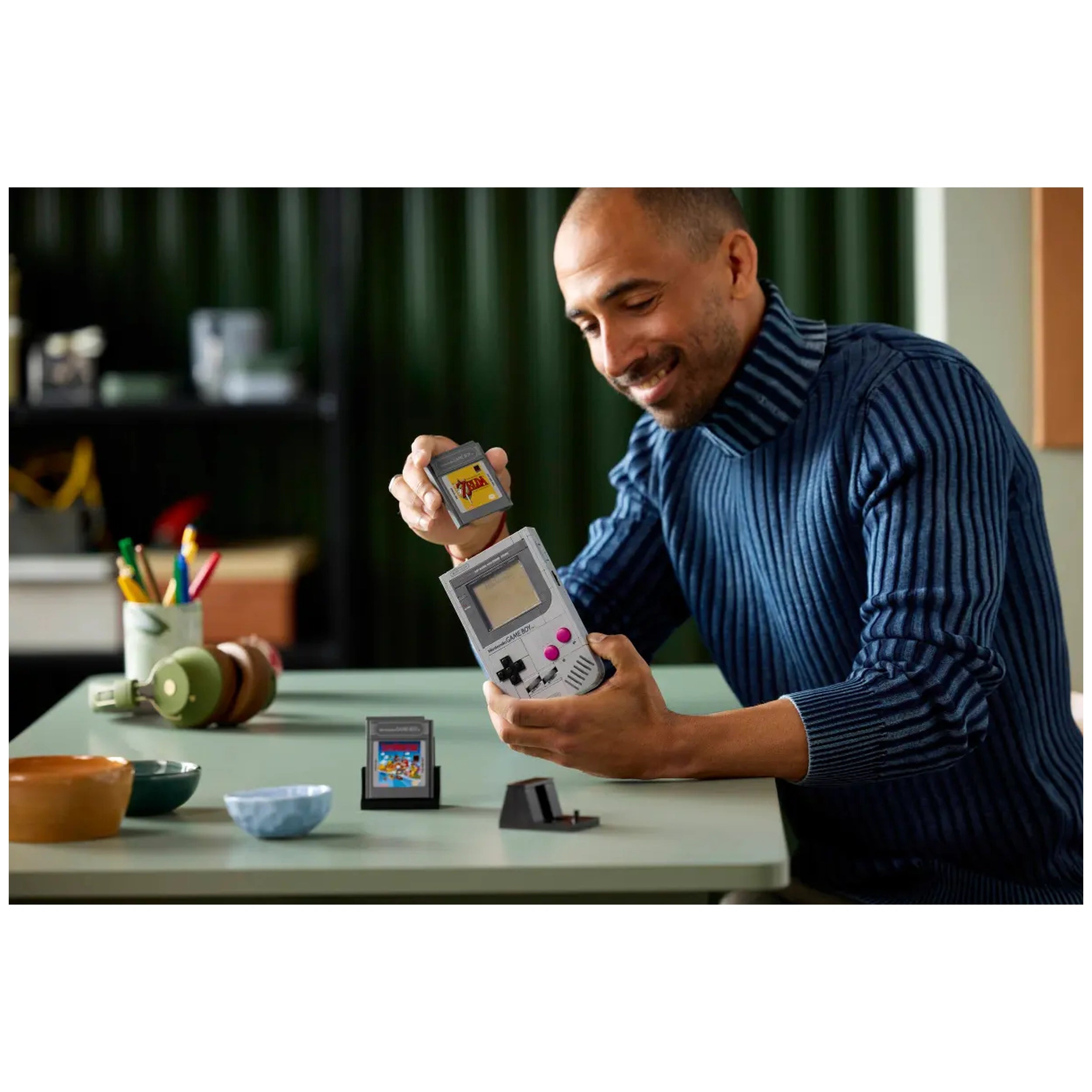 Customization is a key highlight of this set, as it comes with interchangeable, brick-built Game Paks inspired by beloved titles like The Legend of Zelda: Link's Awakening and Super Mario Land. Each Game Pak features corresponding lenticular screens, allowing you to personalize your display to reflect your favorite gaming memories. The included buildable display stand adds an elegant touch, making it a perfect centerpiece for any gaming collection.