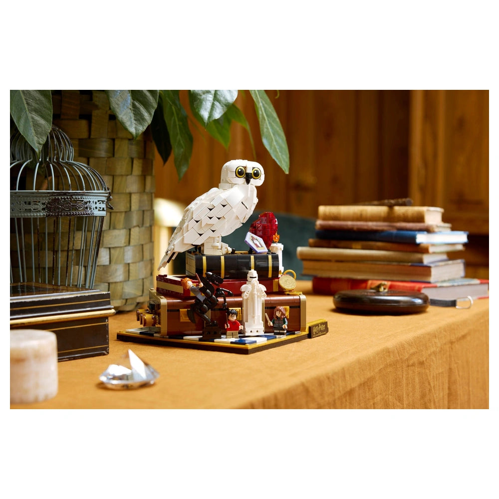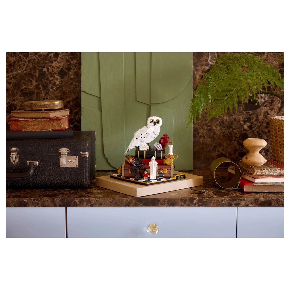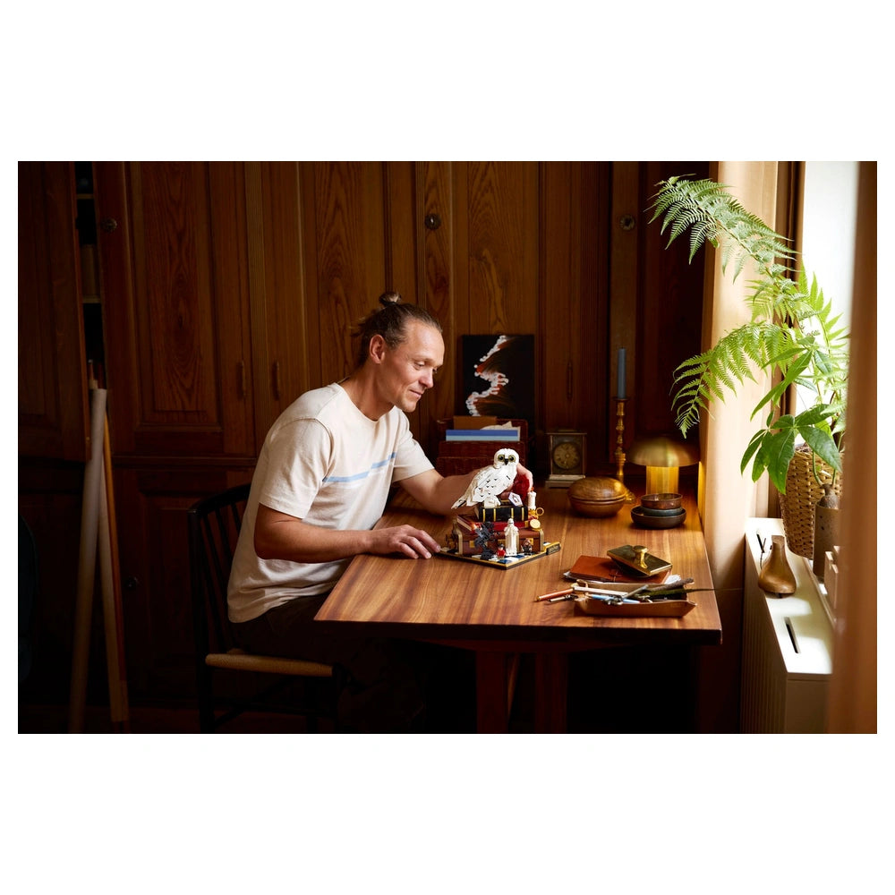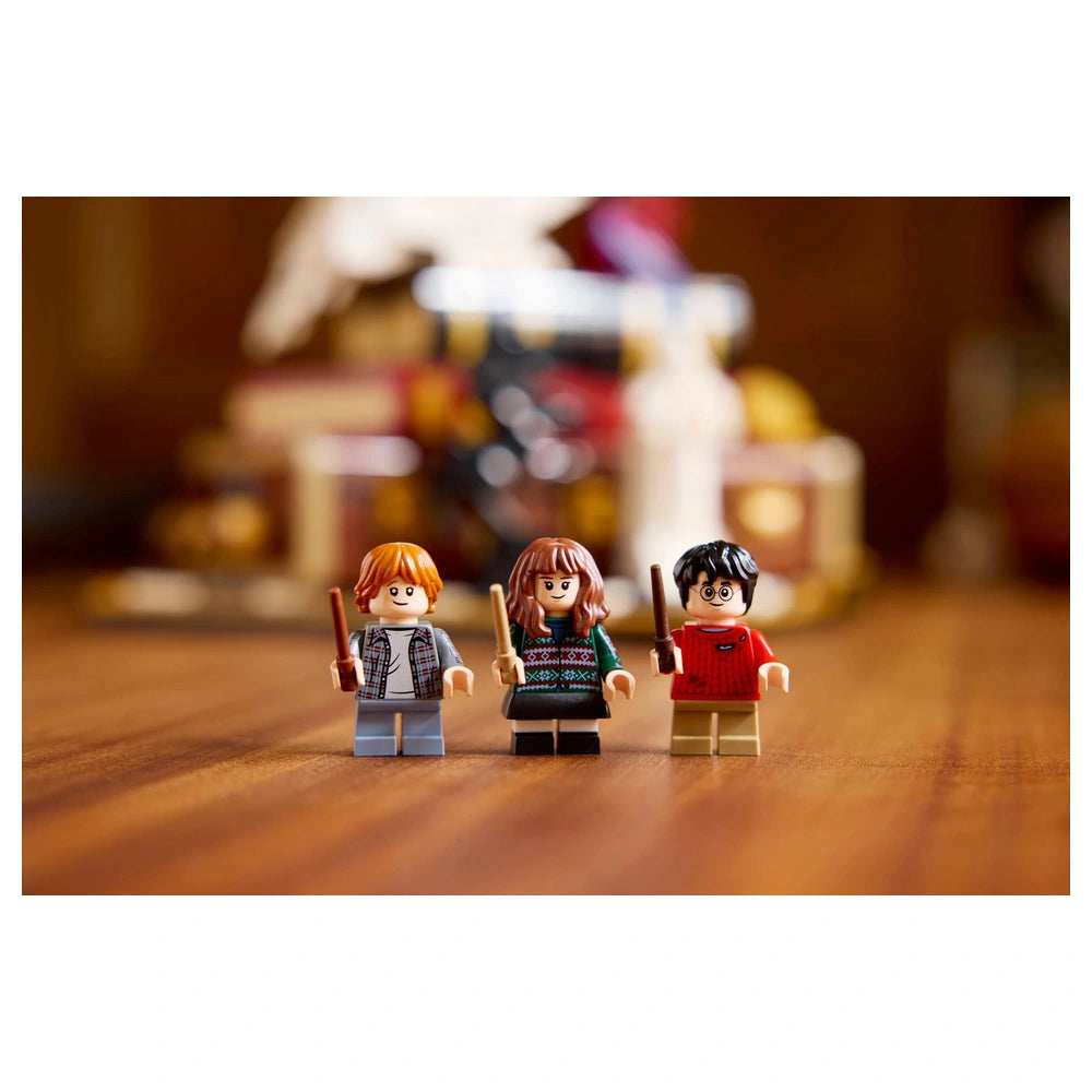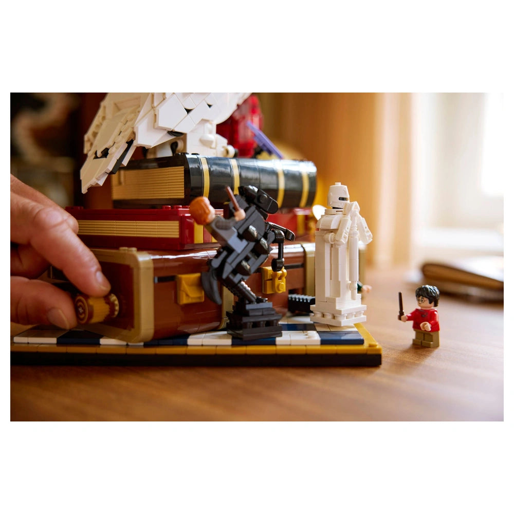 LEGO - Harry Potter Stein der Weisen Sammleredition - Konstruktionsspielzeug Präsentieren Sie die LEGO Harry Potter Stein der Weisen – Sammleredition (76466), ein sorgfältig gestaltetes Konstruktionsset, das die Magie des geliebten Harry Potter-Franchise feiert. Diese exklusive 25. Jubiläumsausgabe ist für erwachsene Fans und Sammler konzipiert und bietet eine einzigartige Gelegenheit, die bezaubernden Momente aus dem ikonischen ersten Buch und Film noch einmal zu erleben. Mit 1.571 Teilen ist dieses Set nicht nur ein Bau-Erlebnis; es ist eine nostalgische Reise zurück nach Hogwarts. Das Herzstück dieses Sets ist die beeindruckende LEGO Hedwig™ Schnee-Eule-Figur mit geschlossenen Flügeln, die perfekt den Stein der Weisen ergänzt, der auf Harry Potters Koffer präsentiert wird. Hedwig wird von drei beliebten Minifiguren begleitet: Harry Potter, Hermine Granger™ und Ron Weasley™, die jeweils ihren eigenen Charme in dieses Sammlerstück einbringen. Darüber hinaus werden Fans die Aufnahme ikonischer Gegenstände wie einer Schokoladenfrosch-Karte und eines Zauber-Schachbretts zu schätzen wissen, die das immersive Erlebnis bereichern. Dieses Konstruktionsset ist voller unterhaltsamer Funktionen, die die Magie zum Leben erwecken. Drehen Sie die drei Drehknöpfe, um verschiedene Funktionen zu aktivieren: Sprengen Sie die Seite von Harry Potters Koffer ab, um eine aufregende Szene aus dem Badezimmerangriff des Bergtrolls zu enthüllen, drehen Sie Hedwigs Kopf oder bewegen Sie die Dame auf dem Zauber-Schachbrett. Diese interaktiven Elemente fügen nicht nur Spielbarkeit hinzu, sondern dienen auch als erfreuliche Erinnerung an Schlüsselmomente aus der Geschichte. Die Mikroszenen, die in diesem Set enthalten sind, sind ein Beweis für die Kreativität und Detailgenauigkeit, für die LEGO bekannt ist. Stellen Sie unvergessliche Momente wie den Hogwarts™ Express und die fünf Prüfungen, die Harry bestehen muss, um den Stein der Weisen zu erreichen, nach. Jede Szene ist kunstvoll gestaltet, um die Magie des Harry Potter-Universums hervorzurufen, was dieses Set zu einem Muss für jeden Fan oder Sammler macht. Dieses LEGO Harry Potter Set ist mehr als nur ein Spielzeug; es ist ein durchdachtes Geschenk für Erwachsene, die die Serie schätzen. Ob Sie sich selbst verwöhnen oder einen anderen Harry Potter-Enthusiasten überraschen, dieses Sammlermodell wird sicher beeindrucken. Seine Premium-Qualität und die Liebe zum Detail machen es zu einem herausragenden Stück für die Ausstellung und verleihen jedem Zuhause oder Büro einen Hauch von Magie. Um Ihr Bauerlebnis zu verbessern, bietet die LEGO® Builder-App 3D-Bauanleitungen, mit denen Sie Ihre Sets speichern, Ihren Fortschritt verfolgen und Ihre Kreation aus jedem Winkel erkunden können. Dieser innovative Ansatz macht es einfacher denn je, in die Welt von LEGO einzutauchen. Verpassen Sie nicht die Gelegenheit, diese außergewöhnliche LEGO Harry Potter Stein der Weisen – Sammleredition zu besitzen. Bestellen Sie noch heute und beginnen Sie ein magisches Bauabenteuer!