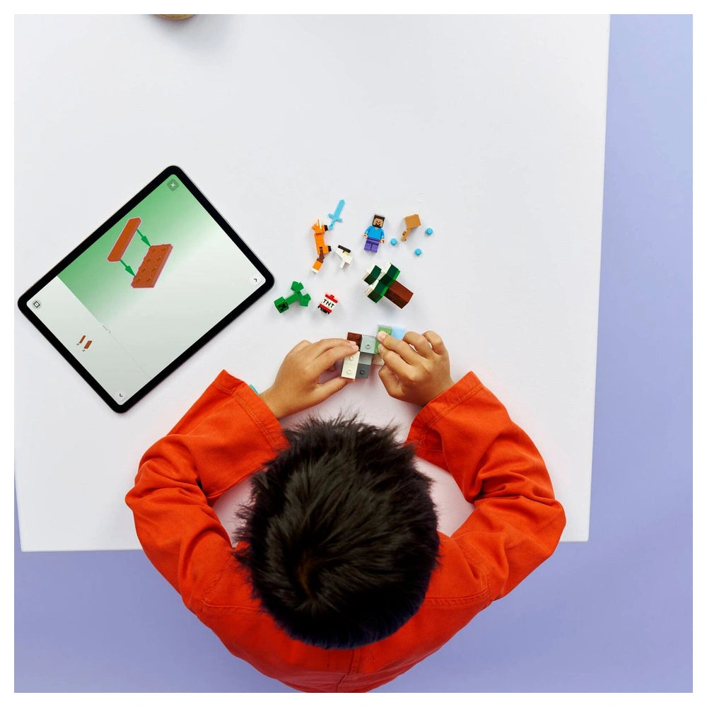 LEGO - Minecraft Steve's Taiga Adventure - Konstruktionsspielzeug Präsentieren Sie das LEGO - Minecraft - Steve's Taiga Adventure (21583), ein fesselndes Konstruktionsset, das für junge Gamer ab 6 Jahren entwickelt wurde. Dieses ansprechende Set lädt Kinder ein, in die aufregende Welt von Minecraft einzutauchen, wo sie Steve auf einer spannenden Quest voller Abenteuer, Schatzsuche und explosiver Action begleiten können. Mit seinem lebendigen Design und den interaktiven Funktionen ist dieses LEGO-Set perfekt für sowohl erfahrene Minecraft-Fans als auch für Neulinge. Das Steve's Taiga Adventure-Set umfasst 79 sorgfältig gestaltete Teile, die es den Kindern ermöglichen, eine dynamische Szene im Taiga-Biom zu bauen, das durch seine ikonischen Fichtenbäume, Schnee und üppiges Taiga-Gras gekennzeichnet ist. Das Set enthält eine Steve-Minifigur sowie einen Creeper™, einen Fuchs und ein Babykaninchen, die reichlich Gelegenheit für fantasievolles Spiel bieten. Kinder können ihre Lieblingsmomente aus dem Spiel nachstellen oder neue Geschichten erfinden, während sie die einzigartige Umgebung erkunden, die Minecraft bietet. Eine der herausragenden Funktionen dieses Sets ist die explosive TNT-Funktion, die es den Kindern ermöglicht, Felsen zu sprengen, um versteckte Diamanten zu entdecken. Dieses interaktive Element verbessert nicht nur das Spielerlebnis, sondern fördert auch Problemlösungsfähigkeiten und Kreativität, während die Kinder strategisieren, wie sie sich mit Steves Diamantschwert gegen den Creeper™ verteidigen können. Die Schatztruhe fügt eine zusätzliche Ebene der Aufregung hinzu und bietet den Kindern einen Ort, um ihre hart erarbeiteten Diamanten nach einer erfolgreichen Bergbau-Expedition zu lagern. Die LEGO Builder-App bereichert das Bauerlebnis zusätzlich, indem sie leicht verständliche digitale Anleitungen bereitstellt, die es den Kindern ermöglichen, hinein zu zoomen, in 3D zu drehen und ihren Fortschritt zu verfolgen. Dieses innovative Tool hilft jungen Bauherren, Vertrauen in ihre Konstruktionsfähigkeiten zu gewinnen, während es einen unterhaltsamen und ansprechenden Bauprozess gewährleistet. Mit der App können die Kinder sich auf die Freude am Schaffen konzentrieren, was das Erlebnis noch lohnenswerter macht. Dieses Set ist nicht nur ein Spielzeug; es ist ein perfektes Geschenk für Geburtstage, Feiertage oder besondere Anlässe für junge Minecraft-Enthusiasten. Egal, ob sie Fans von Gaming-Merchandise oder angehende Bauherren sind, Steve's Taiga Adventure wird sicher Freude bereiten und inspirieren. Die Kombination aus LEGO und Minecraft schafft eine einzigartige Mischung aus Kreativität und Gameplay, die Kinder dazu ermutigt, ihre Fantasie zu erkunden. Zusammenfassend lässt sich sagen, dass das LEGO - Minecraft - Steve's Taiga Adventure (21583) ein außergewöhnliches Konstruktionsset ist, das das beliebte Spiel zum Leben erweckt. Mit seinen ansprechenden Charakteren, interaktiven Funktionen und der Möglichkeit, Szenen zu erstellen und anzupassen, ist dieses Set ein Muss für jeden jungen Gamer. Verpassen Sie nicht die Gelegenheit, die Spielzeit Ihres Kindes zu bereichern – bestellen Sie noch heute Steve's Taiga Adventure und sehen Sie zu, wie ihre Kreativität aufblüht!