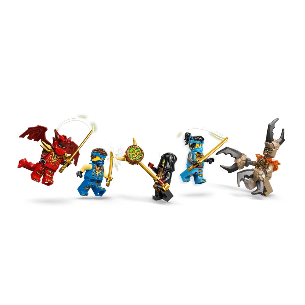 LEGO - Ninjago Jays Verwandlungsauto - Konstruktionsspielzeug Präsentieren Sie das LEGO Ninjago Jays Verwandlungsauto (71856), ein aufregendes Konstruktionsspielzeug, das für Jungen und Mädchen ab 8 Jahren konzipiert ist. Dieses dynamische 2-in-1-Spielzeug bietet ein fesselndes Bauerlebnis, das jungen Baumeistern ermöglicht, in die spannende Welt von Ninjago einzutauchen. Mit der Möglichkeit, zwischen dem normalen Modus und dem Drachenmodus zu wechseln, bietet dieses Set nicht nur stundenlangen fantasievollen Spielspaß, sondern dient auch als beeindruckendes Ausstellungsstück. Das Verwandlungsauto verfügt über filigrane Details, die das Ninjago-Universum zum Leben erwecken. Im normalen Modus ist das schlanke Design perfekt für Hochgeschwindigkeitsverfolgungen, während das Umklappen der Front einen furchterregenden Drachenkopf, goldene Klauen und rotierende Shurikens im Drachenmodus enthüllt. Diese Vielseitigkeit verbessert das Spielerlebnis und ermöglicht es Kindern, ihre eigenen actiongeladenen Szenarien inspiriert von der Ninjago Dragons Rising TV-Show zu kreieren. Ausgestattet mit einem federbelasteten Shooter, der zwei Geschosse abfeuert, fördert Jays Verwandlungsauto interaktives Spiel. Kinder können den Shooter abnehmen und auf einem mit Pflanzen bedeckten Nebengebäude platzieren, um epische Kämpfe zwischen Gut und Böse zu inszenieren. Das Set enthält fünf Minifiguren: Jay, Nya, Drachenform Kai, das Erdenmonster und den Loyalistenführer, was reichlich Gelegenheit bietet, ihre Lieblingsszenen nachzuspielen oder neue Abenteuer zu erfinden. Die LEGO Ninjago-Reihe ist bekannt für ihre detaillierten Mechs, Drachen und Tempel und erfreut sich großer Beliebtheit bei jungen Fans. Mit der LEGO Builder-App können Kinder mit Zuversicht bauen und nutzen dabei leicht verständliche digitale Anleitungen, die es ihnen ermöglichen, zu zoomen, in 3D zu rotieren und ihren Fortschritt zu verfolgen. Dieser innovative Ansatz beim Bauen verbessert nicht nur das Erlebnis, sondern fördert auch Problemlösungsfähigkeiten und Kreativität. Jays Verwandlungsauto ist nicht nur ein Spielzeug; es ist ein ideales Geschenk für junge Autoenthusiasten und Abenteuersuchende. Dieses Konstruktionsset bietet ein unterhaltsames und lohnendes Erlebnis und ist somit eine perfekte Wahl für Geburtstage, Feiertage oder besondere Anlässe. Seine fesselnden Funktionen und das ansprechende Design werden sicherlich jedes Kind begeistern, das eine Leidenschaft für Ninjago und fantasievolles Spielen hat. Verpassen Sie nicht die Gelegenheit, Kreativität und Abenteuer im Leben Ihres Kindes zu inspirieren. Bestellen Sie noch heute das LEGO Ninjago Jays Verwandlungsauto (71856) und beobachten Sie, wie sie aufregende Quests antreten, Bösewichte bekämpfen und die Kunst des Ninjutsu meistern. Dieses Set ist mehr als nur ein Spielzeug; es ist ein Tor zu einer Welt voller endloser Möglichkeiten und Spaß!