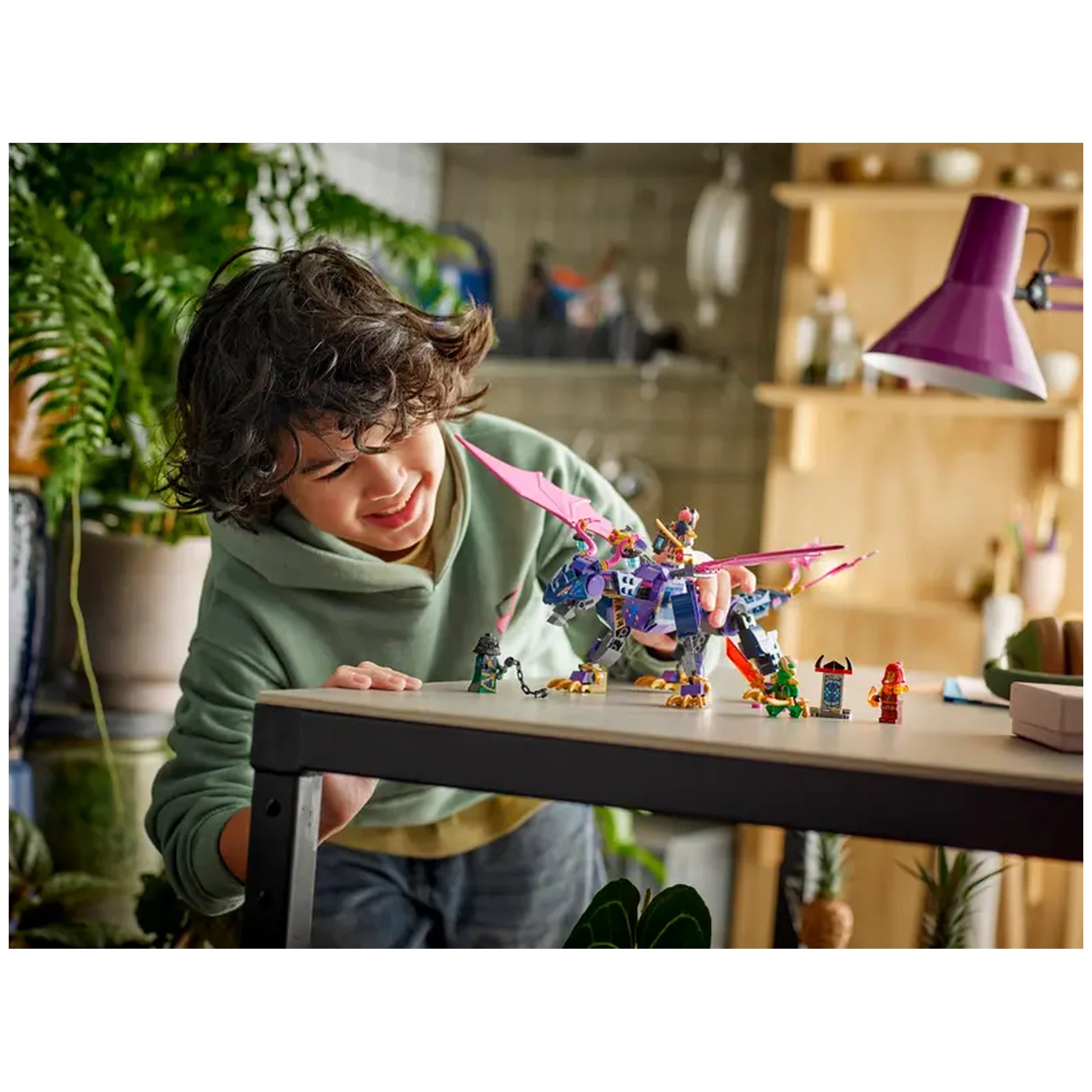 LEGO - Rontu der Meisterdrache - Action- und Spielzeugfiguren Präsentieren Sie das LEGO® NINJAGO® Set Rontu der Meisterdrache (71842), eine aufregende Ergänzung zur Welt von NINJAGO, die junge Baumeister ab 7 Jahren einlädt, in das actionreiche Universum der TV-Show Dragons Rising einzutauchen. Dieses sorgfältig gestaltete Bau-Set fördert nicht nur die Kreativität, sondern bietet auch eine fesselnde Möglichkeit für Kinder, ihre Lieblingsszenen aus Staffel 3 nachzustellen. Mit seinen filigranen Details und dynamischen Funktionen wird Rontu der Meisterdrache die Fantasie von Jungen und Mädchen gleichermaßen fesseln. Das Herzstück dieses Sets ist die hochgradig posierbare Drachenfigur, die über einen Schwanz, Beine, Flügel, Kopf und Kiefer verfügt, die alle für dynamisches Spiel angepasst werden können. Kinder können ihre Minifiguren in zwei verschiedenen Positionen auf Rontus Rücken platzieren, was aufregende Luftabenteuer ermöglicht. Darüber hinaus ist jeder Flügel mit einem Noppen-Schussgerät ausgestattet, sodass junge Ninjas in spannenden Kämpfen gegen ihre Feinde antreten können. Das beeindruckende Design des Drachen macht nicht nur den Bau zu einem Vergnügen, sondern auch zu einem fantastischen Ausstellungsstück, sobald es fertiggestellt ist. Im Set enthalten sind vier NINJAGO-Minifiguren: die heldenhaften Ninja-Krieger Lloyd, Sora und Wyldfyre sowie den bösen Meister des Unglücks, Zarkt. Jede Minifigur kommt mit ihrem eigenen einzigartigen Waffenaccessoire, das die Kinder ermächtigt, epische Konfrontationen zwischen Gut und Böse zu inszenieren. Die Ergänzung eines aus LEGO-Steinen gebauten Mini-Schreins fügt eine weitere Ebene der Aufregung hinzu, da er von Zarkt bewacht wird und eine geheime Botschaft enthält, die Lloyd mit seinem durchsichtigen Enthüllungsklingen-Accessoire offenbaren kann. Dieses LEGO-Set dreht sich nicht nur ums Bauen; es bietet ein umfassendes Spielerlebnis, das fantasievolles Geschichtenerzählen fördert. Die Kombination aus Drache, Minifiguren und dem Mini-Schrein ermöglicht endlose Rollenspielmöglichkeiten. Kinder können ihre eigenen Erzählungen kreieren und dabei ihre Kreativität und Problemlösungsfähigkeiten verbessern, während sie die Herausforderungen des NINJAGO-Universums meistern. Für Eltern, die das perfekte Geburtstagsgeschenk suchen, ist das Set Rontu der Meisterdrache eine ideale Wahl. Es bietet ein unterhaltsames und interaktives Bau- und Spielerlebnis, das jedes Kind mit einer Leidenschaft für Ninja-Action begeistern wird. Mit 381 Teilen bietet dieses Set eine lohnende Herausforderung, die Kinder stundenlang beschäftigt und unterhält. Um das Bauerlebnis zu verbessern, ist die LEGO Builder-App verfügbar, die Kinder durch ein intuitives Abenteuer führt. Diese App ermöglicht es ihnen, ihre Sets zu speichern, ihren Fortschritt zu verfolgen und sogar Modelle in 3D zu vergrößern und zu drehen, während sie bauen. Die Figur Rontu der Meisterdrache ist über 12 cm groß und macht sie zu einer auffälligen Ergänzung jeder LEGO-Sammlung. Verpassen Sie nicht die Chance, Kreativität und Abenteuer zu inspirieren – holen Sie sich noch heute Ihr LEGO® NINJAGO® Set Rontu der Meisterdrache und lassen Sie die Kämpfe beginnen!