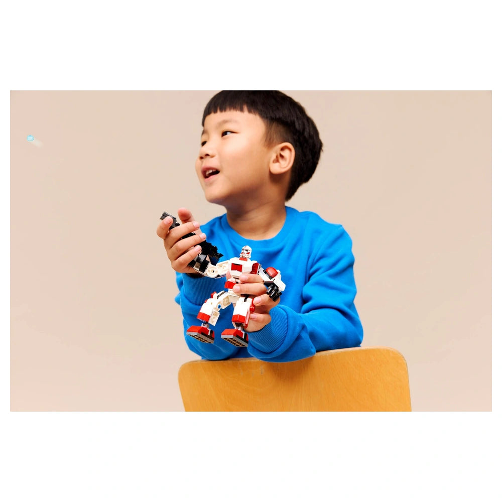 LEGO - Star Wars Clone Shock Trooper Mech - Konstruktionsspielzeug Präsentieren Sie das LEGO® Star Wars™ Clone Shock Trooper Mech (75448), ein aufregendes Konstruktionsset, das junge Baumeister in das ikonische Star Wars-Universum eintauchen lässt. Dieses fesselnde Set ist perfekt für Kinder ab 6 Jahren und bietet eine spannende Mischung aus Kreativität, Abenteuer und fantasievollem Spiel. Mit seinem leicht verständlichen Design können Kinder sofort in die Action eintauchen, was es zu einem idealen Geschenk für Jungen und Mädchen macht, die Fans der Franchise sind. Das Clone Shock Trooper Mech verfügt über eine bewegliche Mech-Figur, die dynamisches Spielen ermöglicht. Kinder können die enthaltene Clone Shock Trooper-Minifigur in das Cockpit des Mechs setzen und sein Blastergewehr auf dem Rücken sichern, um sich auf epische Kämpfe vorzubereiten. Die verstellbaren Arme, Beine und Füße des Mechs ermöglichen es den Kindern, verschiedene Kampfposen zu kreieren und das Spielerlebnis zu verbessern. Mit seiner auffälligen roten und weißen Rüstung dient dieser Mech nicht nur als Spielzeug, sondern auch als beeindruckendes Ausstellungsstück im Zimmer eines jeden Kindes. Das Set besteht aus 151 Teilen und ist für eine schnelle Montage konzipiert, sodass die Action fast sofort beginnen kann. Der Mech ist mit einem großen Blastergewehr ausgestattet, das über einen Stud Shooter verfügt, sodass Kinder in fantasievolle Kampf-Szenarien eintauchen können. Dieses Set ist Teil einer sammelbaren Reihe von LEGO Star Wars-Mechs, die Kinder dazu ermutigt, ihre Sammlung zu erweitern und neue Abenteuer zu erkunden. Um das Bauerlebnis zu verbessern, bietet die LEGO Builder-App intuitive digitale Anleitungen. Kinder können hineinzoomen, das Modell in 3D drehen und ihren Fortschritt verfolgen, was den Bauprozess sowohl unterhaltsam als auch lehrreich macht. Dieser interaktive Ansatz stärkt nicht nur das Selbstvertrauen junger Baumeister, sondern fördert auch die Liebe zum Bauen und zur Kreativität. Das Clone Shock Trooper Mech ist nicht nur ein Spielzeug; es ist ein Tor zu Geschichtenerzählen und fantasievollem Spiel. Kinder können ihre Lieblingsszenen aus der Star Wars-Saga nachspielen oder ihre eigenen einzigartigen Erzählungen erfinden. Diese Vielseitigkeit macht es zu einer fantastischen Ergänzung jeder LEGO Star Wars-Sammlung und ermöglicht endlose Möglichkeiten für Abenteuer im Spiel. Verpassen Sie nicht die Gelegenheit, Kreativität und Aufregung im Spiel Ihres Kindes zu inspirieren. Das LEGO® Star Wars™ Clone Shock Trooper Mech (75448) ist ein perfektes Geschenk, das Spaß, Lernen und den Nervenkitzel des Star Wars-Universums vereint. Bestellen Sie noch heute und sehen Sie zu, wie Ihr junger Baumeister epische Abenteuer in einer weit, weit entfernten Galaxie erlebt!