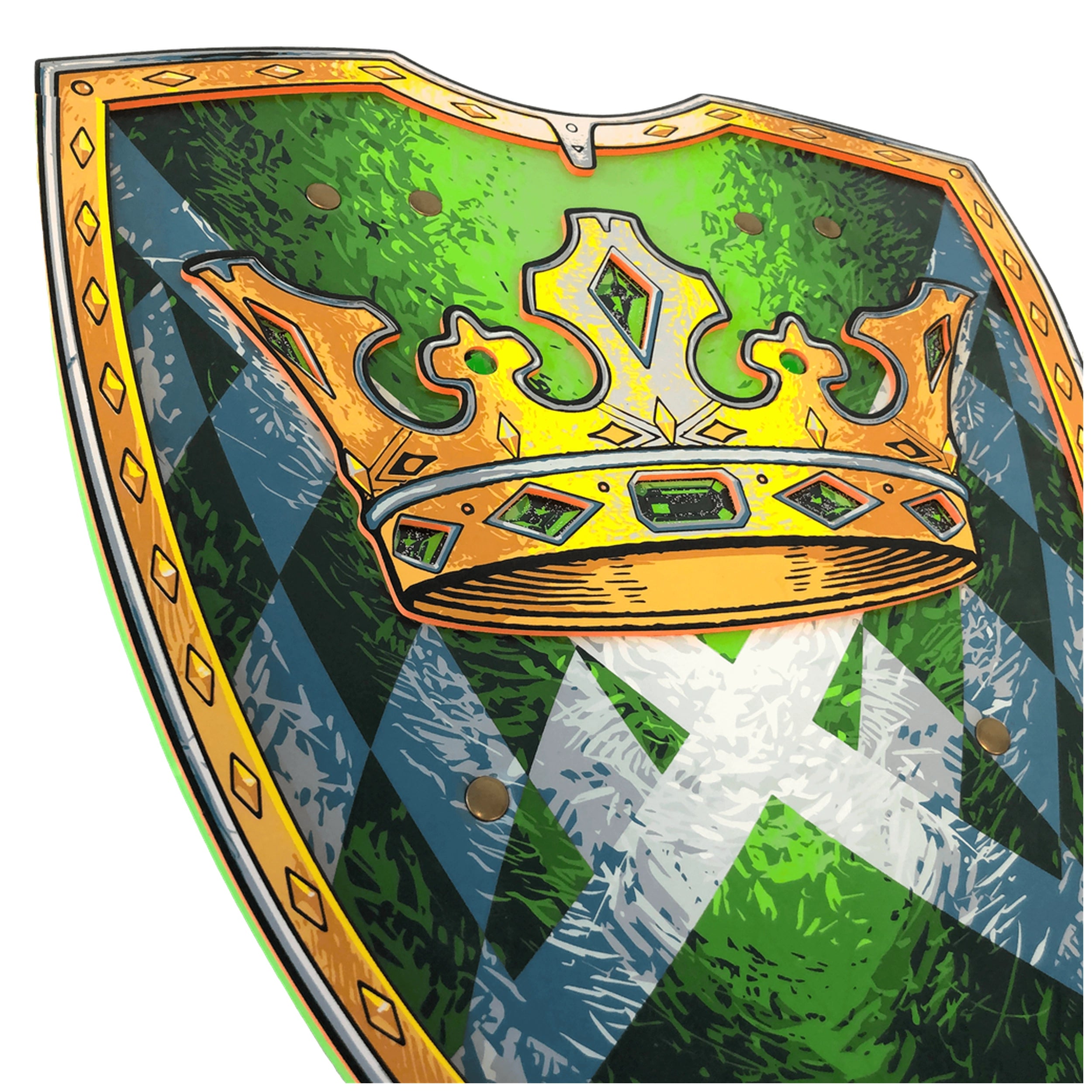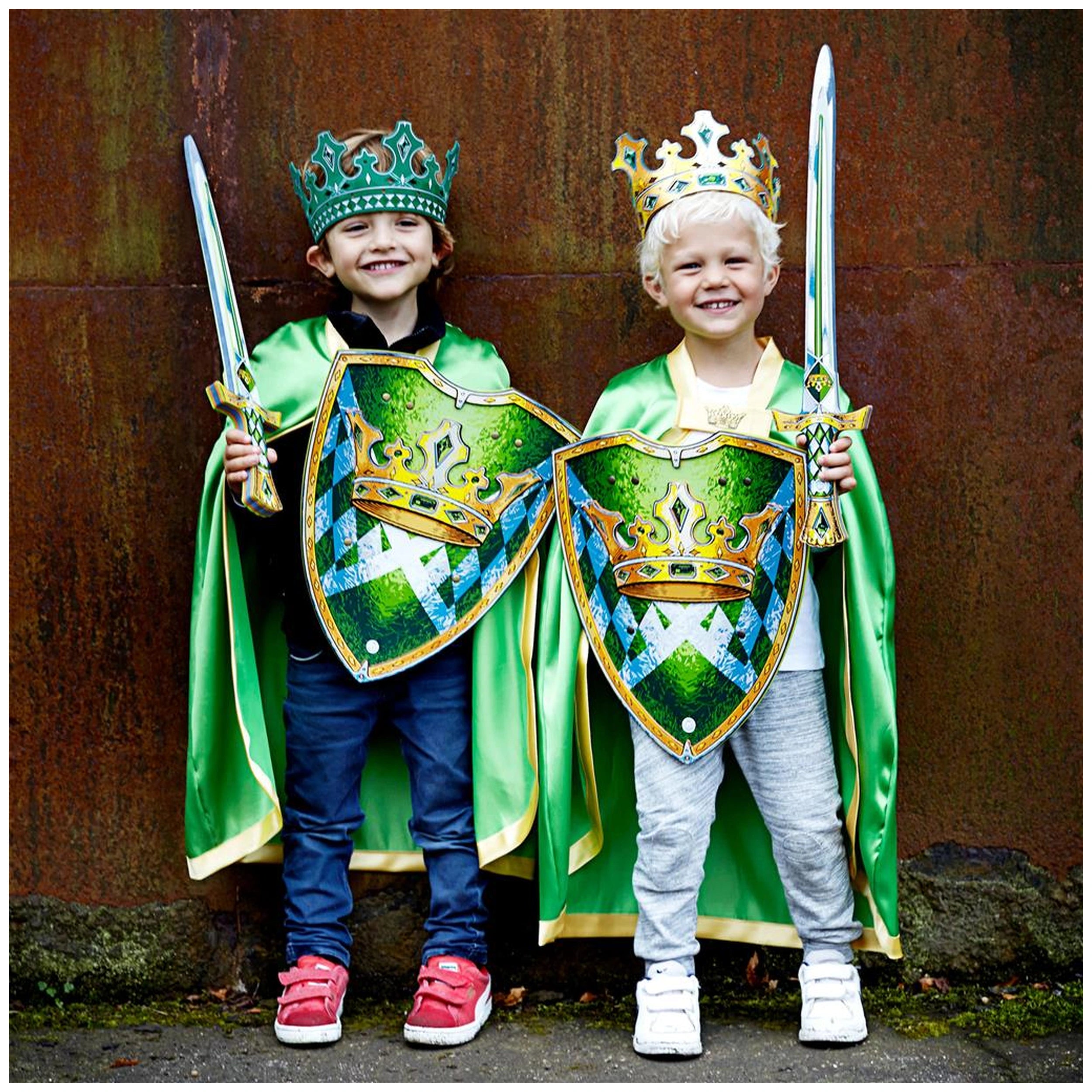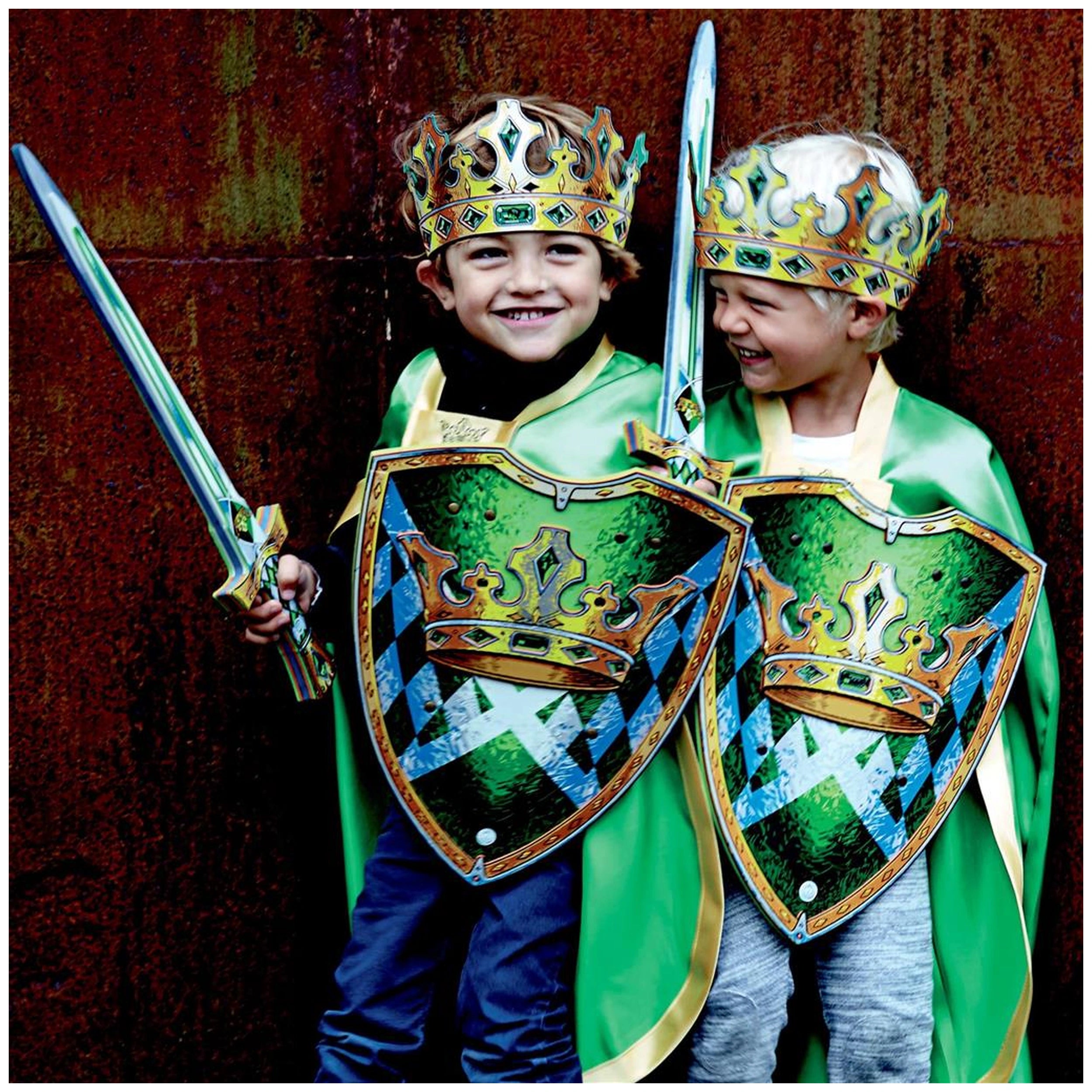 Liontouch - Kingmaker Shield - Die Kingmaker Linie - Rollenspiele und Fantasieberufe Wir präsentieren das Liontouch Kingmaker Shield, eine bemerkenswerte Ergänzung der Kingmaker Linie, die das Wesen des fantasievollen Spiels und der historischen Authentizität verkörpert. Entworfen für angehende junge Herrscher, ist dieses Schild nicht nur ein Spielzeug; es ist ein Tor zu einer Welt voller Abenteuer, in der Kinder in Rollenspiele eintauchen können, die ihre Kreativität und strategisches Denken anregen. Mit seinem auffälligen smaragdgrünen Hintergrund und dem klassischen englischen Kingmaker-Schachmuster ist das Kingmaker Shield visuell fesselnd und dient als kraftvolles Symbol für Autorität und Schutz. Das Kingmaker Shield ist mit einem tiefen Verständnis für die Verantwortlichkeiten des Führens gestaltet. Im Reich der Fantasie ist der Kingmaker eine zentrale Figur, die das Schicksal von Königreichen beeinflusst und die Zukunft von Nationen gestaltet. Dieses Schild befähigt Kinder, in die Rolle eines Kingmakers zu schlüpfen, und ermöglicht es ihnen, die Komplexität von Regierungsführung, Diplomatie und Konfliktlösung zu erkunden. Ob sie ihr Reich vor imaginären Feinden verteidigen oder Allianzen mit Freunden aushandeln, das Kingmaker Shield bereichert ihr Rollenspielerlebnis und macht jedes Abenteuer spannender und bedeutungsvoller. Bei Liontouch sind wir stolz auf unser Engagement für Qualität und Nachhaltigkeit. Das Kingmaker Shield besteht aus hochwertigem EVA-Schaum, einem Material, das für seine Flexibilität und Haltbarkeit bekannt ist. Dies gewährleistet, dass das Schild den Anforderungen des Spiels standhält, sodass Kinder ihre Abenteuer genießen können, ohne sich um Abnutzung sorgen zu müssen. Unser Engagement für Nachhaltigkeit bedeutet, dass wir Spielzeuge entwerfen, die für die Ewigkeit gemacht sind, wodurch die Notwendigkeit häufiger Ersatzkäufe verringert wird und wir zu einer umweltbewussteren Konsumkultur beitragen. Sicherheit hat in unserer Designphilosophie oberste Priorität. Das Kingmaker Shield wurde rigoros getestet, um sowohl den europäischen als auch den amerikanischen Sicherheitsstandards zu entsprechen, sodass Kinder mit Vertrauen spielen können. Wir verstehen, dass fantasievolles Spielen Spaß machen und sicher sein sollte, weshalb wir die Verwendung von ungiftigen Materialien priorisieren und schädliche Verstärkungen vermeiden. Eltern können beruhigt sein, dass ihre Kinder mit einem Schild ausgestattet sind, das nicht nur Kreativität entfacht, sondern auch den höchsten Sicherheitsstandards entspricht. Das Liontouch Kingmaker Shield ist nicht nur ein Spielzeug; es ist eine Einladung, das reiche Geflecht der Geschichte und die Kunst des Führens zu erkunden. Unsere Designs lassen sich von historischen Traditionen inspirieren, sodass Kinder in eine Welt eintauchen können, in der sie über die Vergangenheit lernen und ihre eigenen Geschichten gestalten können. Diese einzigartige Verbindung von Bildung und Spiel fördert die Liebe zur Geschichte und ermutigt Kinder, kritisch über die Rollen nachzudenken, die sie in ihren fantasievollen Abenteuern übernehmen. Zusammenfassend ist das Liontouch Kingmaker Shield der perfekte Begleiter für jeden jungen Führer, der bereit ist, epische Quests und Abenteuer zu erleben. Mit seinem atemberaubenden Design, dem Engagement für Sicherheit und dem Fokus auf Nachhaltigkeit ist dieses Schild mehr als nur ein Spielzeug; es ist ein Werkzeug für Wachstum und Entdeckung. Statten Sie Ihr Kind noch heute mit dem Kingmaker Shield aus und beobachten Sie, wie es seine Kreativität und Führungsfähigkeiten in einer Welt entfaltet, die nur durch die eigene Vorstellungskraft begrenzt ist. Verpassen Sie nicht die Gelegenheit, die nächste Generation von Herrschern zu inspirieren – bestellen Sie jetzt Ihr Kingmaker Shield und lassen Sie die Abenteuer beginnen!