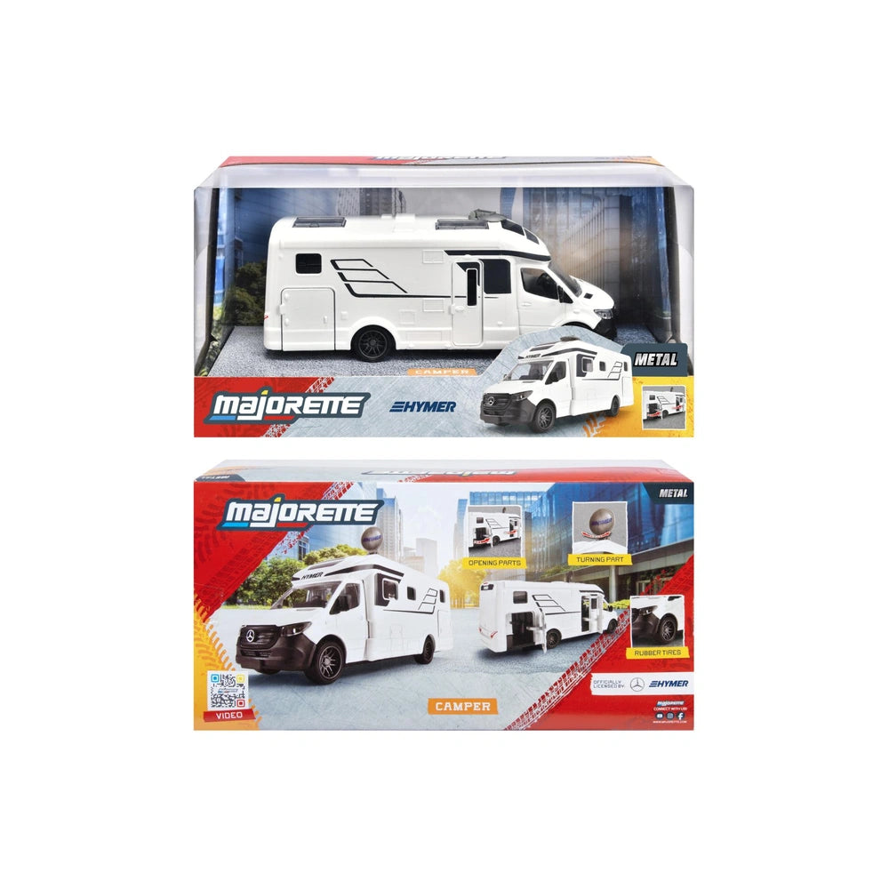 Der Majorette Hymer B-Class Camper, mit einer Länge von 19 cm, verfügt über eine robuste Metallkarosserie, ergänzt durch filigrane Details, die sein reales Gegenstück widerspiegeln. Mit einer offiziell lizenzierten Mercedes-Benz Fahrerkabine und HYMER Karosserie sticht dieses Modell durch seine Authentizität und Handwerkskunst hervor. Kinder können sich durch das Öffnen der rechten Vordertür und zwei Staufächer in fantasievolles Spiel vertiefen, perfekt zum Beladen von Campingausrüstung und Nachspielen von Abenteuern. Die bewegliche Satellitenschüssel fügt ein interaktives Element hinzu, das das Spielerlebnis verbessert.