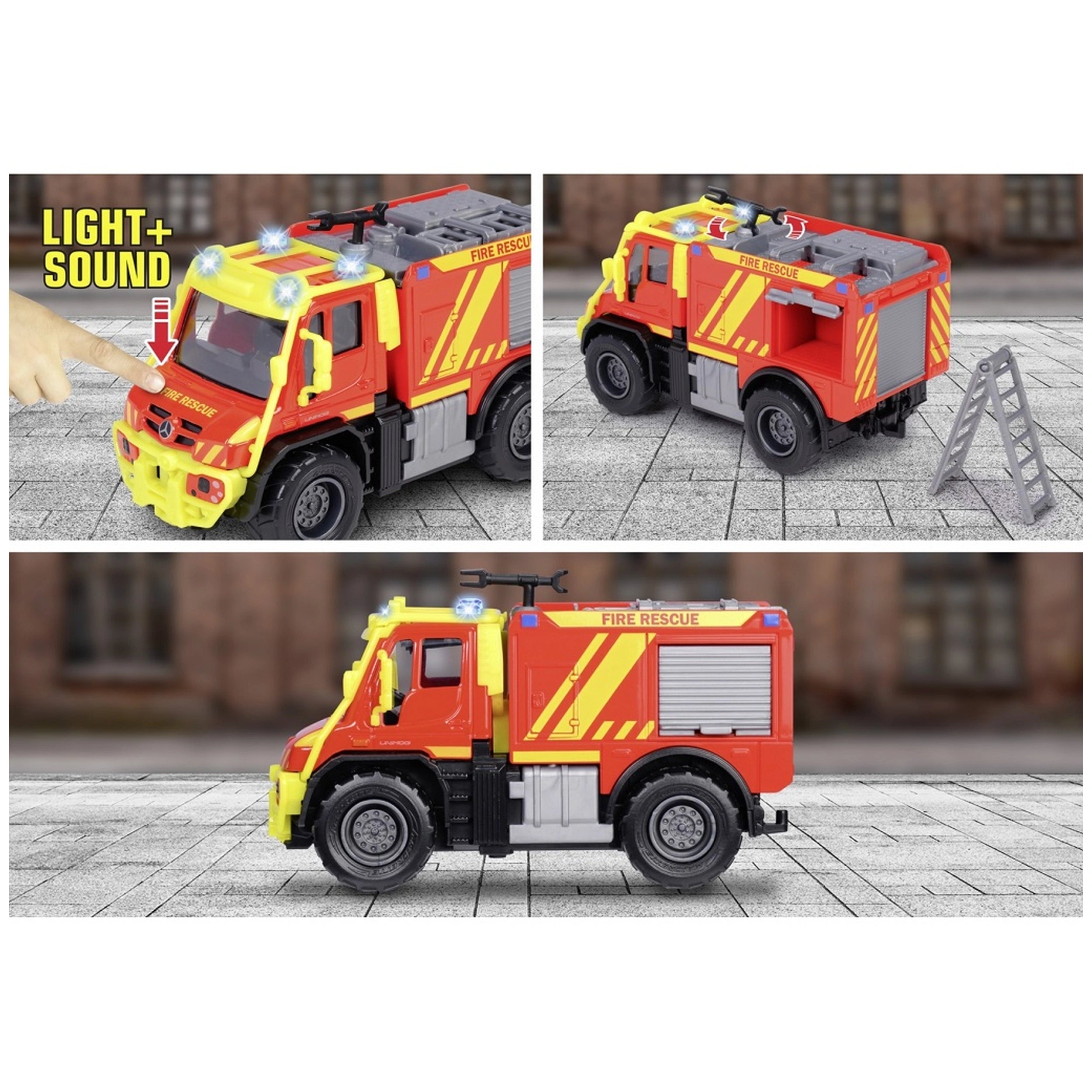 Majorette - Unimog U530 Feuerwehrfahrzeug - Spielzeuge Präsentieren Sie das Majorette Unimog U530 Feuerwehrfahrzeug, ein sorgfältig gestaltetes 15 cm Spielzeugfahrzeug, das die Fantasie junger Feuerwehrleute entfacht. Diese offiziell lizenzierte Nachbildung des ikonischen Mercedes-Benz Unimog U530 ist nicht nur ein Spielzeug; sie ist ein Tor zu aufregenden Abenteuern und heldenhaften Rettungen. Mit ihrer auffälligen roten Karosserie, die mit authentischen Schriftzügen der deutschen Feuerwehr verziert ist, ist dieses Feuerwehrfahrzeug bereit, in Aktion zu treten und sicherzustellen, dass jedes Kind die Aufregung des Feuerwehrseins direkt in seinem Spielzimmer erleben kann. Das Majorette Unimog U530 Feuerwehrfahrzeug ist für Action konzipiert und verfügt über eine robuste Metallkabine, die Langlebigkeit garantiert und ein realistisches Spielerlebnis bietet. Kinder ab drei Jahren werden die filigranen Details zu schätzen wissen, die dieses Fahrzeug hervorheben, von seinem Freilaufmechanismus, der eine sanfte Bewegung auf verschiedenen Oberflächen ermöglicht, bis hin zu seinen griffigen Gummireifen, die hervorragenden Halt bieten. Dieses Feuerwehrfahrzeug ist nicht nur schön anzusehen; es ist darauf ausgelegt, den Anforderungen des fantasievollen Spiels standzuhalten und somit ein zuverlässiger Begleiter für unzählige Feuerwehrmissionen zu sein. Ausgestattet mit spielerfreundlichen Funktionen bietet das Unimog Feuerwehrfahrzeug endlose Möglichkeiten für kreatives Geschichtenerzählen. Die abnehmbare Dachleiter, der bewegliche Feuerwehrschlauch und die zugänglichen Seitenablagefächer laden Kinder ein, sich in dynamischen Rollenspielszenarien zu engagieren. Ob sie eine Katze von einem Baum retten oder ein loderndes Feuer löschen, junge Feuerwehrleute können ihre Kreativität erkunden und durch interaktives Spiel wichtige Fähigkeiten entwickeln. Diese Liebe zum Detail sorgt dafür, dass jedes Abenteuer einzigartig und aufregend ist und die Kinder stundenlang beschäftigt bleiben. Majorette hat eine lange Tradition in der Herstellung hochwertiger Miniaturfahrzeuge, die Spaß mit Sammlerstücken verbinden. Seit 1964 steht die Marke für Innovation und Handwerkskunst und bietet eine vielfältige Palette von Modellen, die den Interessen von Kindern und Sammlern gleichermaßen gerecht werden. Die Grand Series, zu der auch das Unimog U530 Feuerwehrfahrzeug gehört, zeigt größere Maßstäbe und verbesserte Funktionen, die sie perfekt für Spiel und Ausstellung machen. Dieses Feuerwehrfahrzeug ist nicht nur ein Spielzeug; es ist ein Kunstwerk, das die Leidenschaft und Hingabe der Marke Majorette widerspiegelt. Für Eltern, die ein Spielzeug suchen, das fantasievolles Spiel und körperliche Aktivität fördert, ist das Majorette Unimog U530 Feuerwehrfahrzeug die ideale Wahl. Es fördert Teamarbeit und soziale Interaktion, da Kinder bei Rettungsmissionen zusammenarbeiten oder freundschaftliche Wettbewerbe veranstalten können. Das realistische Design und die Funktionalität des Fahrzeugs helfen Kindern, die Bedeutung von Notdiensten zu verstehen, während ein Gefühl von Verantwortung und Gemeinschaftsbewusstsein gefördert wird. Verpassen Sie nicht die Gelegenheit, die Fantasie Ihres Kindes mit dem Majorette Unimog U530 Feuerwehrfahrzeug zu inspirieren. Dieses außergewöhnliche Spielzeug ist perfekt für Geburtstage, Feiertage oder einfach so. Statten Sie Ihre Kleinen mit den Werkzeugen aus, die sie benötigen, um aufregende Abenteuer zu erleben und unvergessliche Erinnerungen zu schaffen. Bestellen Sie jetzt und lassen Sie den Feuerwehrspaß beginnen!