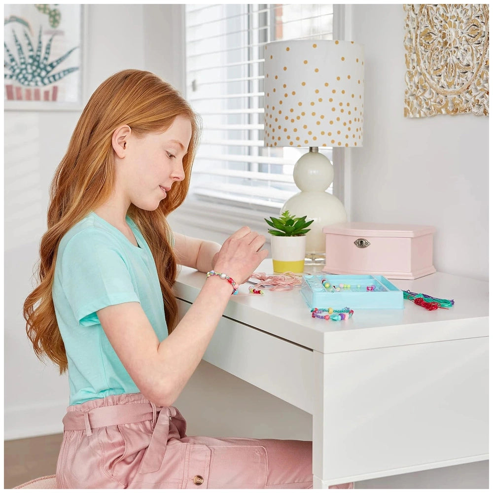 Make it Real Good Vibes Armbänder Set - Basteln Präsentieren Sie das Make it Real Good Vibes Armbänder Set, ein ansprechendes Bastelset, das darauf ausgelegt ist, die Kreativität von Kindern zu inspirieren. Dieses umfassende Schmuckherstellungsset ermöglicht es jungen Kreativen, fünf lebendige geflochtene Armbänder zu gestalten und bietet eine hervorragende Gelegenheit zur Selbstexpression und zur Entwicklung von Fähigkeiten. Mit 50 enthaltenen Teilen ist dieses Set perfekt für Kinder ab 8 Jahren und eignet sich ideal als Geschenk für Geburtstage, Feiertage oder einfach so. Das Good Vibes Armbänder Set enthält alles, was benötigt wird, um atemberaubende Accessoires zu kreieren. Im Inneren finden Sie sieben Farben von 20 Meter Baumwollgarn, drei Farben von 6 Meter Glitzerfaden und 1,5 Meter silbernes Metalldraht. Darüber hinaus umfasst das Set einen herzförmigen Ring, 38 verschiedene Perlen, zwei Charms, zwei Perlencharms, einen praktischen Perlenfädelhilfe und leicht verständliche Anleitungen. Das enthaltene kreative Tablett sorgt dafür, dass alle Materialien organisiert und zugänglich sind, was den Bastelprozess reibungslos und angenehm gestaltet. Dieses DIY-Schmuckherstellungsset macht nicht nur Spaß, sondern ist auch lehrreich. Während die Kinder ihre eigenen Armbänder weben, entwickeln sie wichtige Feinmotorik, visuelle Koordination und taktile-sensorische Fähigkeiten. Der Akt des Schmuckherstellens fördert Geduld und Konzentration und ermöglicht es den Kindern, sich mit einer produktiven und lohnenden Aktivität zu beschäftigen. Jedes Armband, das sie herstellen, ist ein Zeugnis ihrer Kreativität und Individualität und ermutigt sie, ihren einzigartigen Stil auszudrücken. Make it Real setzt sich für Nachhaltigkeit ein und stellt sicher, dass alle Produkte gemäß umweltfreundlichen Richtlinien hergestellt werden. Die Materialien, die im Good Vibes Armbänder Set verwendet werden, entsprechen den höchsten Qualitätsstandards und spiegeln ein Engagement für Handwerkskunst und Umweltverantwortung wider. Eltern können sich darauf verlassen, dass ihre Kinder sichere und hochwertige Materialien verwenden, während sie ihre künstlerischen Talente erkunden. Dieses Set ist nicht nur ein Bastelprojekt; es ist ein Tor zum Aufbau von Freundschaften. Mädchen können passende Armbänder kreieren, um sie mit Freunden zu teilen, was Verbindungen und Erinnerungen schafft, die ein Leben lang halten. Die lebendigen Farben und charmanten Designs machen diese Armbänder perfekt für jeden Anlass, sei es eine Geburtstagsfeier, eine Schulveranstaltung oder einfach ein Tag voller Spaß mit Freunden. Verpassen Sie nicht die Gelegenheit, Kreativität und Fähigkeiten in Ihrem Kind zu fördern. Bestellen Sie noch heute das Make it Real Good Vibes Armbänder Set und beobachten Sie, wie es auf eine farbenfrohe Reise der Selbstexpression und Kreativität geht. Dieses Set ist mehr als nur ein Bastelprojekt; es ist eine Gelegenheit für Kinder, die zukünftigen Führungspersönlichkeiten und Macher von morgen zu werden.