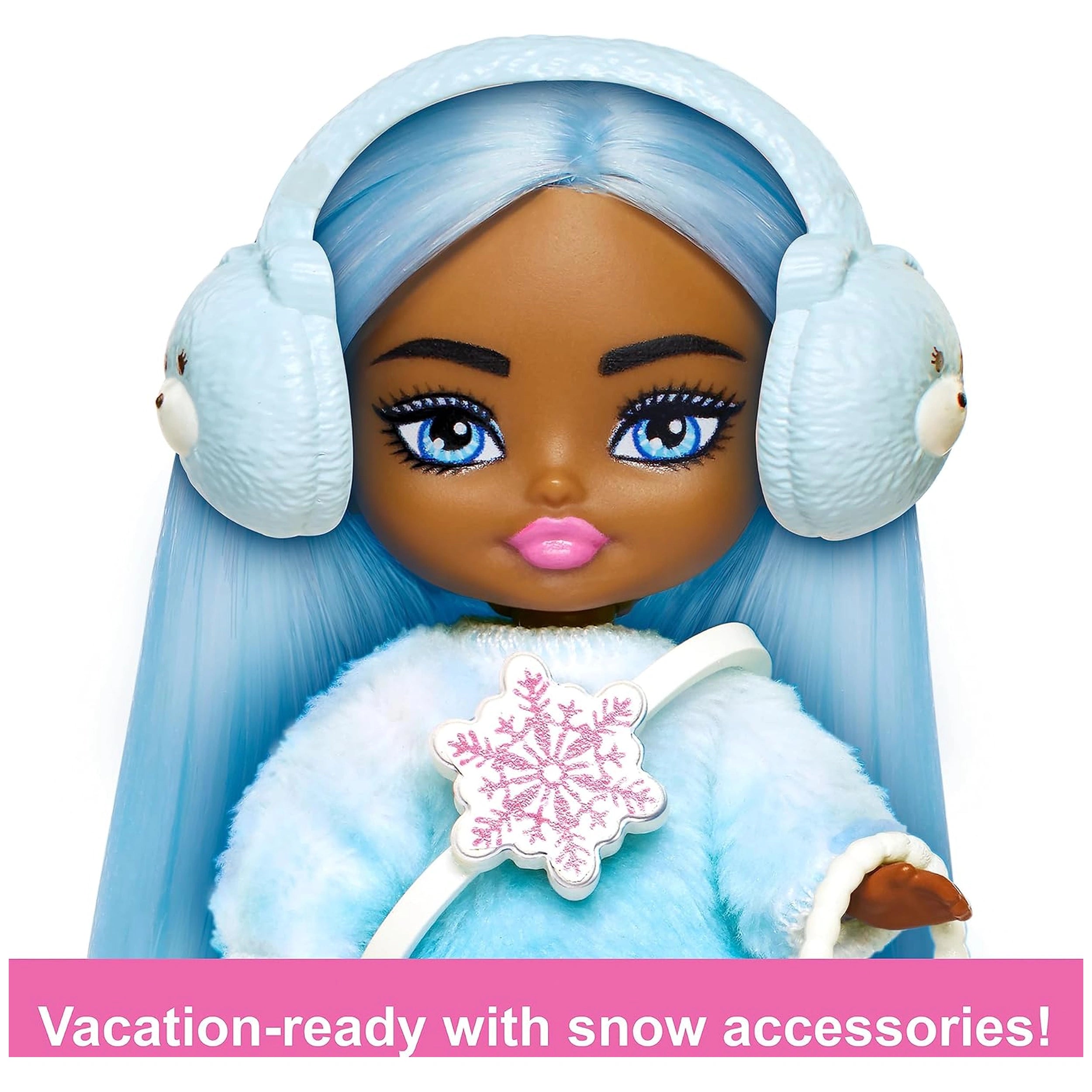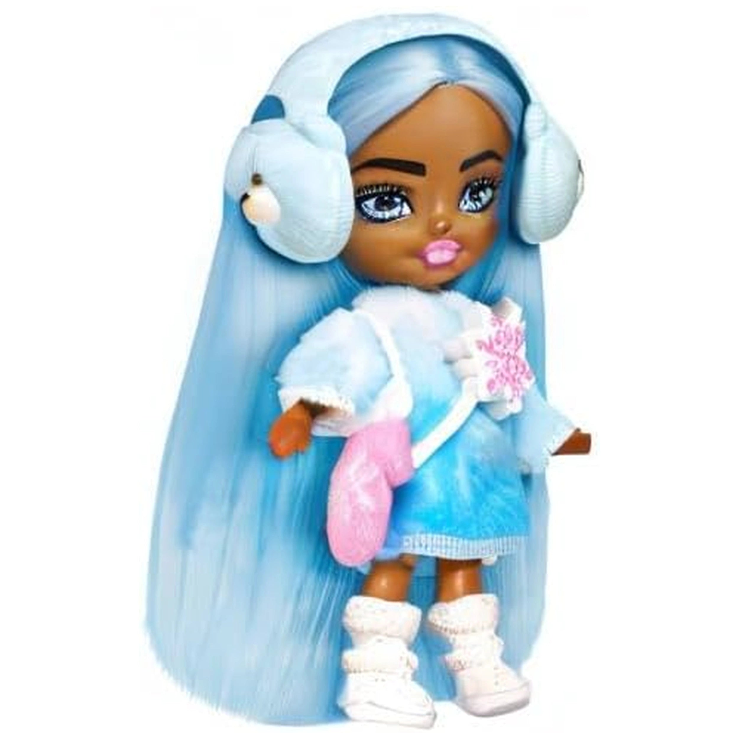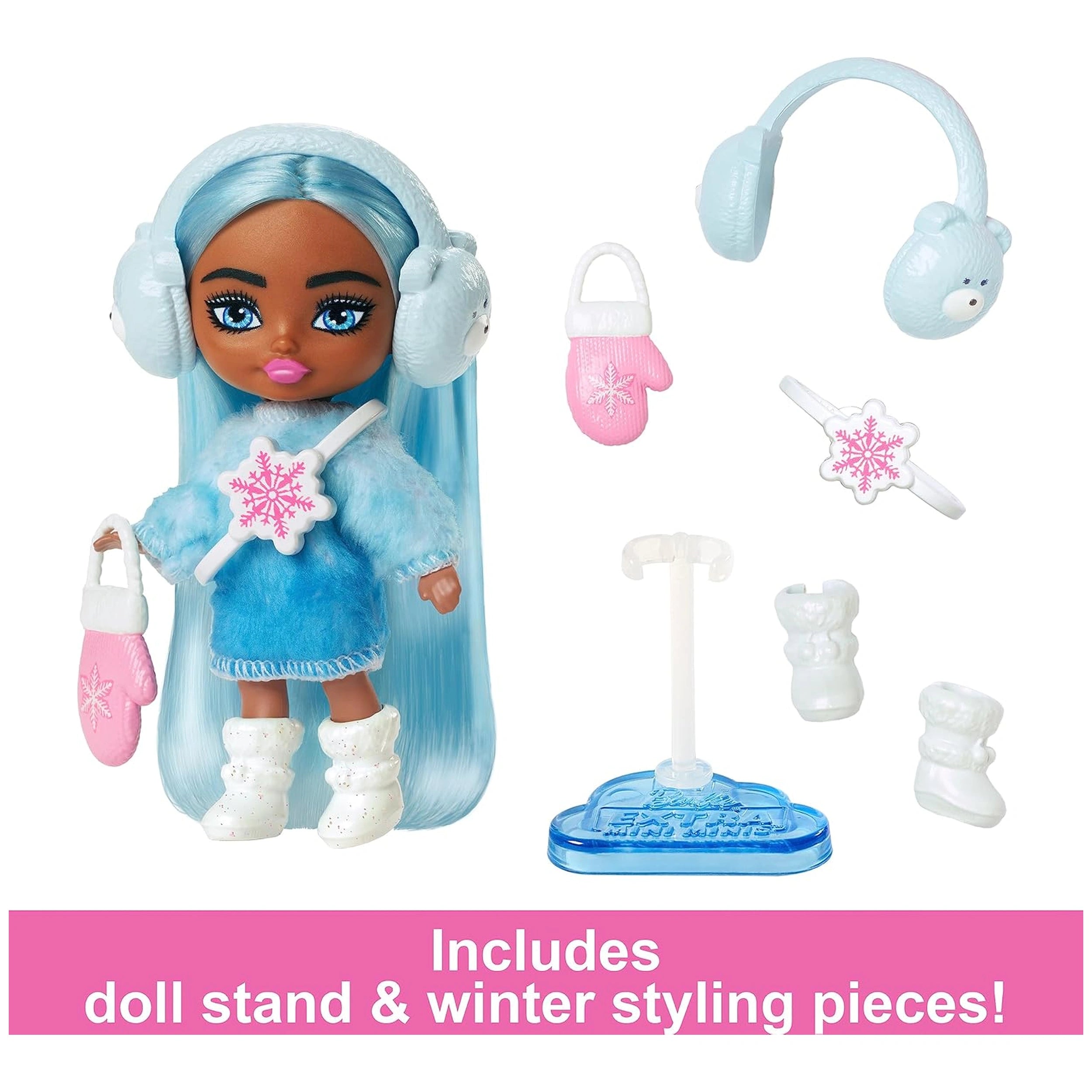 The winter-themed Barbie Extra Mini Minis doll is particularly eye-catching, featuring extra-long, icy blue hair that adds a touch of whimsy to her look. She is dressed in a cozy, fuzzy sweater dress that not only keeps her warm but also showcases her stylish flair. This doll is ready for a day of snow-filled fun, embodying the spirit of winter with her fashionable ensemble that encourages children to engage in storytelling and role-playing.