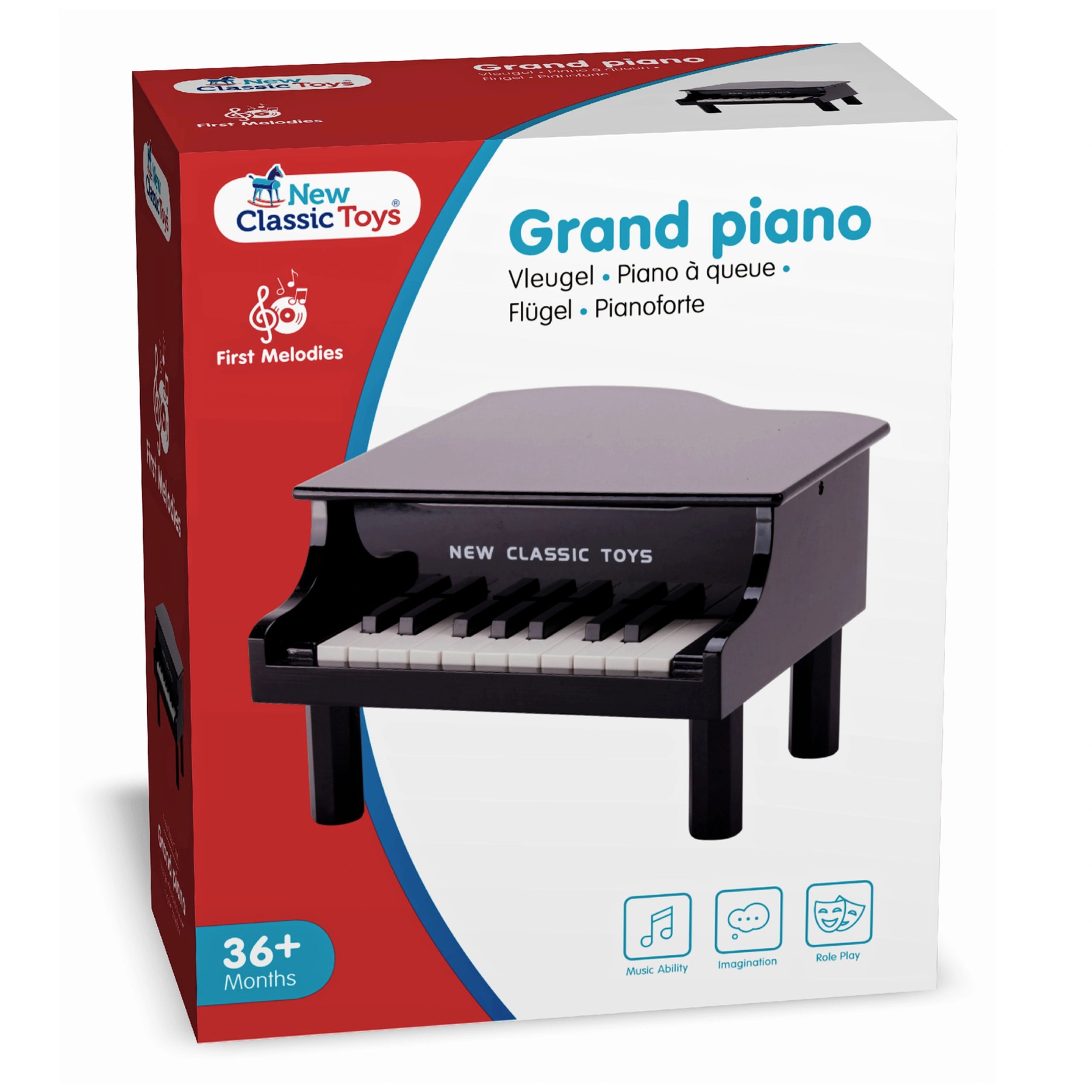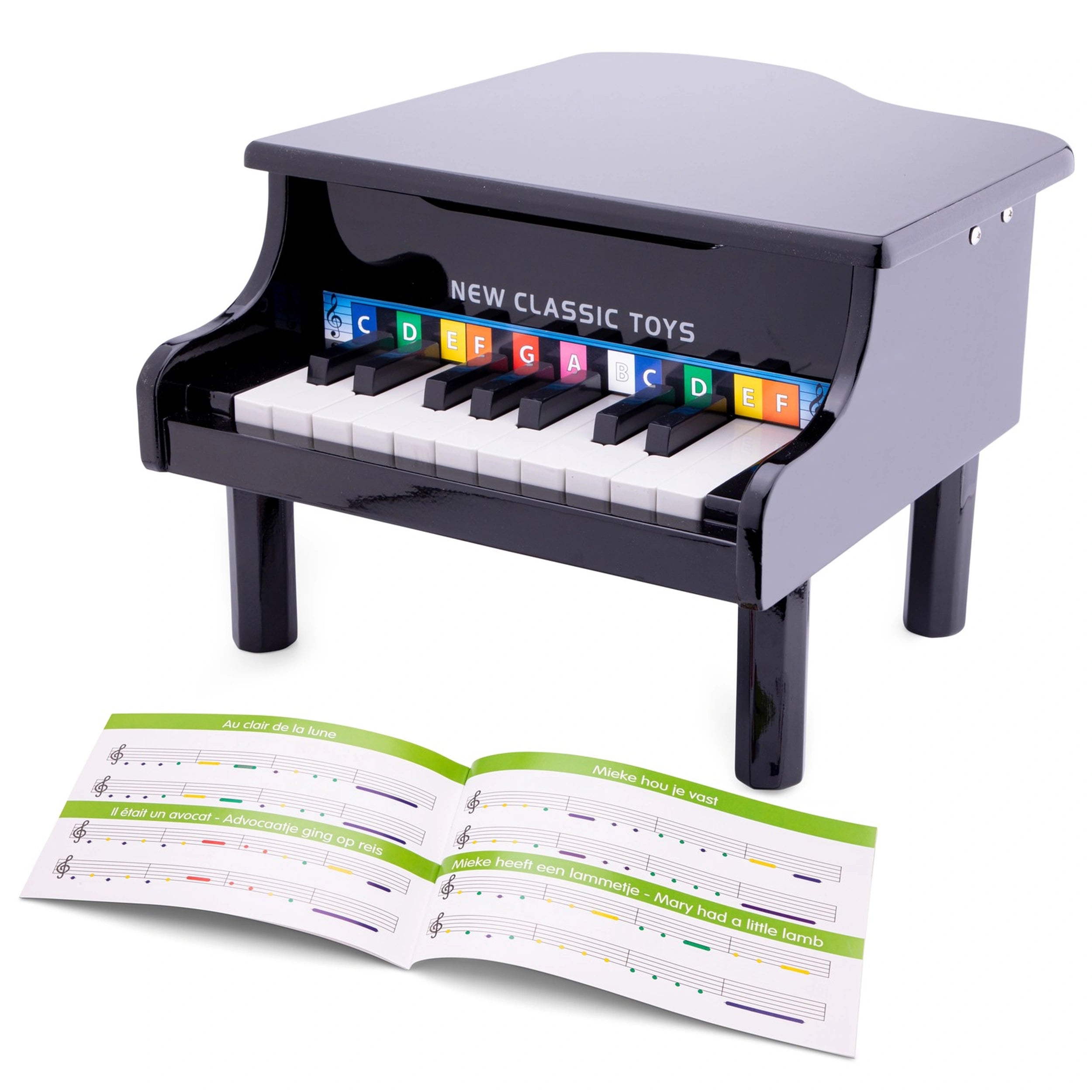 New Classic Toys - Klavier - 18 Tasten - Schwarz - Musikinstrumente Präsentieren Sie das New Classic Toys Klavier, ein exquisit gestaltetes Holzspielzeug mit 18 Tasten, das darauf ausgelegt ist, Kreativität und musikalische Entdeckung bei kleinen Kindern zu fördern. Dieses charmante schwarze Klavier ist nicht nur eine wunderbare Ergänzung für jedes Spielzimmer oder Schlafzimmer; es dient als Tor zur bezaubernden Welt der Musik. Mit Sorgfalt gefertigt, ist dieses Spielzeugklavier perfekt für angehende Musiker, die sich durch Klang und Rhythmus ausdrücken möchten. Das New Classic Toys Klavier verfügt über 18 wunderschön gestaltete Tasten, die für kleine Hände leicht zu drücken sind, sodass Kinder mit verschiedenen Melodien und Harmonien experimentieren können. Das elegante Design und die polierte Oberfläche machen es zu einem attraktiven Stück, das jede Einrichtung ergänzt und gleichzeitig fantasievolles Spielen anregt. Ob Ihr Kind seine erste Symphonie komponiert oder einfach nur Freude am Geräuschmachen hat, dieses Klavier wird mit Sicherheit stundenlange Unterhaltung und Lernmöglichkeiten bieten. Der Umgang mit Musikinstrumenten in jungen Jahren bietet eine Fülle von Entwicklungsbenefits. Klavierspielen hilft Kindern, Geduld zu entwickeln, während sie lernen, jede Note und jedes Lied zu meistern. Es fördert auch das Selbstbewusstsein, da sie Vertrauen in ihre Fähigkeiten gewinnen, zu kreieren und aufzutreten. Darüber hinaus wurde die musikalische Bildung mit verbesserten kognitiven Fähigkeiten in Verbindung gebracht, die Gedächtnis und Konzentration fördern. Das New Classic Toys Klavier ist ein ideales Werkzeug, um diese wesentlichen Fähigkeiten zu fördern und gleichzeitig ein unterhaltsames und interaktives Erlebnis zu bieten. Um die musikalische Reise Ihres Kindes weiter zu bereichern, wird dieses Klavier mit einem farbcodierten Musikbuch geliefert, das fünf beliebte Lieder enthält. Diese Ressource soll jungen Lernenden helfen, während sie ihr musikalisches Abenteuer beginnen, und es ihnen erleichtern, ihre ersten Melodien zu spielen. Das farbcodierte System vereinfacht den Lernprozess, sodass Kinder Farben mit Noten assoziieren können, was ihr Verständnis der Musiktheorie auf spielerische Weise verbessert. Sicherheit hat oberste Priorität, wenn es um Spielzeug für Kinder geht, und das New Classic Toys Klavier bildet da keine Ausnahme. Hergestellt aus hochwertigen, ungiftigen Materialien, ist dieses Klavier für Kinder ab drei Jahren geeignet. Eltern können beruhigt sein, dass ihre Kleinen mit einem sicheren und langlebigen Produkt spielen, das den Anforderungen der Spielzeit standhält. Zusammenfassend lässt sich sagen, dass das New Classic Toys Klavier mehr als nur ein Spielzeug ist; es ist eine Investition in die musikalische Bildung und persönliche Entwicklung Ihres Kindes. Fördern Sie die Liebe Ihres Kindes zur Musik und Kreativität, indem Sie ihm dieses wunderschön gestaltete Klavier vorstellen. Verpassen Sie nicht die Gelegenheit, die nächste Generation von Musikern zu inspirieren – bestellen Sie noch heute das New Classic Toys Klavier und beobachten Sie, wie die musikalische Reise Ihres Kindes beginnt!