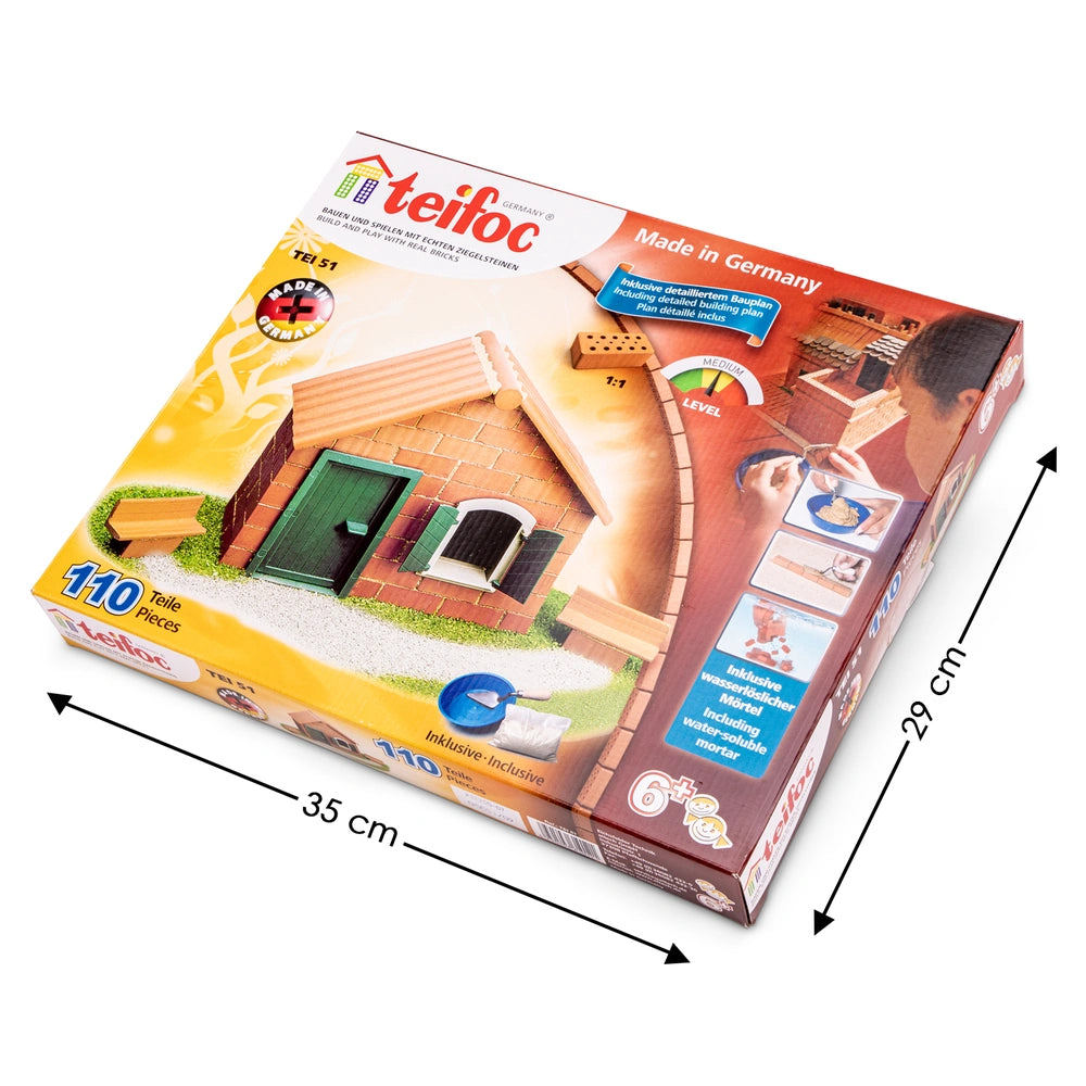 NEW CLASSIC TOYS presents the Teifoc Summerhouse Starter Box, an authentic construction set designed for children aged 6 and up, within the category of Model Making. This product offers a unique building experience using real miniature fired-clay bricks and safe, water-soluble mortar, allowing young builders to create a realistic summerhouse from scratch. The primary value proposition lies in its ability to provide a tactile and rewarding sensory experience that mimics actual masonry, fostering creativity and engineering skills.