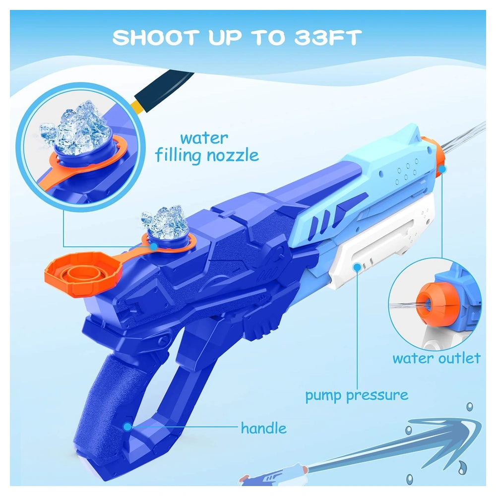 Teil der lebhaften Splashmatic-Serie von ODS Toys, verfügt dieses Modell über ein robustes, ergonomisches Design in auffälligem Dunkelblau, Himmelblau und Gelb. Hergestellt aus hochwertigen, leichten Materialien, gewährleistet es Beweglichkeit während schneller Wasserschlachten. Mit einem zuverlässigen manuellen Pumpmechanismus bietet es einen konstanten und kraftvollen Wasserstrahl ohne Batterien, sodass es sofort einsatzbereit ist, sobald Sie das Wasser erreichen.