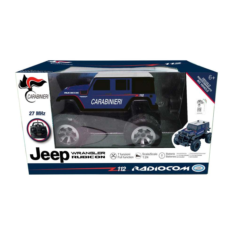 ODS präsentiert das Radiocom Jeep Wrangler Rubicon Carabinieri RC Auto, ein ferngesteuertes Fahrzeug, das für Kinder ab 6 Jahren konzipiert ist, in der Kategorie Spielfahrzeuge. Dieses Produkt bietet ein authentisches Erlebnis mit hochgeschwindigkeits-taktischen Aktionen und ermöglicht es jungen Agenten, aufregende Patrouillenmissionen mit einer Nachbildung des ikonischen italienischen Polizeifahrzeugs durchzuführen.
