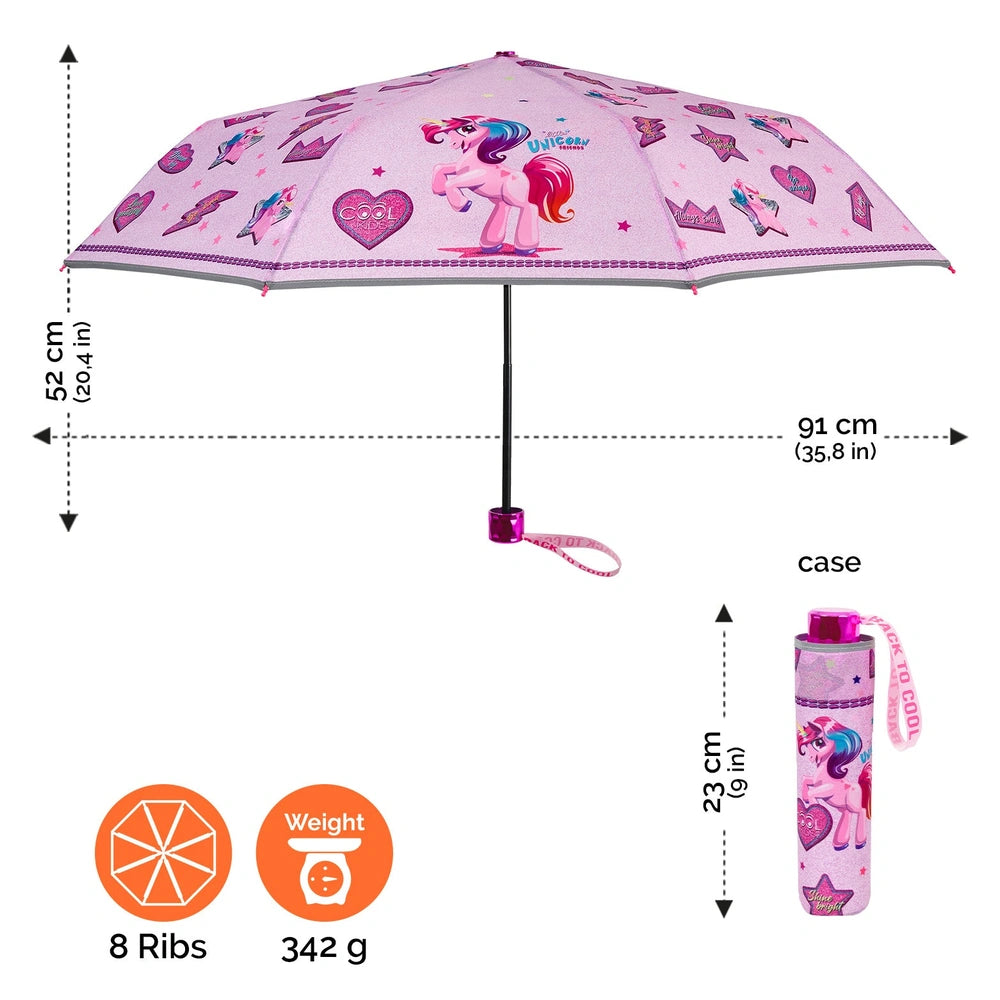 Der Perletti Kids Unicorn Heart & Stars Mini Regenschirm ist auf Langlebigkeit und Sicherheit ausgelegt, was ihn perfekt für den täglichen Gebrauch und den Schulweg macht. Sein lebhaftes Design zeigt ein charmantes Einhorn, das sicherstellt, dass Kinder ihn gerne mitnehmen. Der Schirm ist mit einer winddichten Fiberglasstruktur ausgestattet, die über acht verstärkte Rippen verfügt, die außergewöhnliche Elastizität und Widerstandsfähigkeit gegen starke Winde bieten und ein Brechen bei windigem Wetter verhindern.