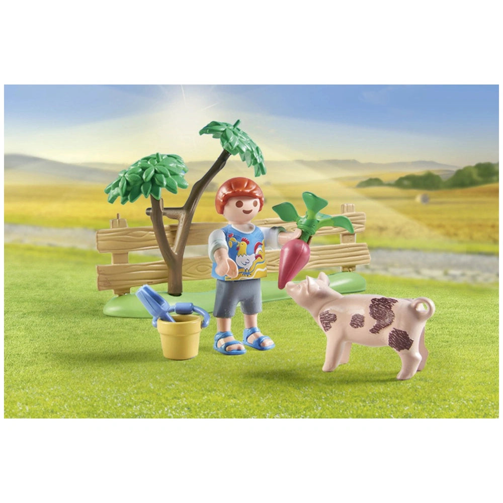 The centerpiece of this delightful set is the beautifully designed vegetable garden, complete with a variety of colorful plants and vegetables. Children can engage in hands-on play as they water the garden, watching their plants "grow" through the innovative water-filling feature. This interactive element not only enhances the play experience but also teaches kids about the importance of nurturing plants and the basics of gardening. The inclusion of a sweet piglet and a playful puppy adds an extra layer of fun, allowing children to create their own stories and adventures.
