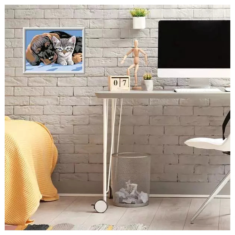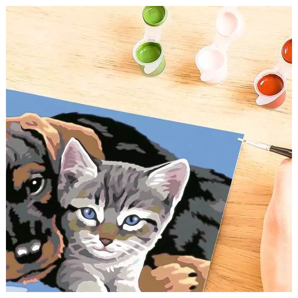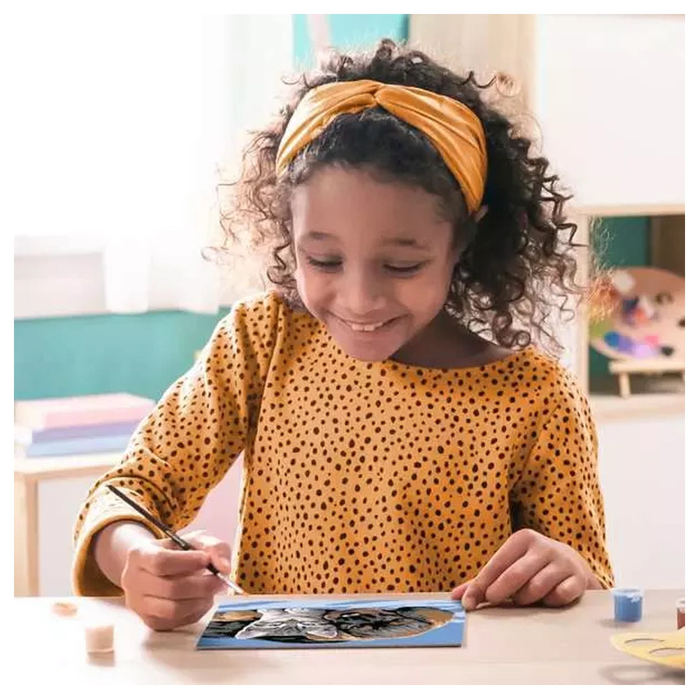 The Special Friendship kit features the innovative Colored Borders system, where pre-colored lines mark each area to help the artist easily identify sections and select the right paints. This ensures a perfect result and builds the child's confidence as the image gradually takes shape. Measuring 25.00 x 18.30 cm, the high-quality numbered board is the perfect size for focused artistic exploration. The set is entirely self-contained, including all necessary materials to begin painting immediately, such as ready-to-use acrylic paints and a precision brush.