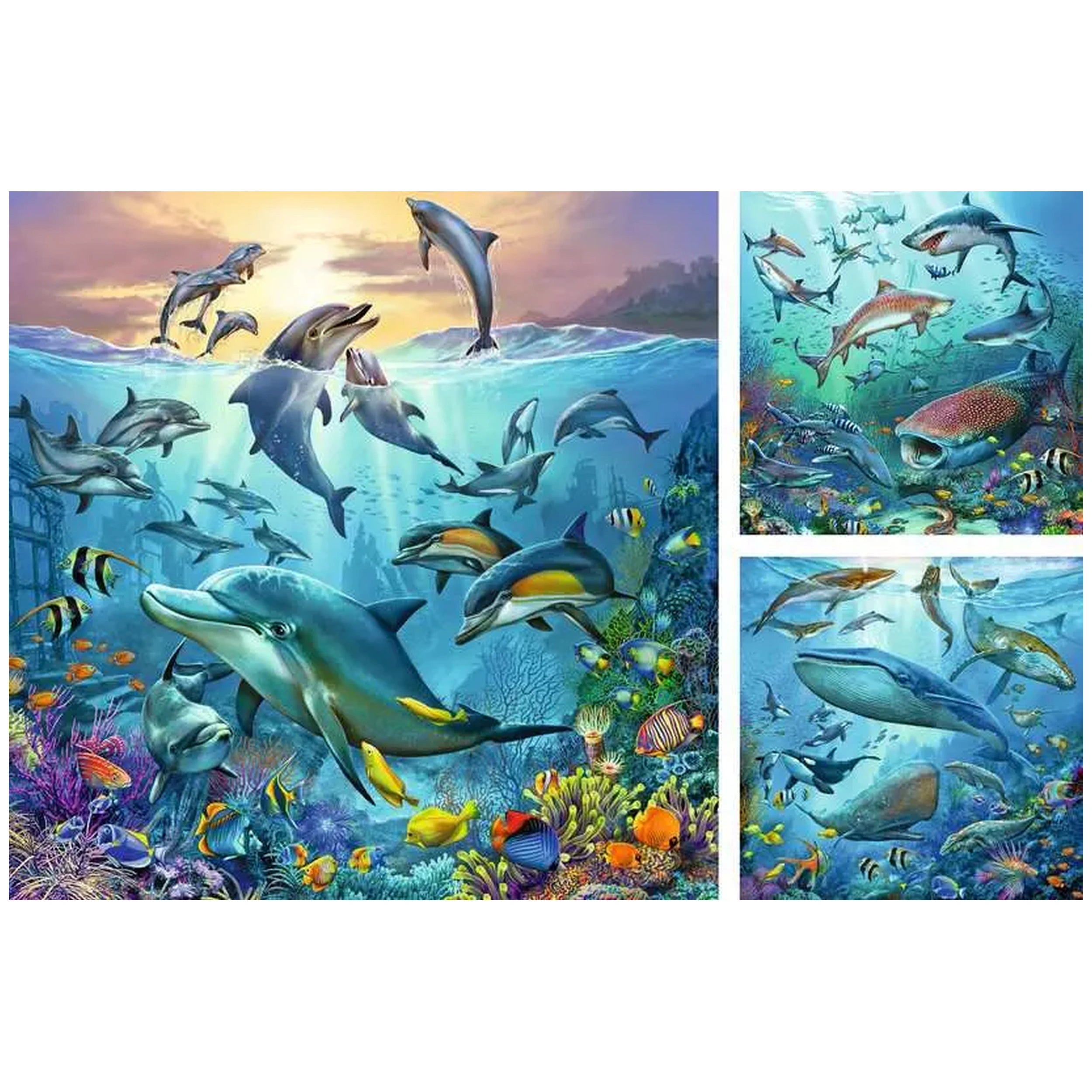 Ravensburger - Ozeanwildtiere - 3x49 Teile - Puzzles Präsentieren Sie die Ravensburger Ozeanwildtiere Puzzles, eine bezaubernde Sammlung, die speziell für Kinder ab fünf Jahren entwickelt wurde. Dieses Set umfasst drei fesselnde Puzzles, die jeweils aus...