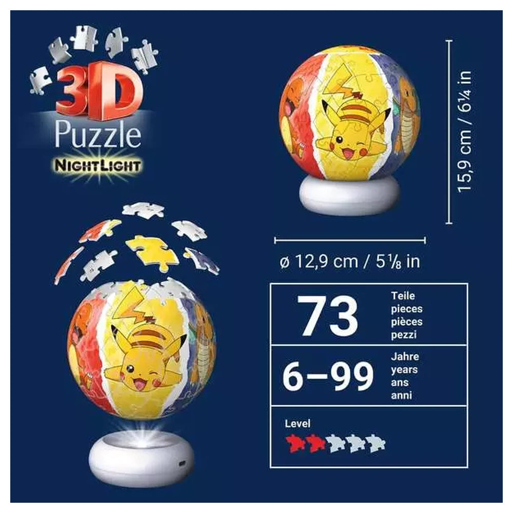 Light up your child's world with the Ravensburger Pokémon 3D Puzzle-Ball Night Light. This set is the perfect Birthday Present or Christmas Gift for fans who want to combine their love for Pikachu with a cool, functional piece of room décor. With its easy assembly, safe design, and soothing light levels, it is a fantastic way to ensure heroic dreams every night. Add this glowing Pokémon treasure to your collection today and enjoy the perfect fit and the perfect light.