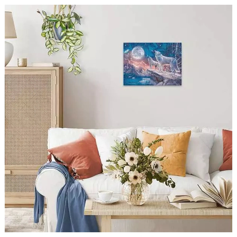Die Star Line Kollektion ist speziell darauf ausgelegt, einen Hauch von Magie in Ihr Zuhause zu bringen, und die Wolf in Northern Lights Edition verkörpert diese leuchtende Kunstfertigkeit. Das bildformatige Landschaftsbild zeigt die feinen Details des Fells des Wolfs und die ätherischen Wirbel der Polarlichter mit atemberaubender Klarheit. Mit einer Größe von 49x36 cm im fertigen Zustand ist es die perfekte Größe für eine konzentrierte Bausitzung, die Ihren Tisch nicht überfordert, aber dennoch ein zufriedenstellendes Maß an Komplexität bietet.