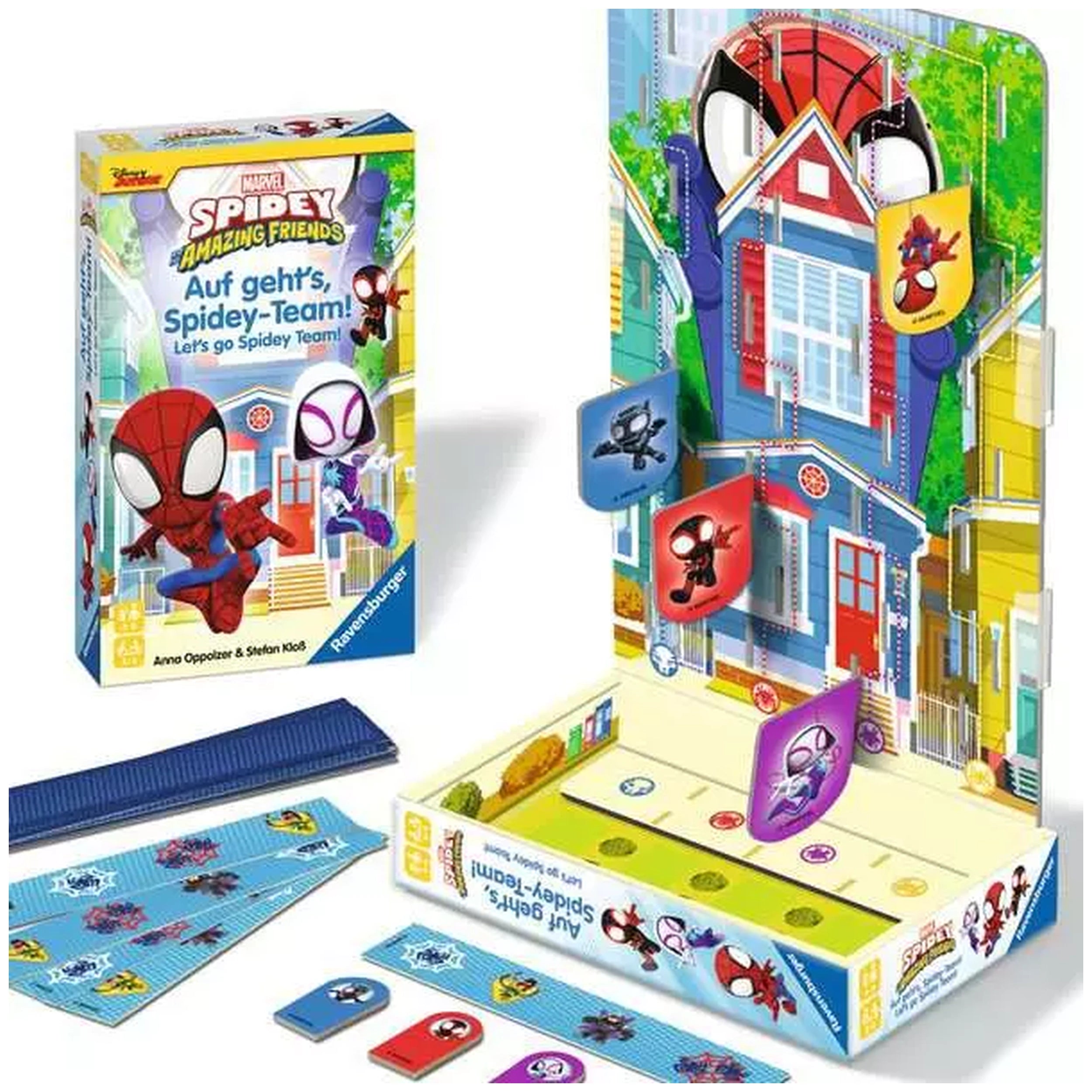Introducing the Ravensburger - Spidey And His Amazing Friends Lets Go Spidey Team Board Game, an exhilarating adventure that brings the excitement of the beloved animated series right into your living room. This engaging board game invites players to join Spidey and his heroic friends as they race to the top of the web neighborhood. With multi-language instructions, this game is perfect for families and friends who want to enjoy a fun-filled gaming experience together, regardless of their language preferences.