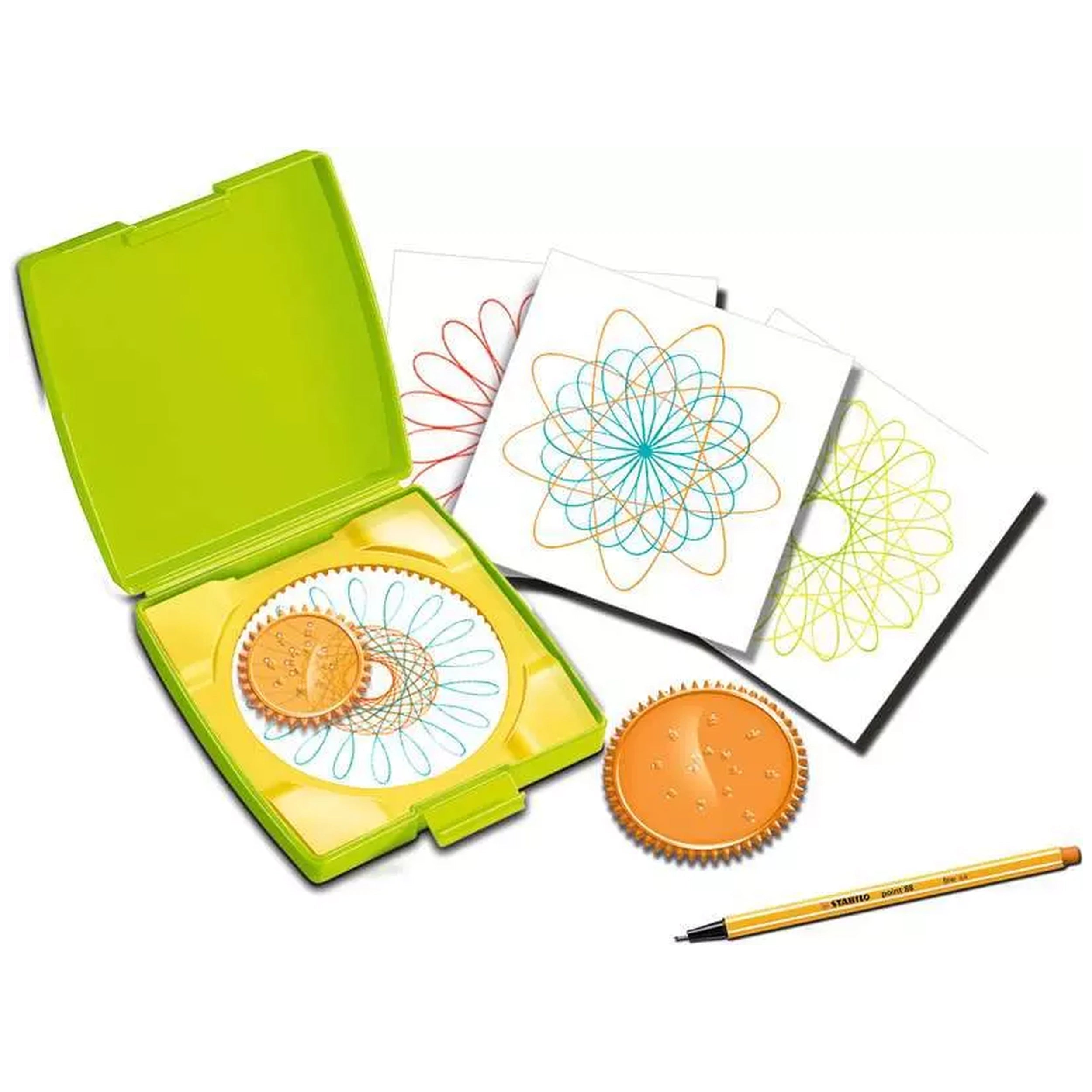 Ravensburger - Spiral Designer Mini - Grün - Basteln Präsentieren Sie den Ravensburger Spiral Designer Mini in Grün, ein innovatives Bastelwerkzeug, das darauf ausgelegt ist, die Kreativität von Kindern ab sechs Jahren zu entfachen. Dieser kompakte und tragbare Spiral Designer ermöglicht es jungen Künstlern, überall atemberaubende Spiralbilder zu erstellen. Ob zu Hause, in der Schule oder unterwegs, dieses bezaubernde Set passt problemlos in Rucksäcke oder Reisetaschen und sorgt dafür, dass die künstlerische Inspiration immer griffbereit ist. Der Ravensburger Spiral Designer Mini enthält alles, was benötigt wird, um wunderschöne Spiraldesigns zu kreieren. Das Set umfasst zwei unterschiedlich große Zahnräder, die jeweils einzigartige Lochmuster aufweisen, die eine Vielzahl von Designmöglichkeiten ermöglichen. Diese Vielseitigkeit erlaubt es den Kindern, mit verschiedenen Formen und Farben zu experimentieren und fördert ihre Vorstellungskraft und künstlerischen Fähigkeiten. Jedes Spiral Designer Mini-Set bietet eine einzigartige Kombination von Zahnrädern, sodass keine zwei Kreationen gleich sind. Die Verwendung des Mini Spiral Designers ist ein einfacher und unterhaltsamer Prozess. Legen Sie einfach ein Blatt Papier in die Box, positionieren Sie den Rahmen oben drauf und setzen Sie die Zahnräder ein. Die Kinder können dann einen Stift durch eines der Löcher führen und die Zahnräder drehen, um faszinierende Spiral Muster zu erstellen. Die Benutzerfreundlichkeit ermutigt die Kinder, ihre Kreativität zu erkunden, Farben und Zahnradkonfigurationen zu kombinieren und eine endlose Vielzahl von Designs zu produzieren. Die kompakte Kunststoffbox dient nicht nur als Aufbewahrungslösung, sondern hält auch alle Komponenten organisiert und leicht zugänglich. Dieses durchdachte Design bedeutet, dass die Kinder ihren Spiral Designer Mini überallhin mitnehmen können, was ihn zu einem idealen Begleiter für Reisen oder Spielverabredungen macht. Die fesselnde Natur dieses Produkts sorgt dafür, dass die Kinder unterhalten bleiben, während sie ihre Feinmotorik und künstlerische Ausdrucksweise entwickeln. Ravensburger ist bekannt für sein Engagement für Qualität und Bildungswert, und der Spiral Designer Mini ist da keine Ausnahme. Dieses Produkt bietet nicht nur stundenlangen Spaß, sondern fördert auch die kognitive Entwicklung durch kreatives Spielen. Während die Kinder mit dem Spiral Designer arbeiten, lernen sie über Muster, Farben und räumliches Bewusstsein, während sie gleichzeitig Spaß daran haben, ihre eigenen einzigartigen Kunstwerke zu schaffen. Verpassen Sie nicht die Gelegenheit, den jungen Künstler in Ihrem Leben zu inspirieren. Der Ravensburger Spiral Designer Mini in Grün ist das perfekte Geschenk für Geburtstage, Feiertage oder einfach so. Fördern Sie Kreativität und künstlerische Entdeckung, indem Sie dieses fantastische Bastelwerkzeug heute in Ihren Warenkorb legen!