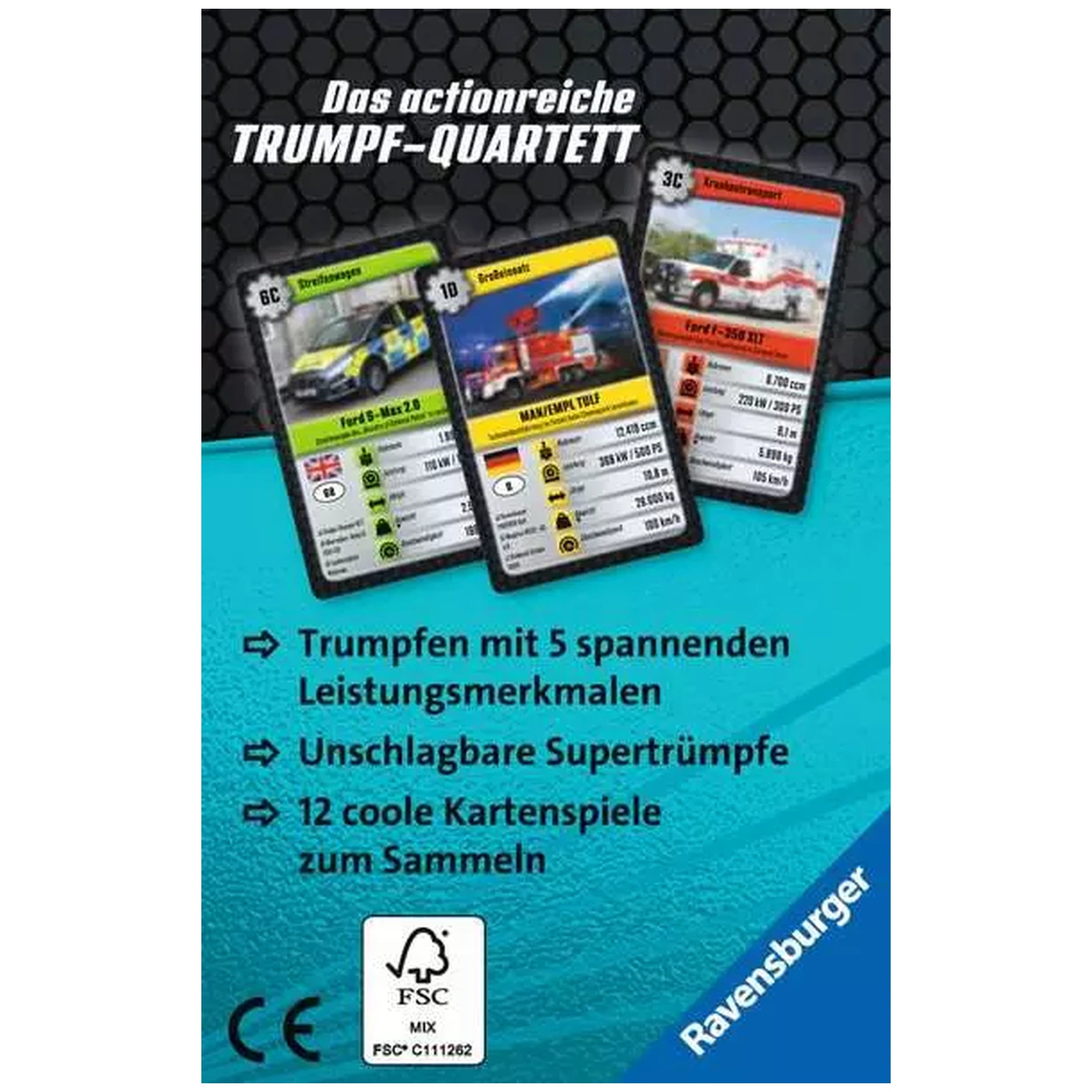 Introducing the Ravensburger - Super Trump Blue Light Board Game, a captivating card game designed for enthusiasts aged seven and above. This German edition of Supertrumpf is the perfect gift for those who have a passion for cars and technology. With 32 stunning illustrations and a wealth of information about various vehicle models, players will be enthralled as they discover which car boasts the largest engine displacement and which one can reach the highest speeds. The game encourages friendly competition as players strive to outdo each other by showcasing the best features across five performance categories.