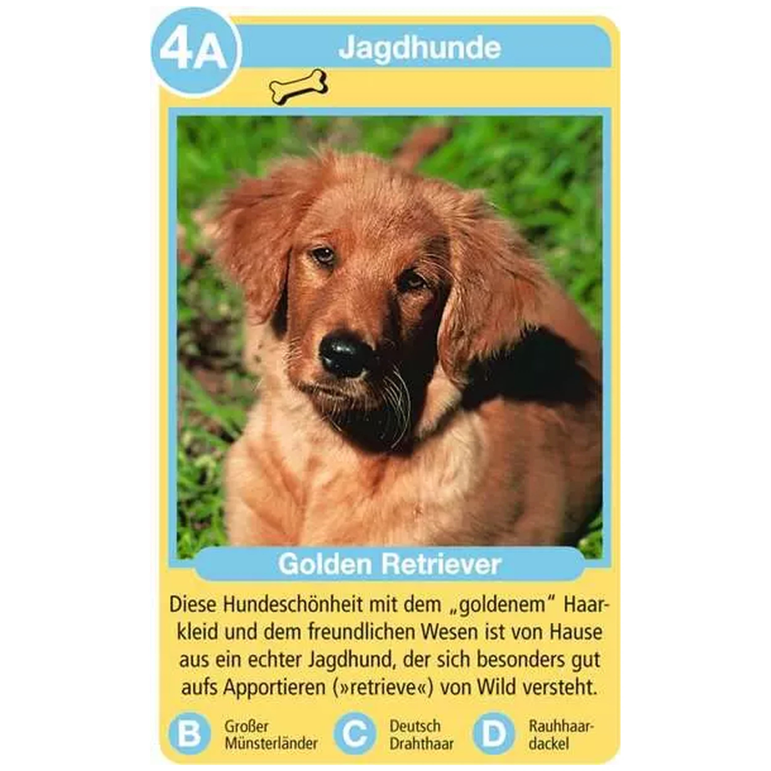 The gameplay is straightforward yet captivating. Players form quartets by collecting four cards from the same category, such as 1A, 1B, 1C, and 1D. This structure encourages strategic thinking and memory skills as players must remember which breeds are available and which questions have been answered. The cards are beautifully illustrated, showcasing the unique characteristics of each breed, making it visually appealing for players of all ages.