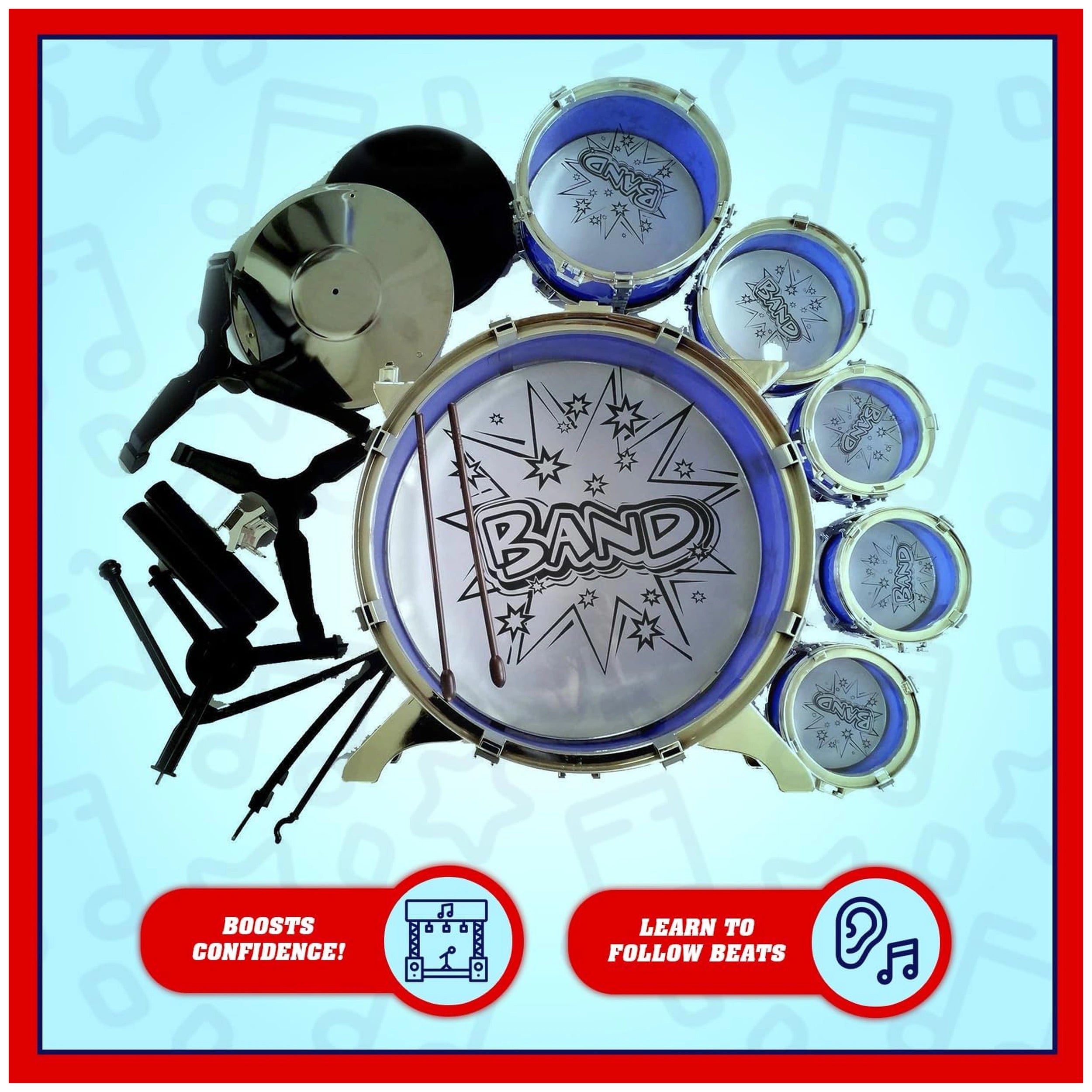 The visually appealing design, complete with beautiful chrome rims, adds a touch of authenticity to the experience. Your little ones will feel like true rockstars as they take center stage during playdates or birthday parties. The Junior Rock Band Ritmo & Rock Drums is not just a toy; it's an opportunity for social interaction and teamwork, as children take turns playing and sharing their musical talents.
