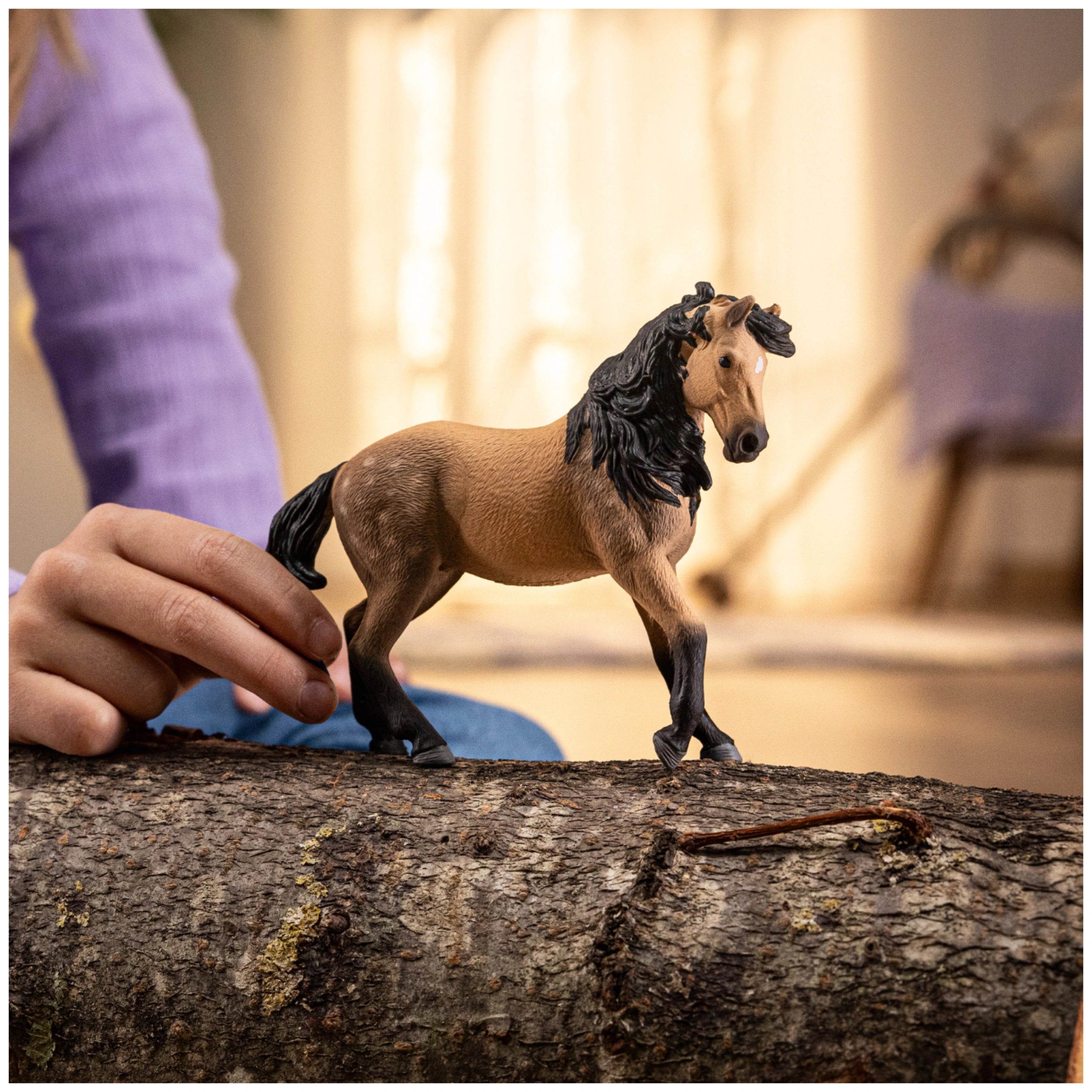 Introducing the Schleich - Horse Club - Andalusian Mare - Action & Toy Figures - 14894, a stunning addition to any child's toy collection that embodies elegance and playfulness. This beautifully crafted figure showcases the Andalusian mare, known for her striking fawn coat that contrasts beautifully with her dark brown flanks adorned with light spots. The intricate details, from her thick black mane to her lush tail, make this mare a true eye-catcher. The bright white, star-shaped blaze on her forehead adds a charming touch, ensuring that she stands out in any setting.