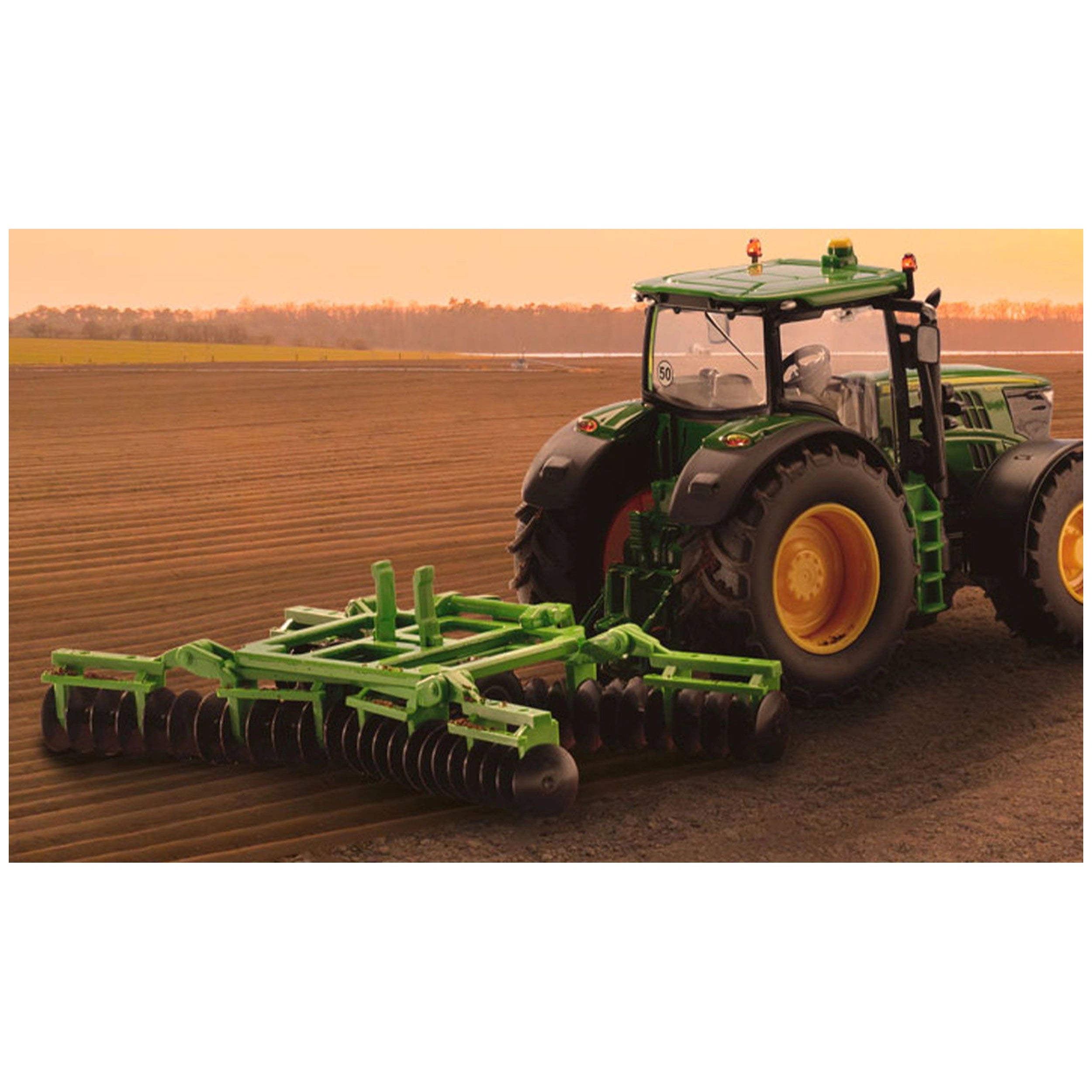 Constructed from robust metal, the vehicle frame of the disc harrow is built to endure rigorous play. The fold-out arms are equipped with movable plastic discs that mimic the real-life functionality of a disc harrow, effortlessly working through the ground. This realistic design not only enhances play but also provides an educational insight into how farming equipment operates. The attention to detail in the design ensures that children can engage in imaginative scenarios while learning about the agricultural process.