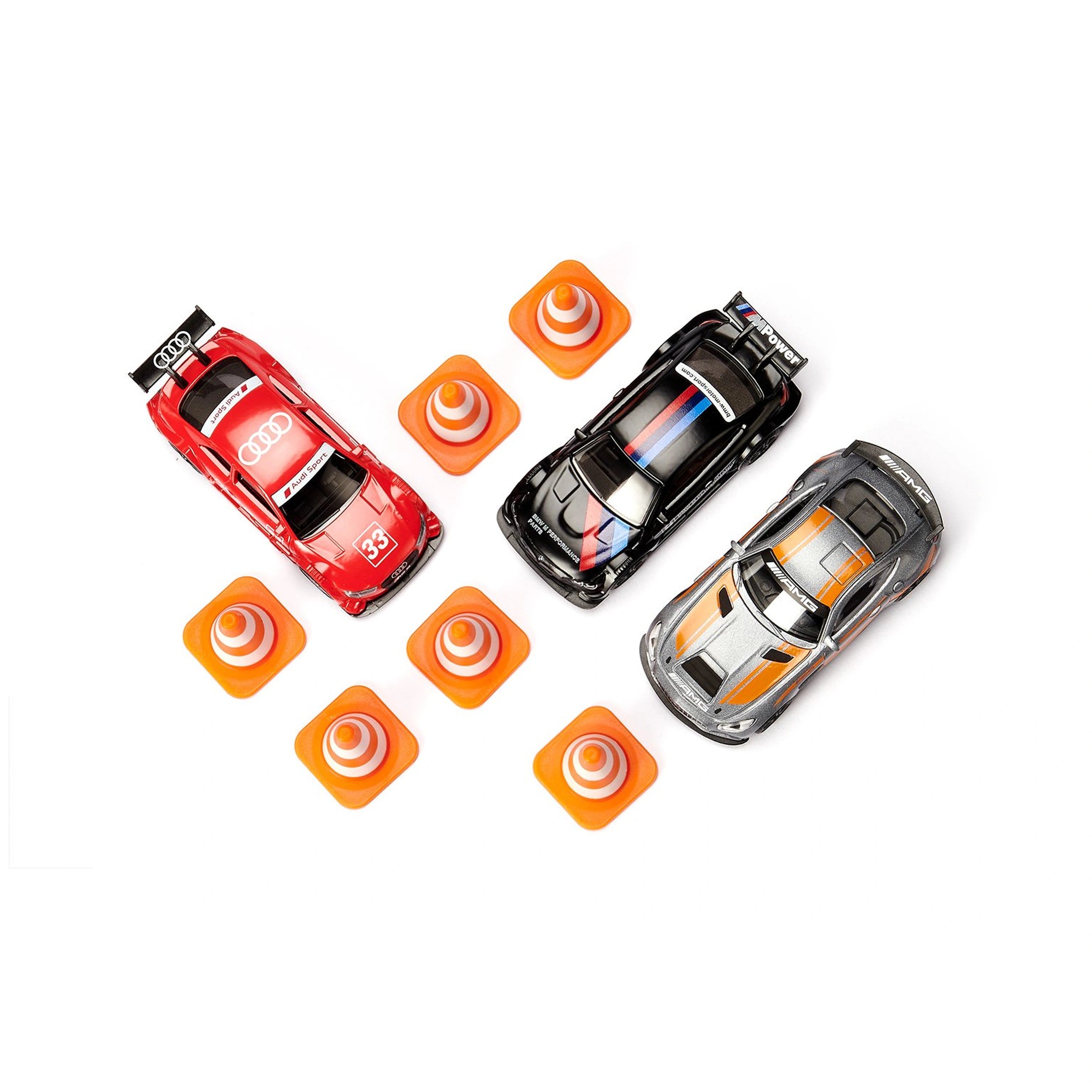 To enhance the racing experience, the set includes six orange and white cones, allowing young racers to create their own race track. These cones not only add an element of realism but also encourage creativity and strategic thinking as children design their racing circuits. Whether it's a solo race or a competitive showdown with friends, the Siku Gift Set Race provides endless opportunities for fun and excitement.