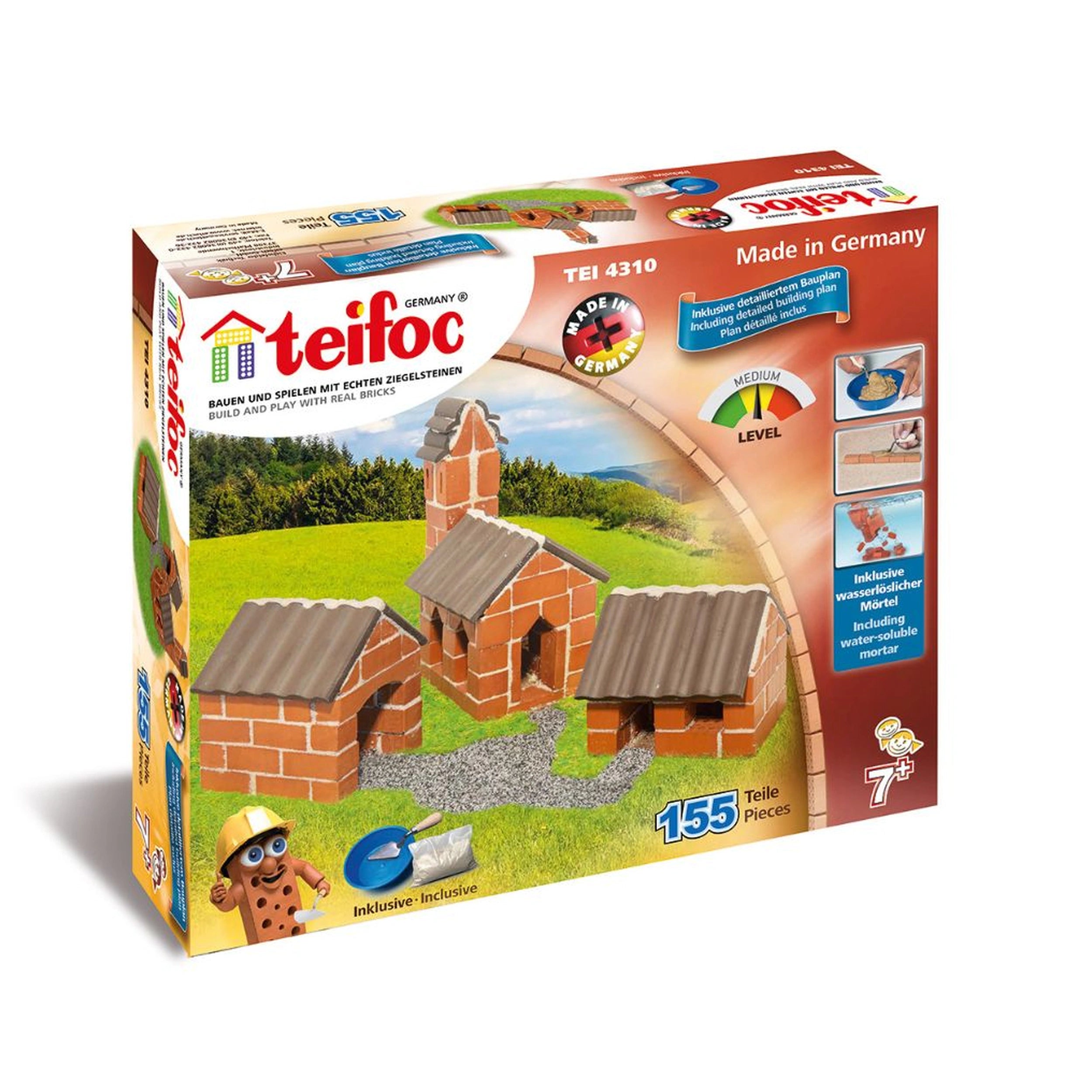 Included in the Teifoc Village set are essential tools for young builders: a cement bowl, a trowel, and detailed instructions to guide them through the construction process. These tools are designed with safety in mind, ensuring that children can enjoy their building experience without any concerns. The use of 100% natural materials further enhances the safety of the product, making it an excellent choice for parents who prioritize eco-friendly options for their children.