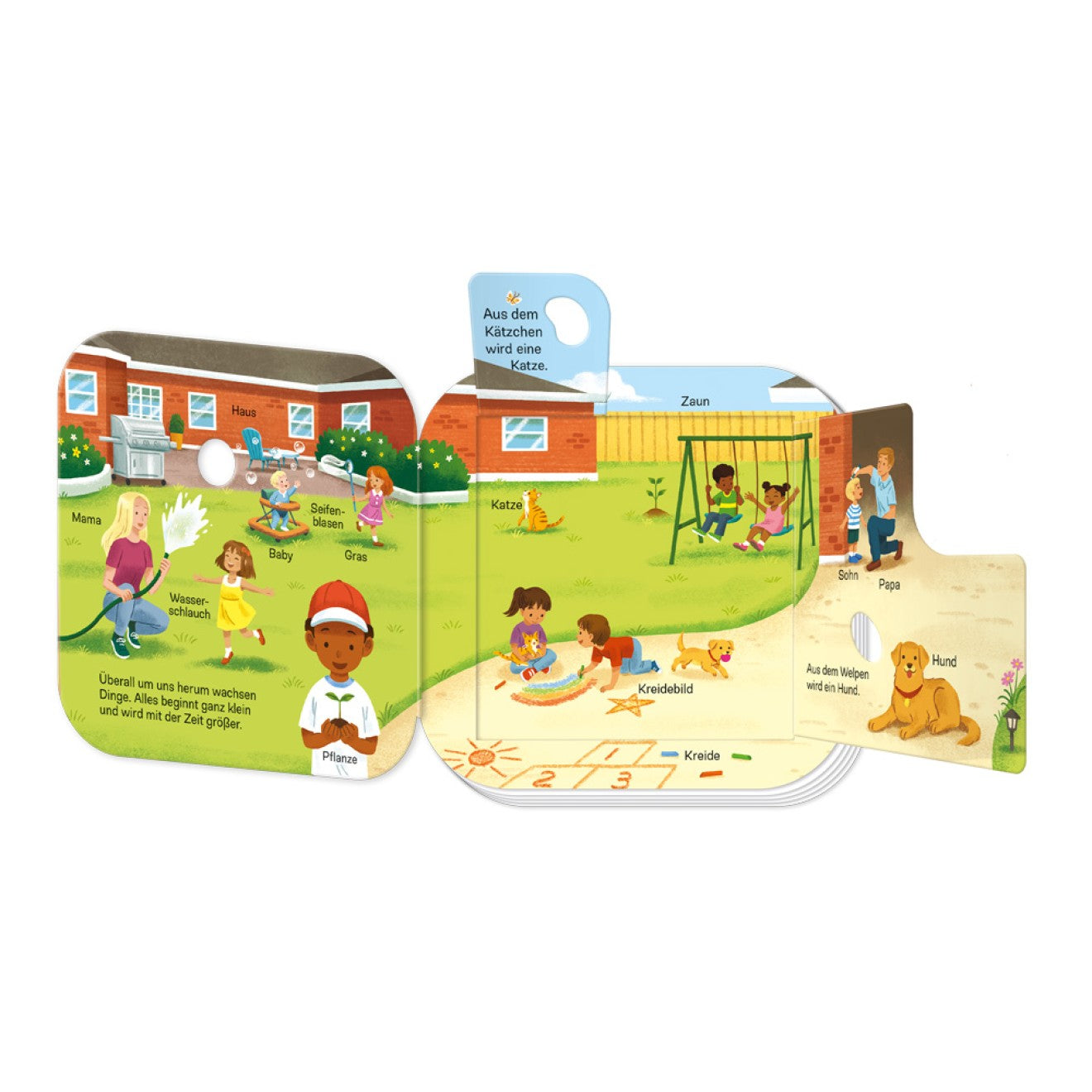 Fördern Sie die natürliche Neugier eines Kindes mit Aus klein wird groß, einem detaillierten und interaktiven deutschsprachigen Bilderbuch vom Trötsch Verlag. Dieses ansprechende "Klappenbuch" lädt selbst die jüngsten Leser ein, zu entdecken, wie Lebewesen in ihrer Umgebung leben und wachsen. Teil einer speziellen Entdeckungsreihe, bietet dieses 12-seitige Bilderbuch eine robuste Konstruktion und ein kompaktes Format von 18 x 18 cm, das es kleinen Händen leicht macht, es zu halten. Das Buch konzentriert sich auf das Thema Wachstum und zeigt Kindern, wie sie im Garten arbeiten und Pflanzen pflegen, während sie verschiedene Tiere in ihrem natürlichen Lebensraum beobachten. Das herausragende Merkmal sind die zwölf bunten Klappen, die versteckte Tiere und spannende Informationen enthüllen und die Erkundungsfreude eines Kindes während gemeinsamer Lesezeiten anregen.