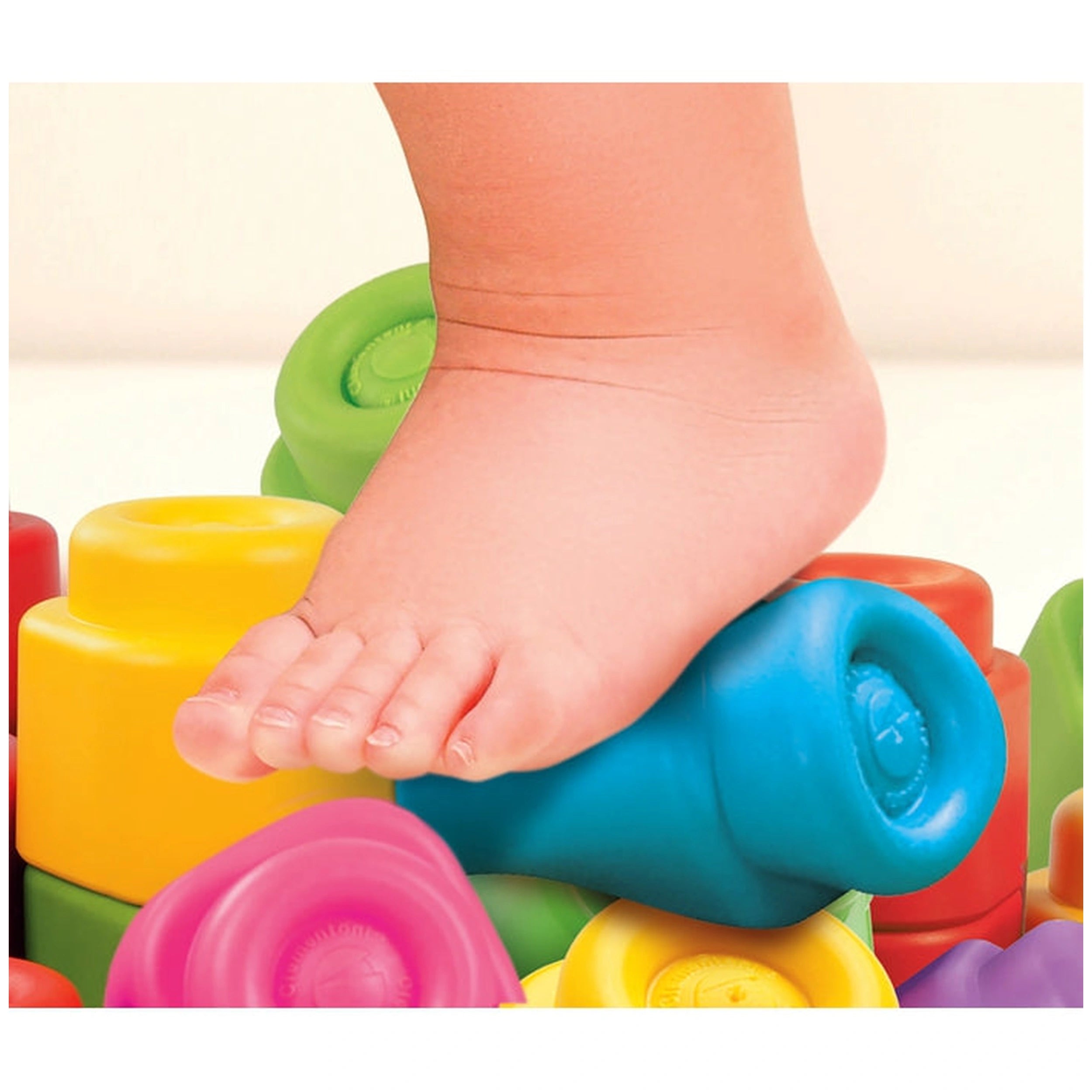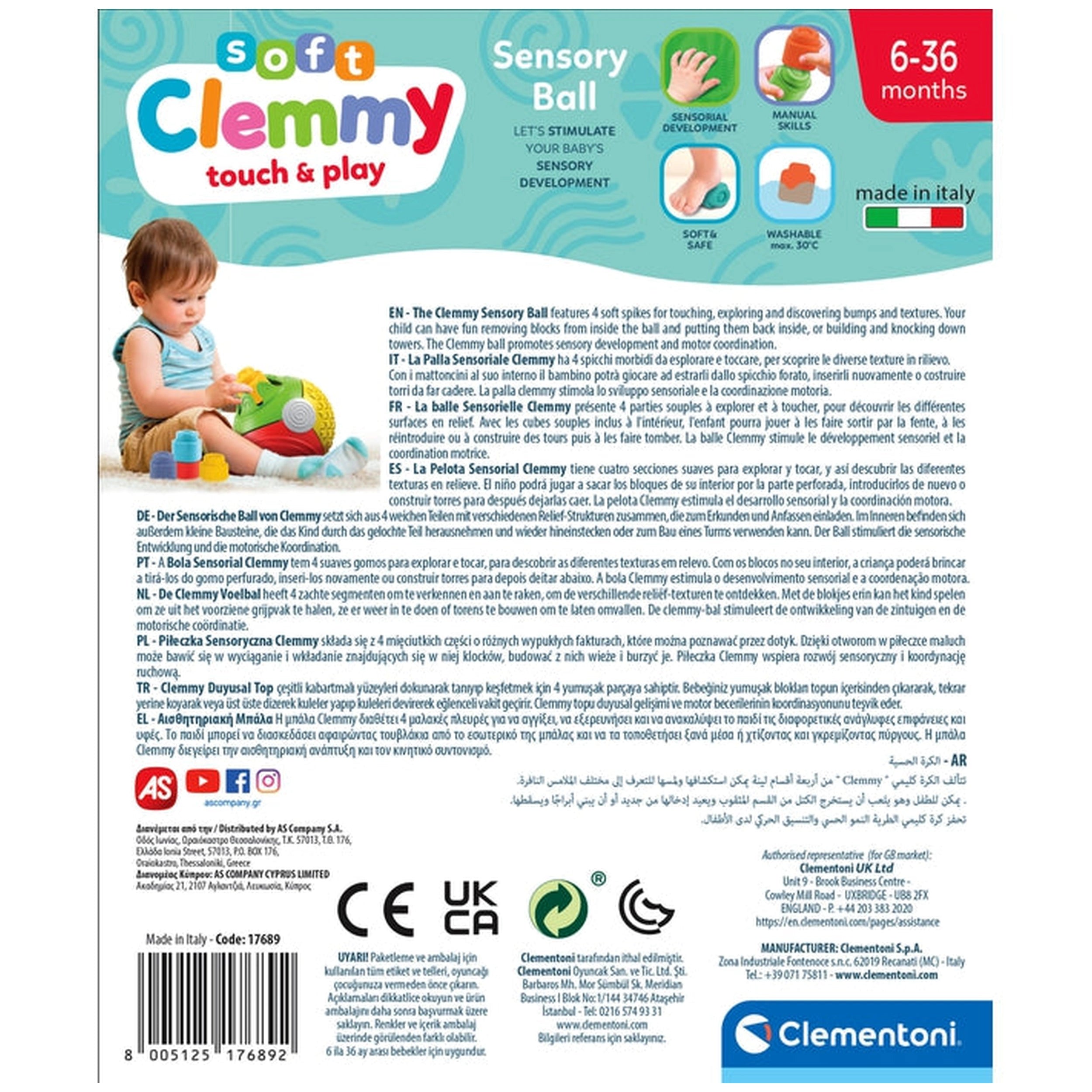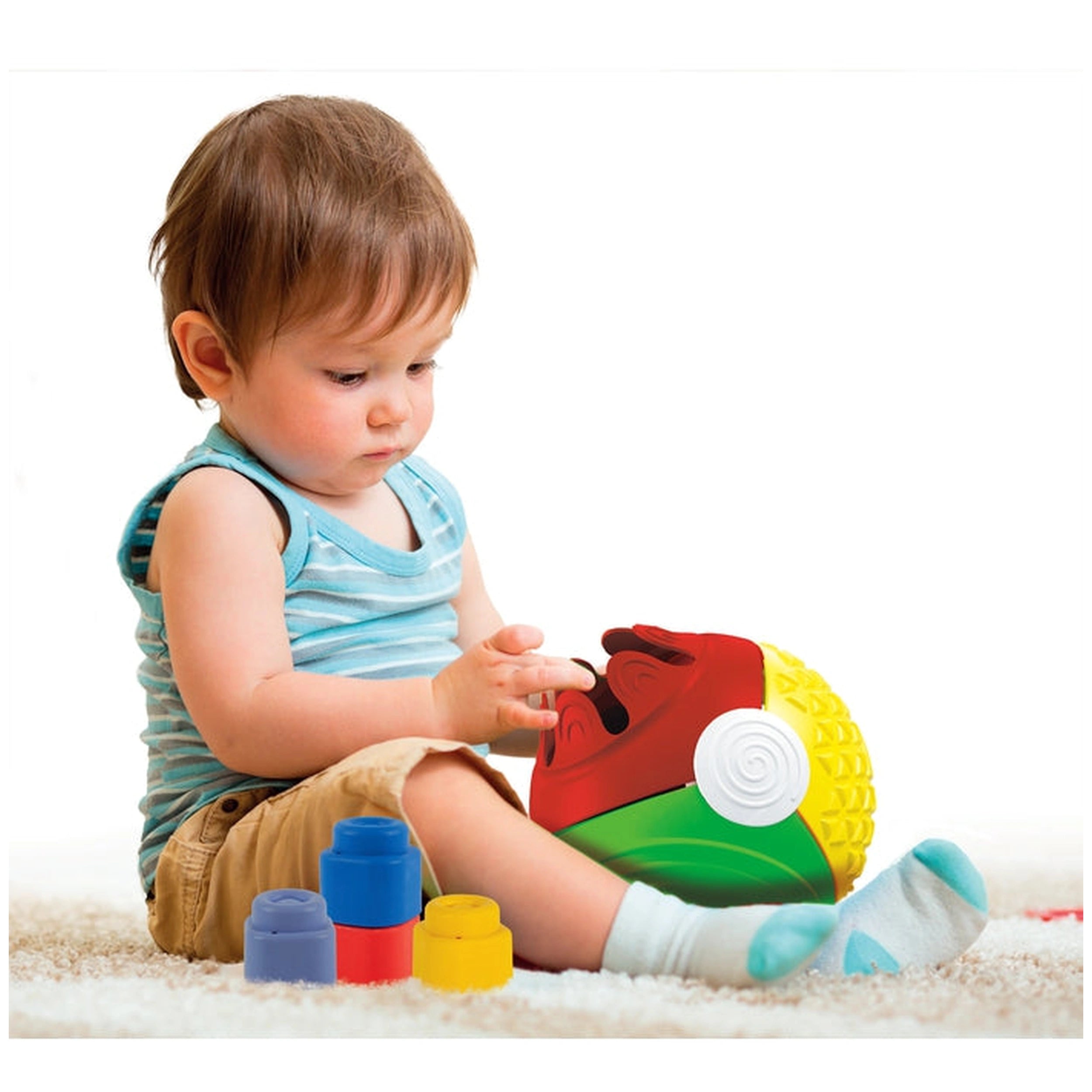 In addition to its sensory features, the Baby Clementoni Sensory Ball includes Clemmy building blocks that can be inserted and extracted through the ball's perforated section. This interactive element enhances fine motor skills and hand-eye coordination, as babies learn to grasp, pull, and manipulate the blocks. The combination of rolling, stacking, and exploring provides a comprehensive play experience that nurtures essential developmental milestones.