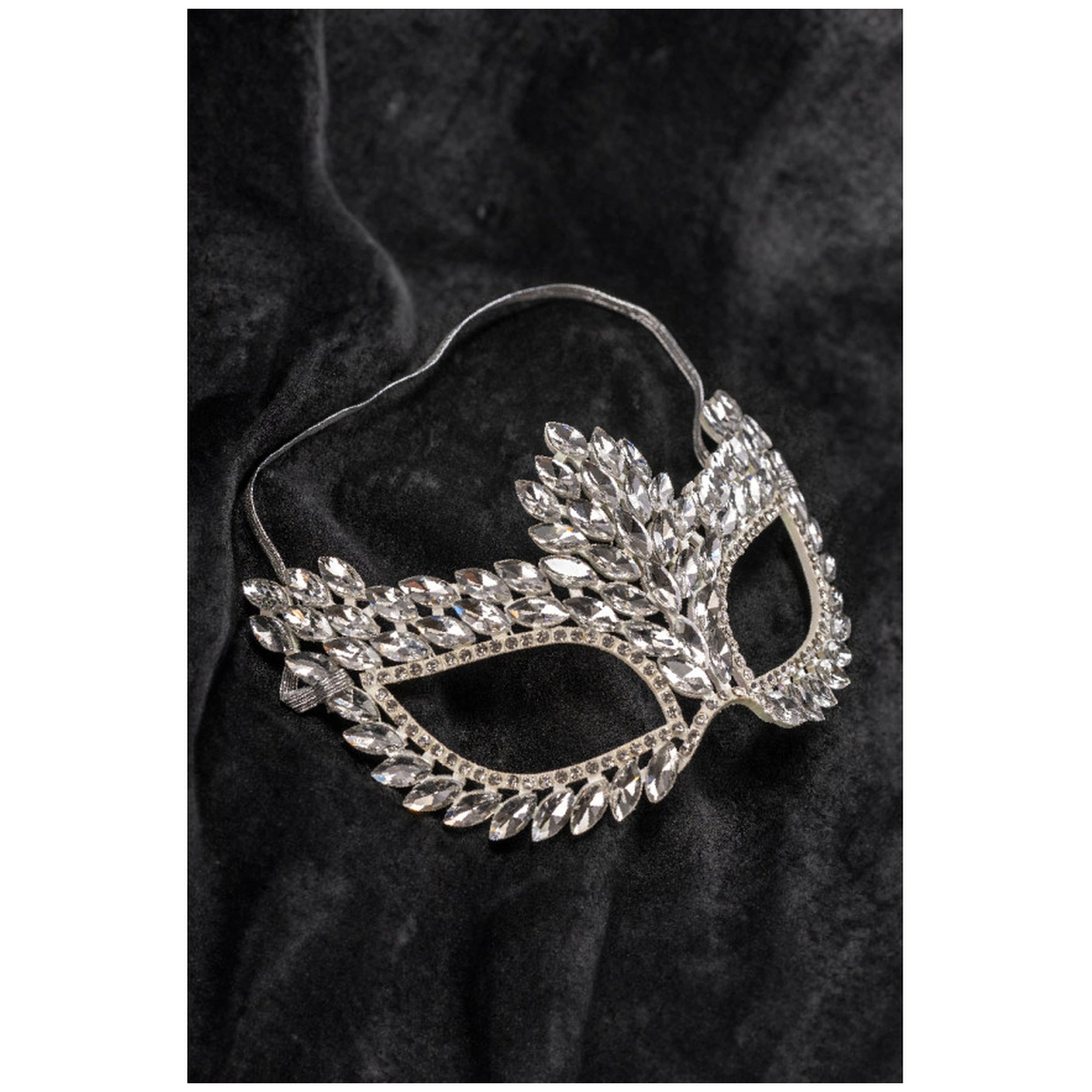 Introducing the Carnival Toys Silver Mask adorned with Gems and Rhinestones, an exquisite accessory designed to elevate your masquerade experience. This half-face mask is not just a costume piece; it is a statement of elegance and sophistication, perfect for Carnival celebrations and masquerade balls. Crafted from high-quality white plastic and embellished with sparkling gems and rhinestones, this mask captures the essence of Venetian style, ensuring you stand out in any festive gathering.
