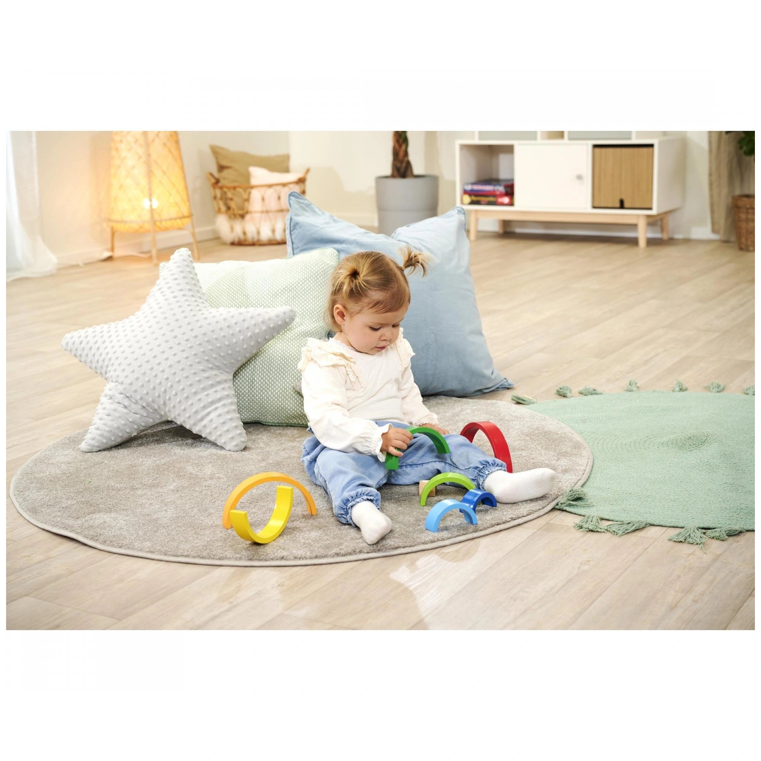 In addition to its educational benefits, the Eichhorn Wooden Stackable Rainbow serves as a beautiful decorative piece when not in use. Its vibrant colors and charming design make it a delightful addition to any nursery or playroom, sparking joy and imagination in both children and adults alike. This multifunctional toy encourages imaginative play, allowing children to create their own worlds and stories as they stack and arrange the pieces.