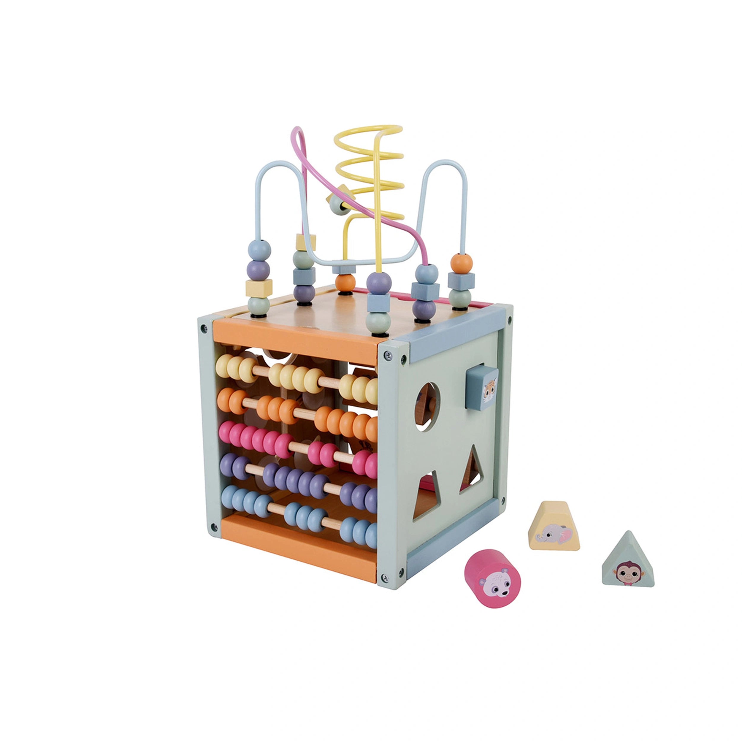 The Johntoy Wooden Wildies Family Activity Cube features a variety of stimulating activities that cater to a child's natural curiosity. With a maze, a puzzle, an abacus, and cut-out spaces for shape insertion, this toy offers endless opportunities for exploration and learning. Each side of the cube presents a different challenge, encouraging children to engage in problem-solving and critical thinking as they navigate through the various activities. This versatility not only keeps children entertained but also fosters a love for learning from an early age.