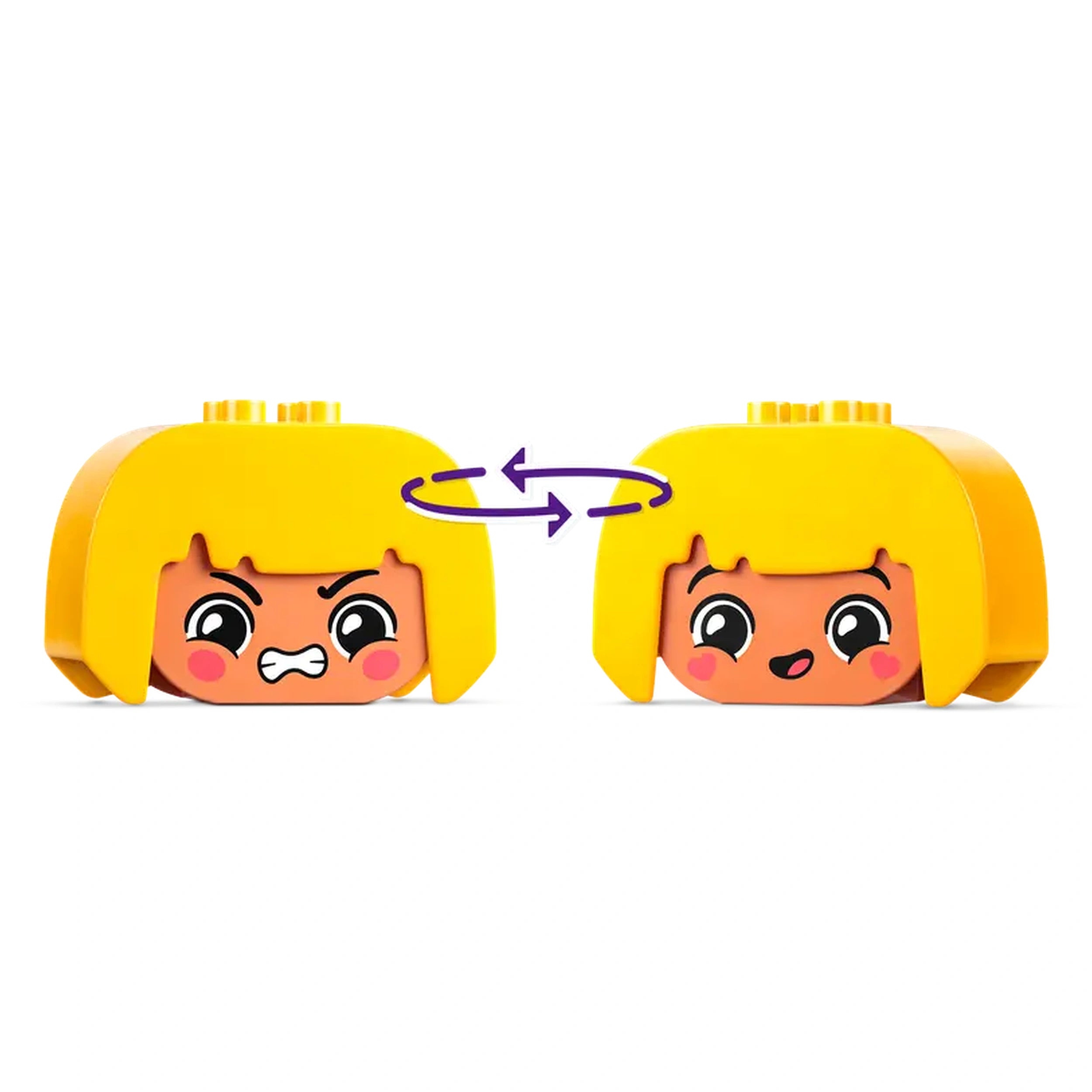 The LEGO® DUPLO® My First Big Feelings & Emotions set features four diverse characters, each equipped with two interchangeable facial expressions. This unique design allows children to explore and express a range of emotions, helping them to identify and understand their feelings as well as those of others. By changing the characters' faces, toddlers can engage in imaginative role-play scenarios that reflect real-life situations, promoting empathy and emotional intelligence from an early age.