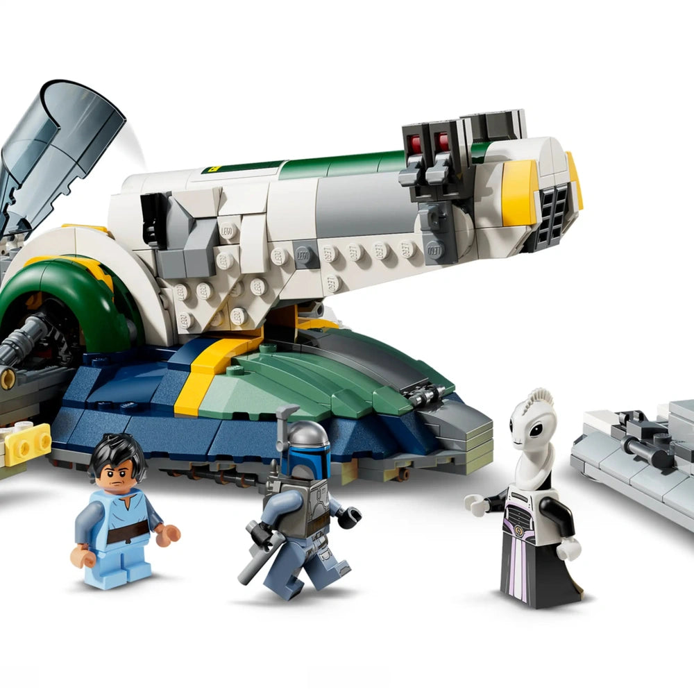 Included in this exciting package are three exclusive LEGO minifigures: Jango Fett, complete with two blaster pistols and a jetpack, Young Boba Fett, and Lama Su. These characters are essential for bringing the story to life and provide endless opportunities for creative storytelling. Additionally, the set features a service cart that can be utilized for moving the starship during play or displayed as part of a fantasy decor when not in use, making it a versatile addition to any LEGO collection.
