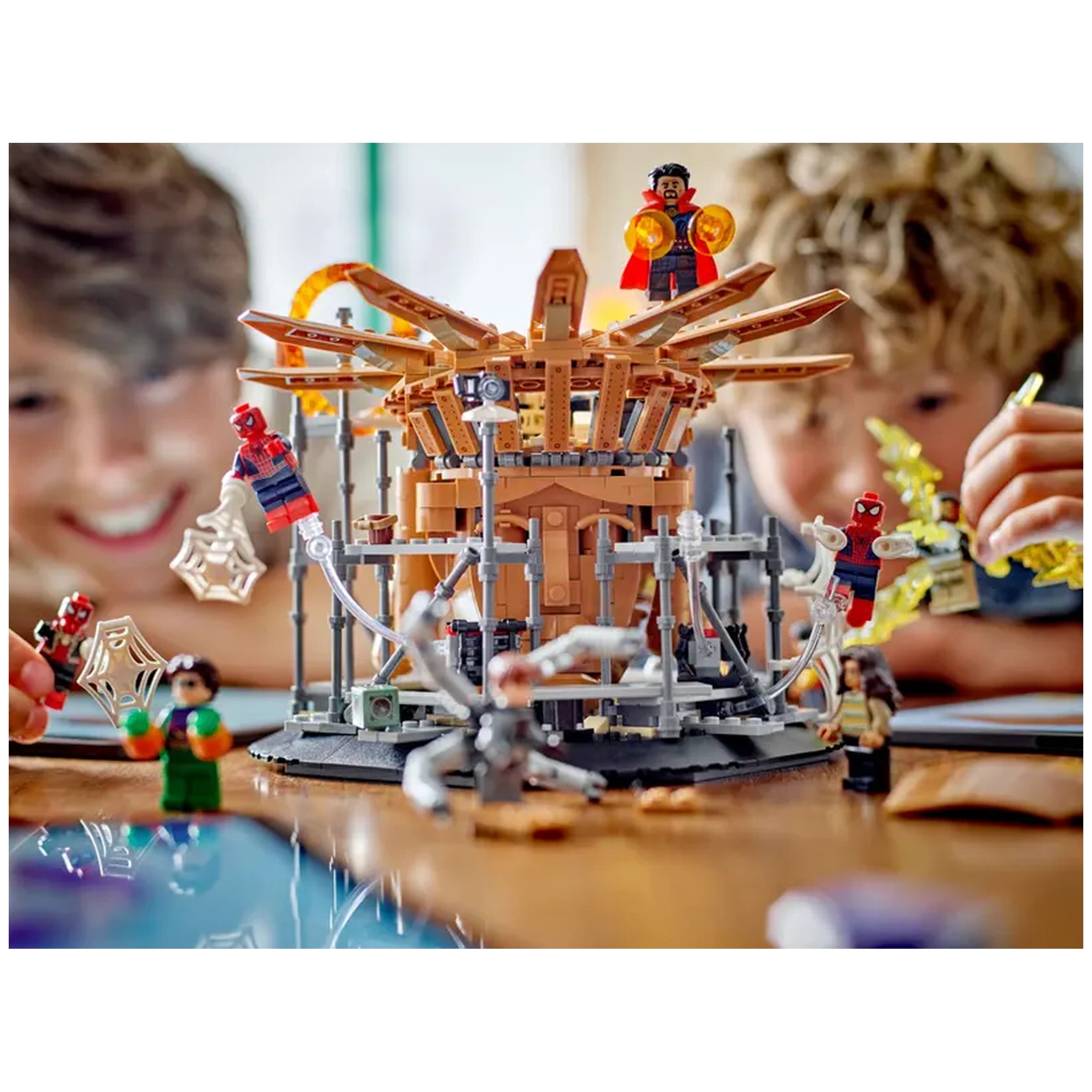 At the heart of this set are the beloved characters that have captured the hearts of audiences worldwide. The LEGO® Spider-Man Final Battle features three distinct versions of Spider-Man: the Friendly Neighborhood Spider-Man portrayed by Tobey Maguire, The Amazing Spider-Man played by Andrew Garfield, and the contemporary Spider-Man represented by Tom Holland. Alongside these iconic heroes, the set includes formidable foes such as Electro, Doctor Strange, Green Goblin, Ned, MJ, and Doc Ock, ensuring that every fan can recreate their favorite scenes from the film.