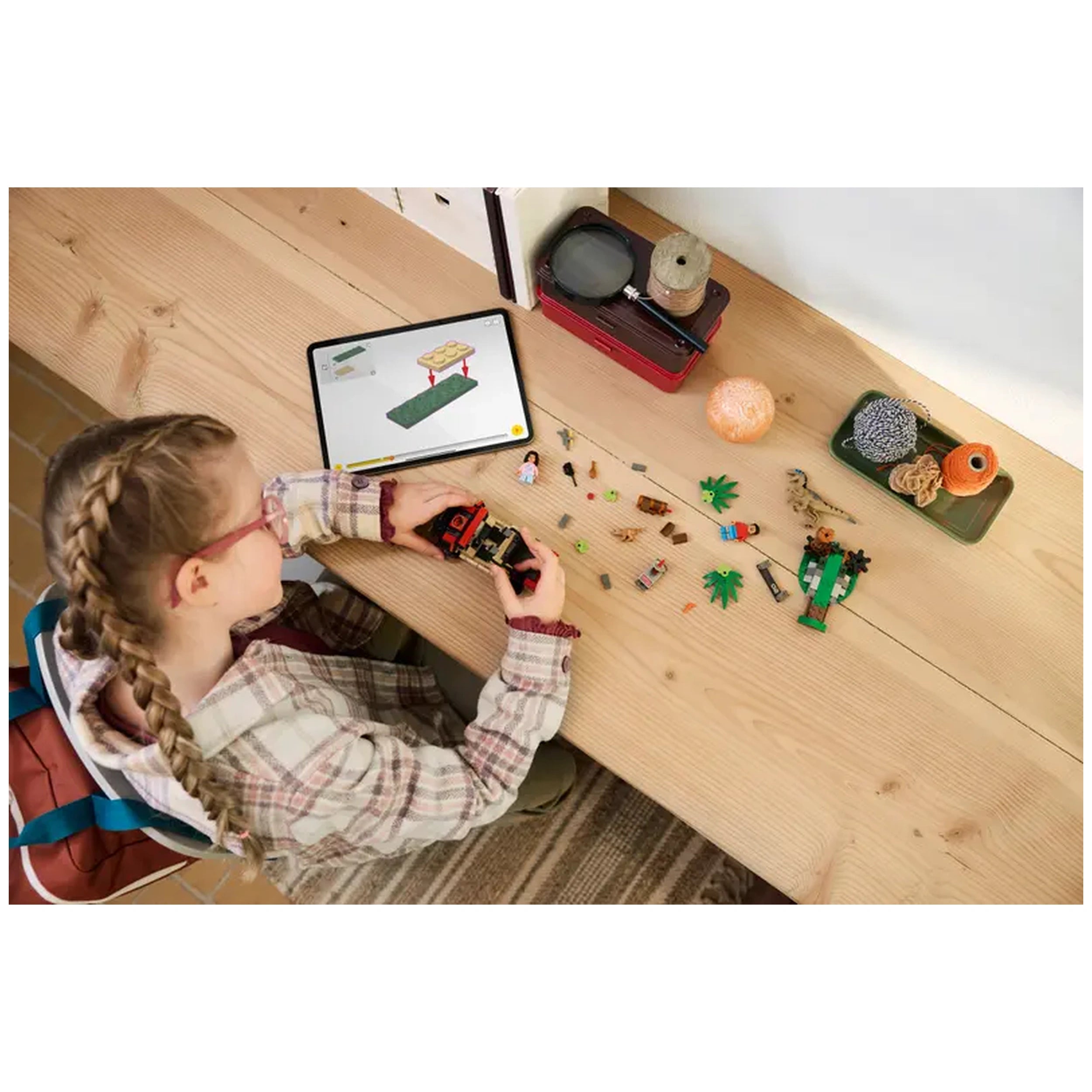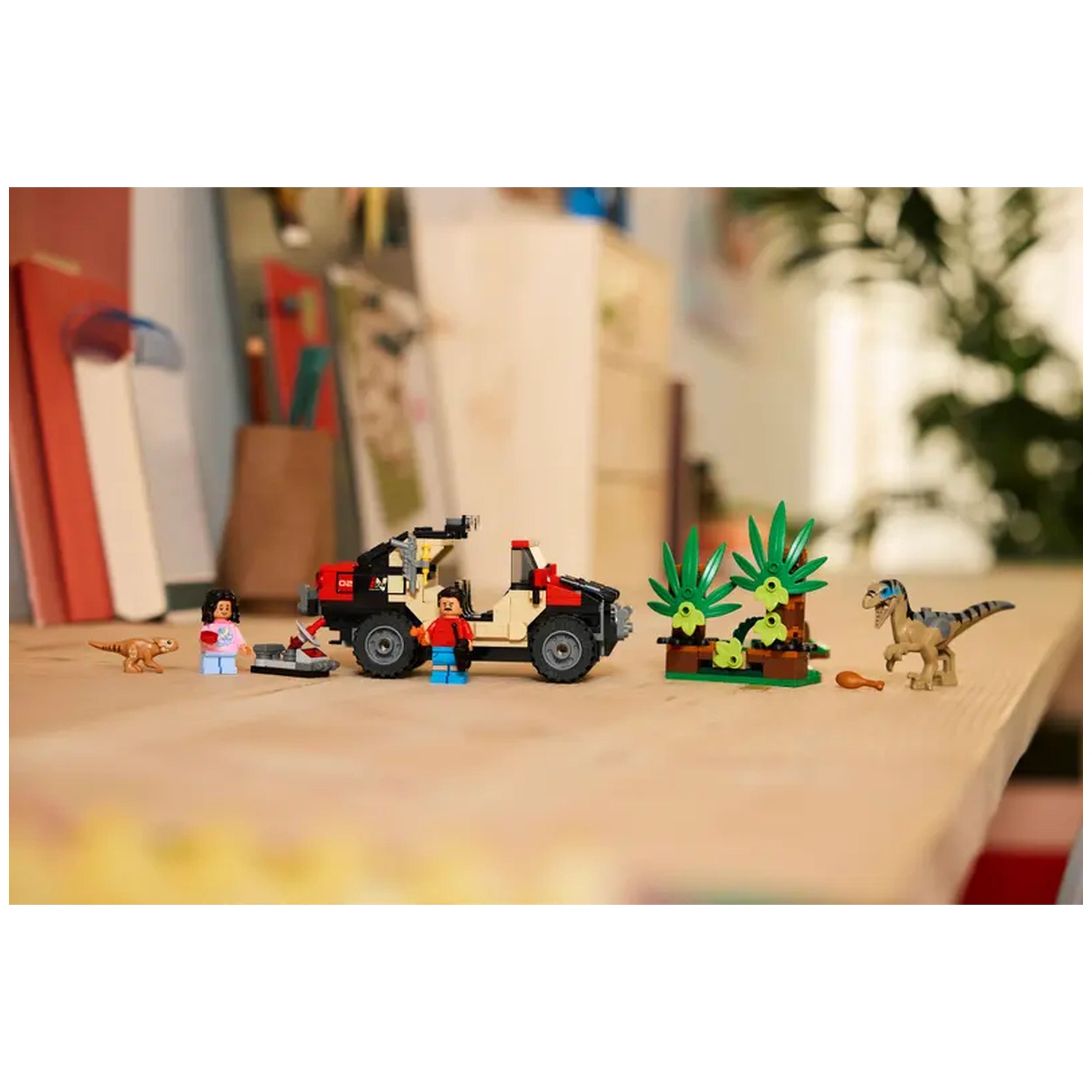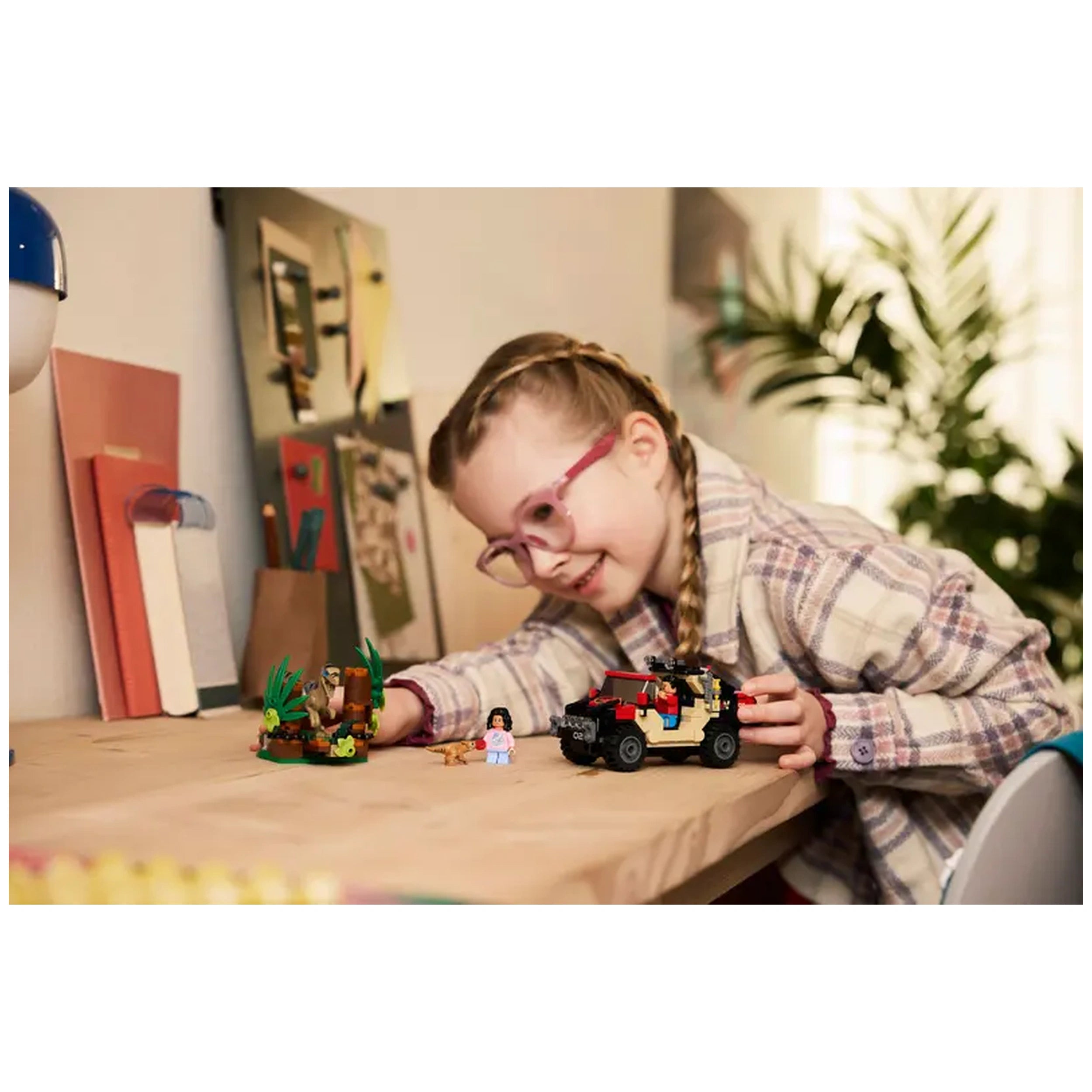 The Raptor Off-Road Escape set features a detailed off-road vehicle, perfect for navigating the rugged terrains of the Jurassic world. Accompanying the vehicle are two minifigures, Reuben and Isabella Delgado, who are ready to embark on their dinosaur-hunting expedition. Additionally, the set includes a Baby Dolores pet dinosaur figure and a Velociraptor figure with a movable jaw, allowing kids to recreate their favorite movie scenes or invent new narratives filled with excitement and suspense.