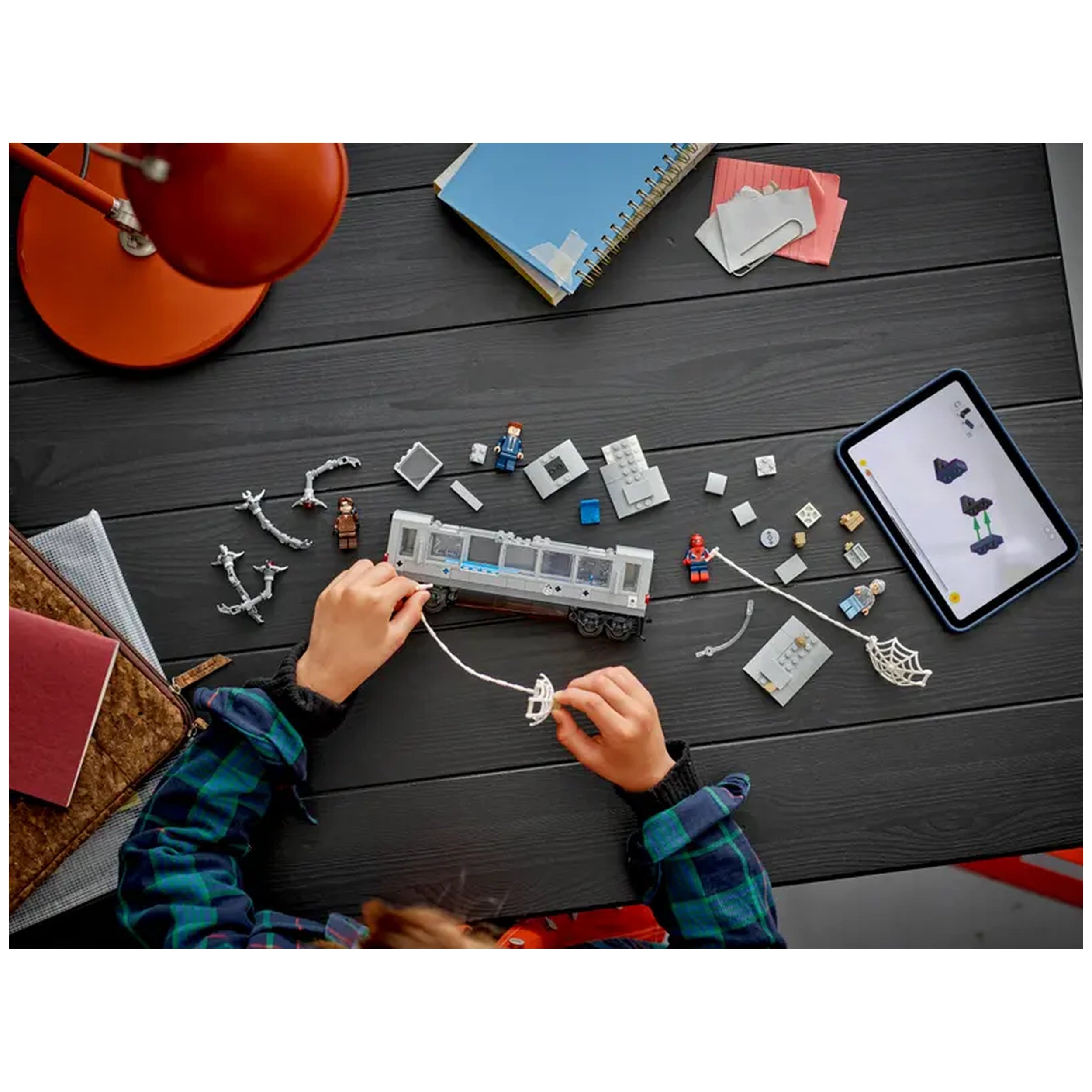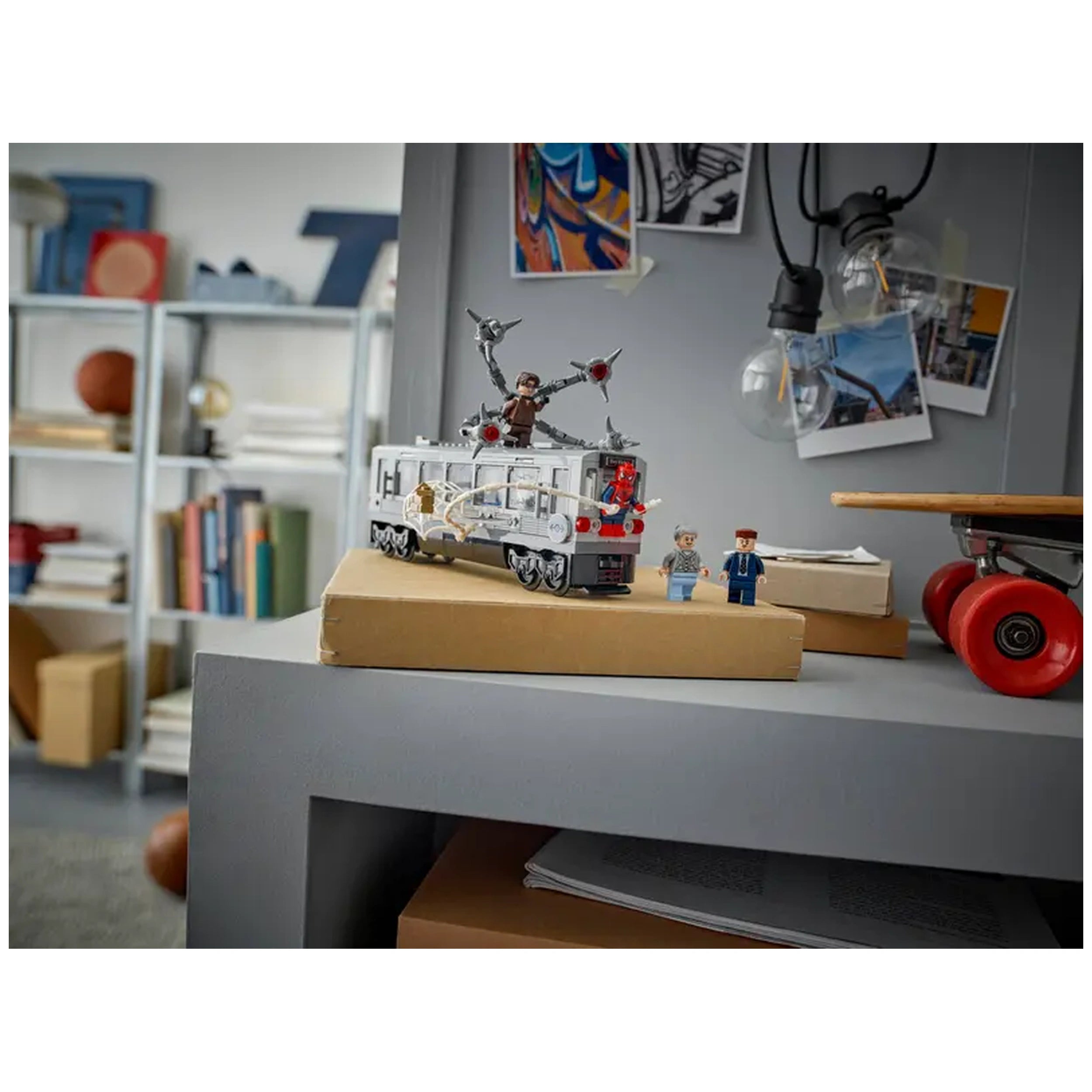 This captivating set is inspired by a memorable scene from Marvel Studios’ Spider-Man 2, where the heroic Spider-Man faces off against the formidable Doc Ock. The set includes four highly detailed minifigures: Spider-Man, Doc Ock, J. Jonah Jameson, and Aunt May, allowing kids to recreate their favorite moments from the film. The Spider-Man minifigure features interchangeable heads—one masked and one unmasked—while Doc Ock comes equipped with four articulated tentacles, two of which are designed with 'laser beam' elements for added excitement.